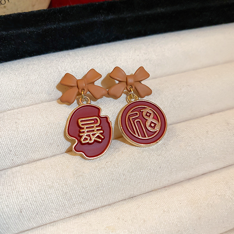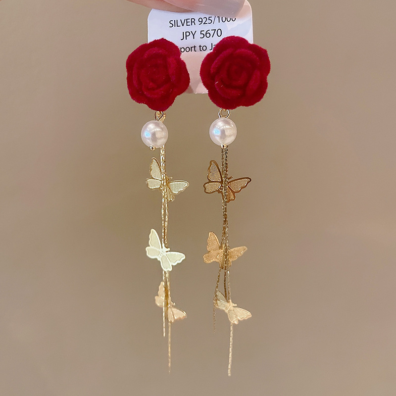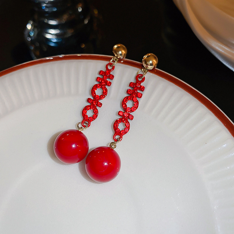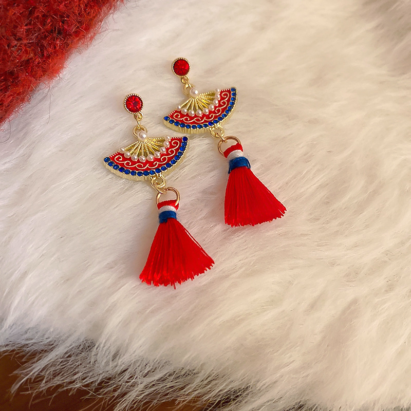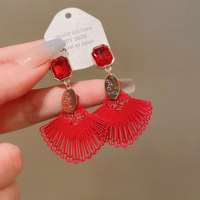 新年红银针流苏耳环过年喜庆高级感耳钉新款复古小众百搭耳饰批发