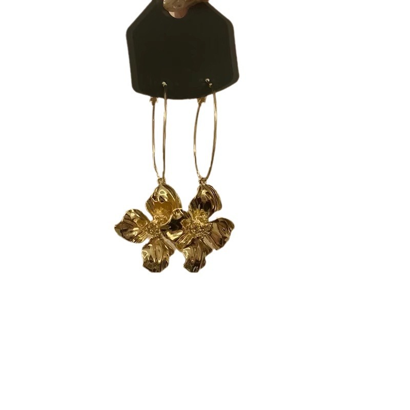银针大圆环金属花朵耳环轻奢小众高级感耳钉夸张宴会气质耳饰批发