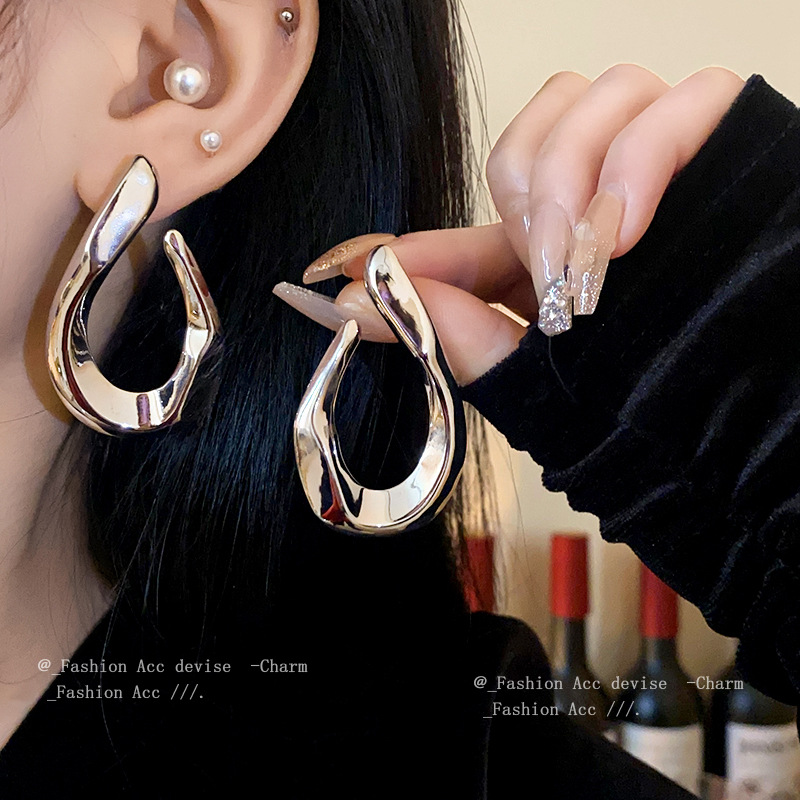 银针欧美扭曲金属耳环小众夸张冷淡风耳坠时尚高级感气质耳饰批发