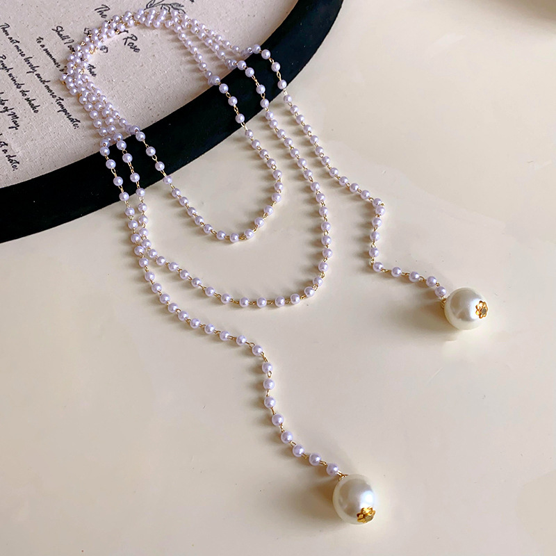 法式圆形人造珍珠长款项链秋冬高级感叠戴毛衣链个性时尚百搭项饰