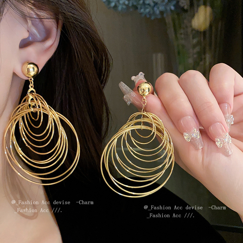 欧美钢针圆圈耳坠个性创意新款耳环ins时尚气质金属风耳饰批发女