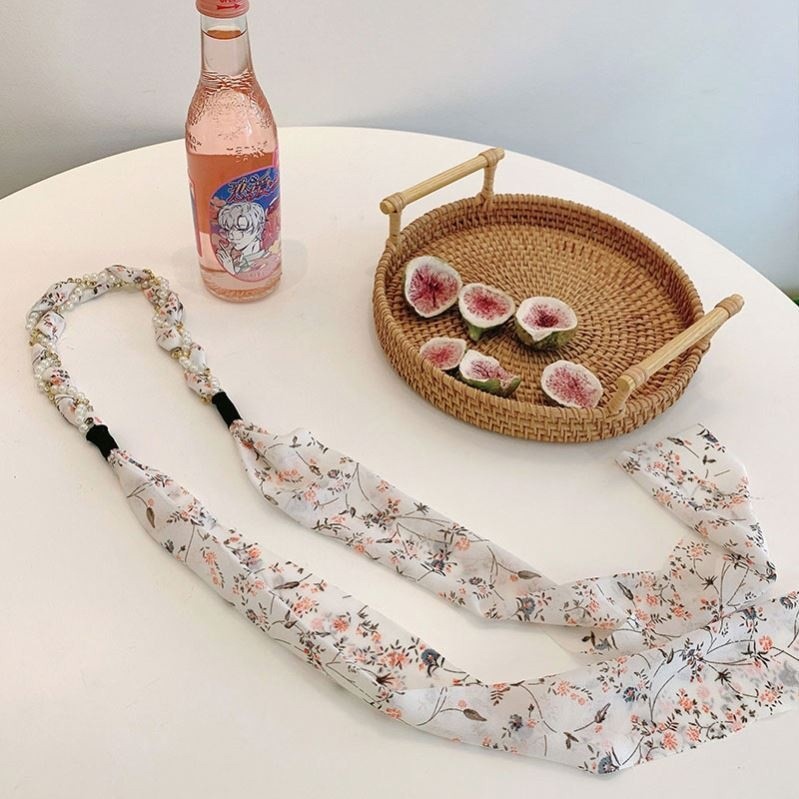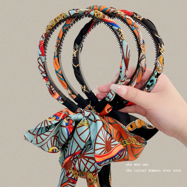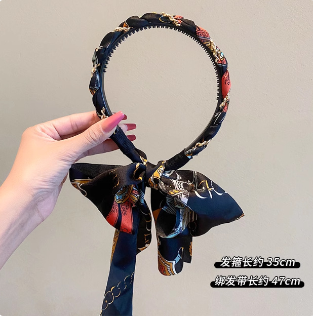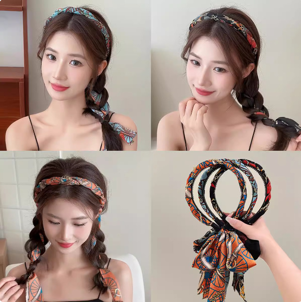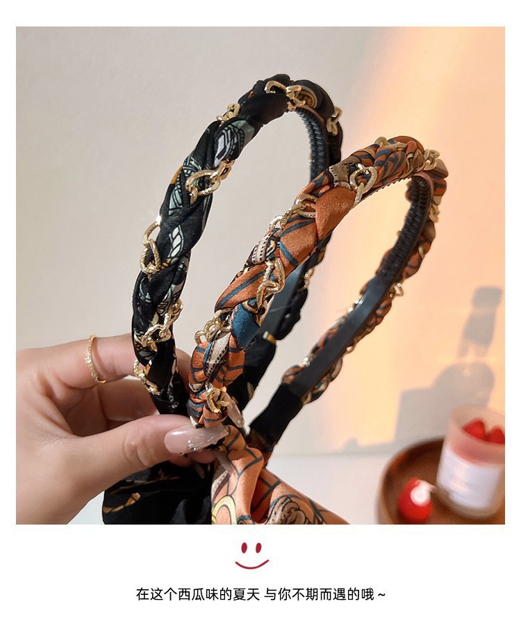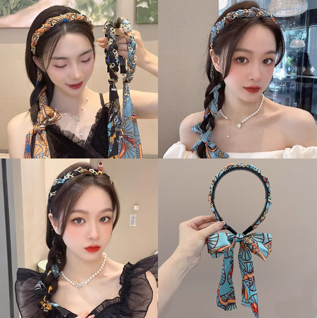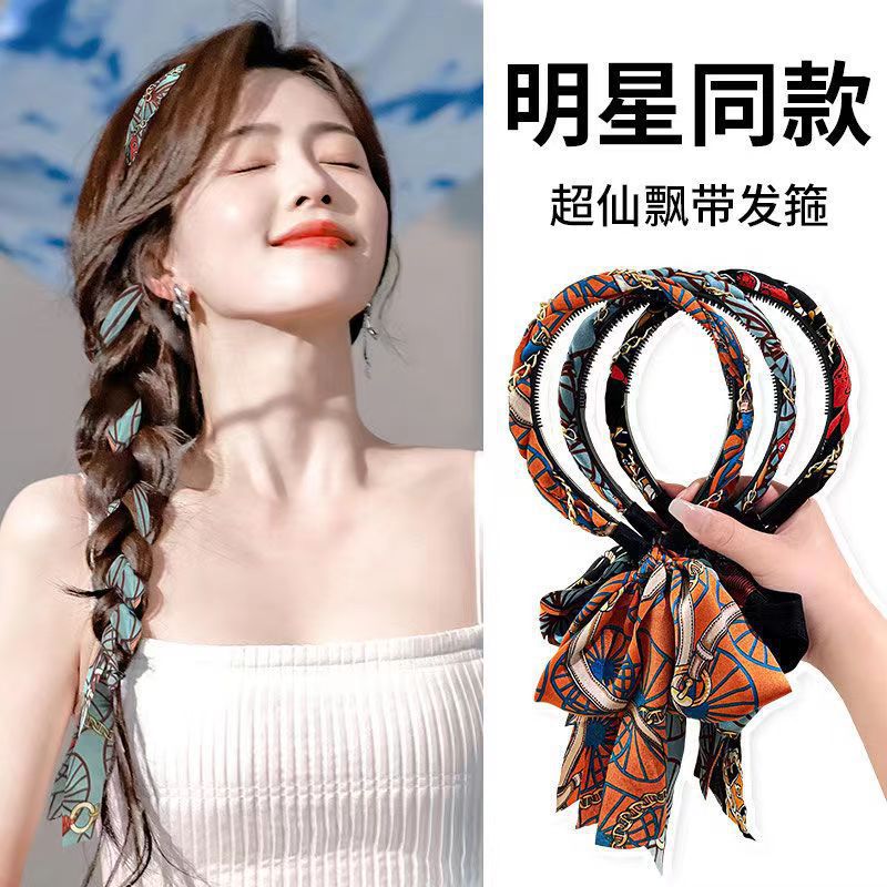 新款复古编发链条发箍女飘带发带绑发丝巾头箍一体系夏季发卡头饰