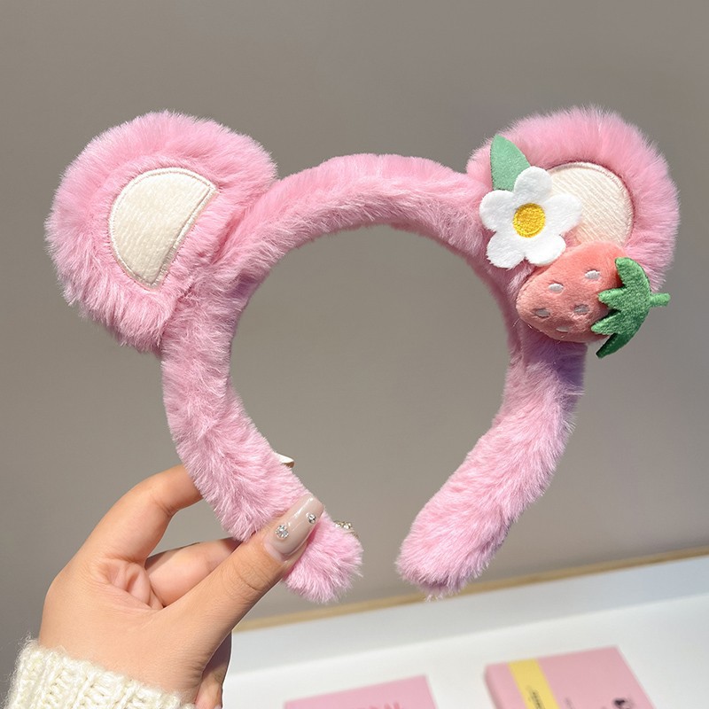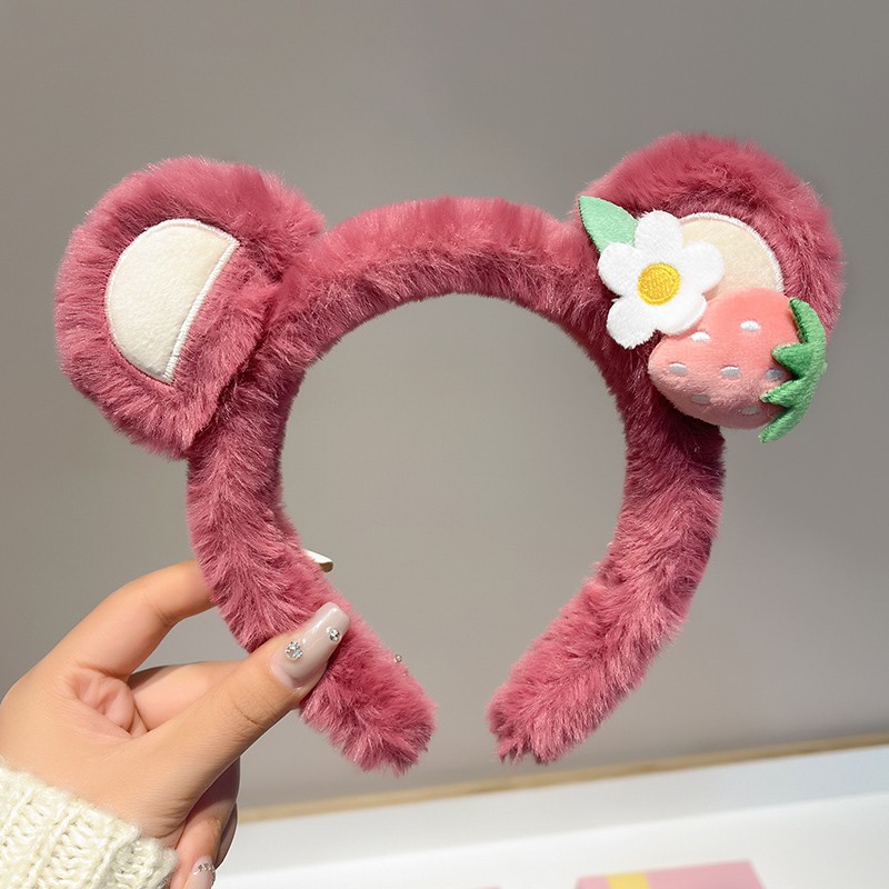可爱卡通草莓熊发箍少女毛绒发卡火腿猪洗脸压发头箍搞怪卖萌头饰