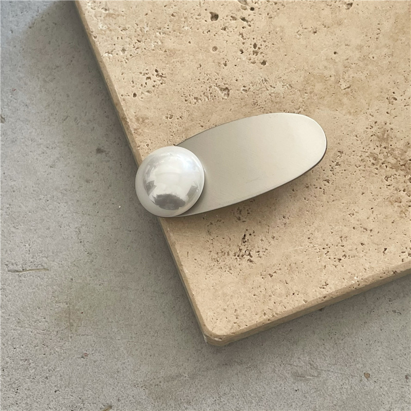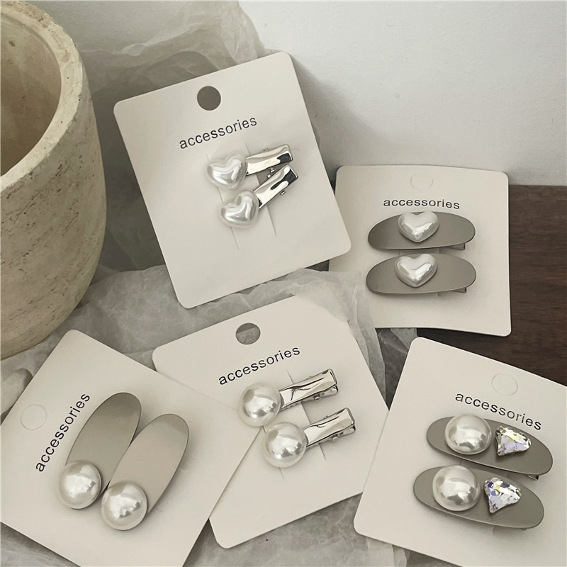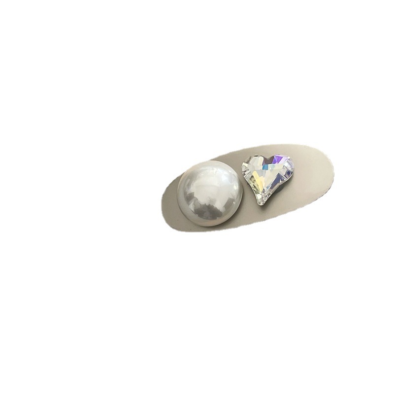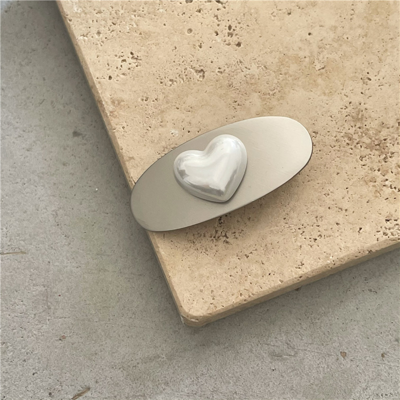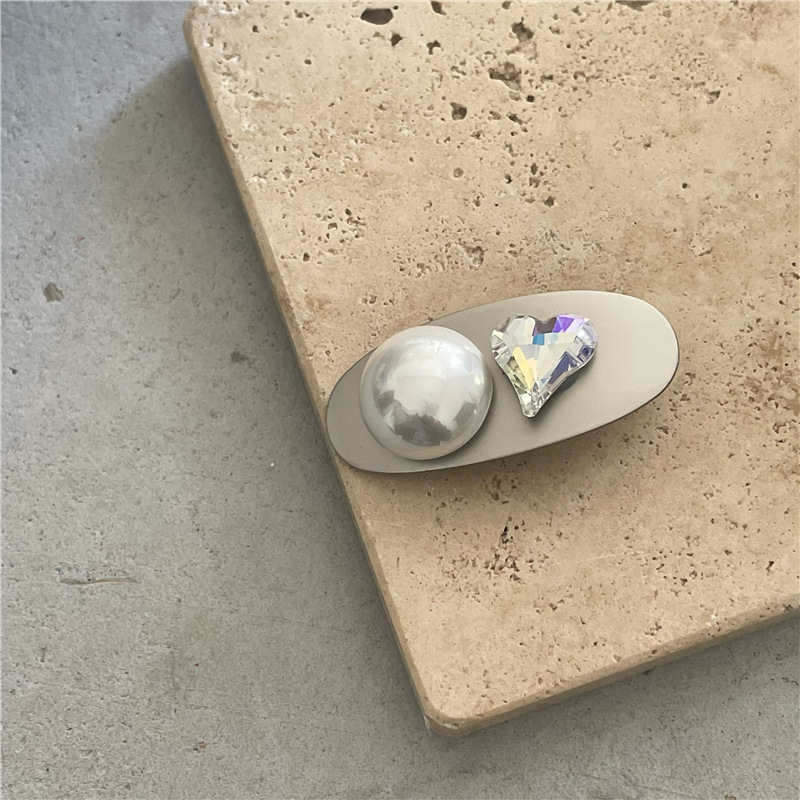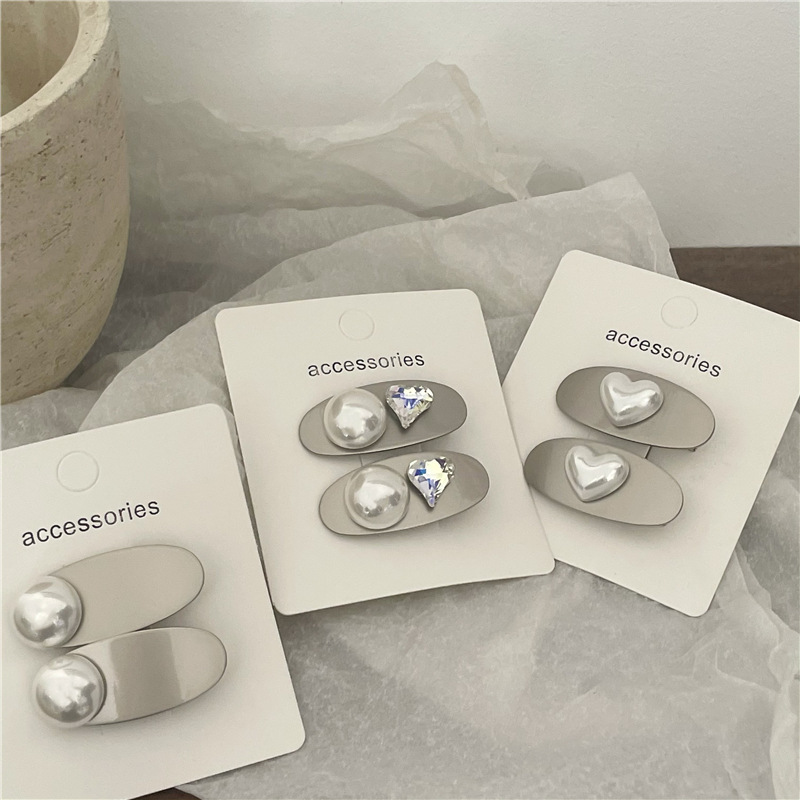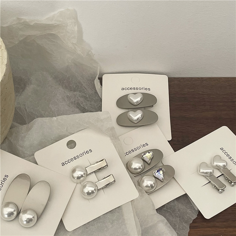 冷淡风 金属银色发夹边夹 高亮仿马贝珍珠爱心鸭嘴夹刘海夹新款