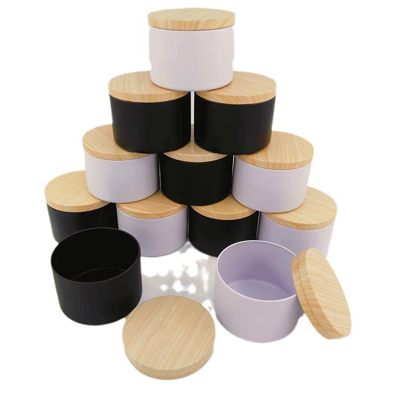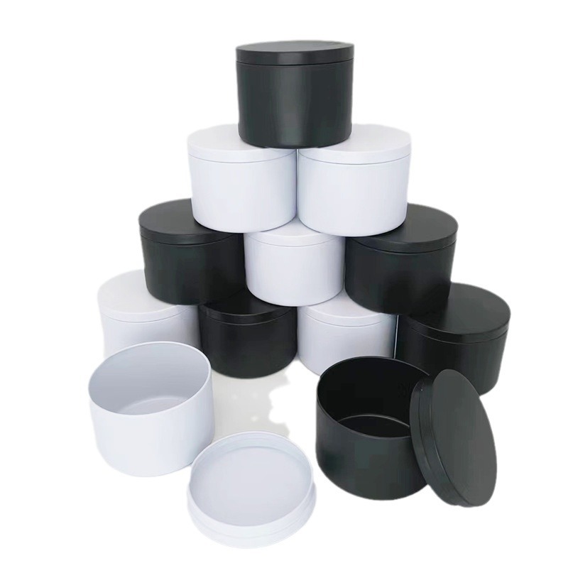 4oz 8oz马口铁蜡烛罐 蜡烛直罐双黑带盖 DIY蜡烛包装容器跨境专供
