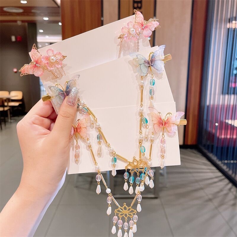 汉服头饰女儿童中国风步摇流苏发夹小女孩古装超仙花朵发卡发饰品
