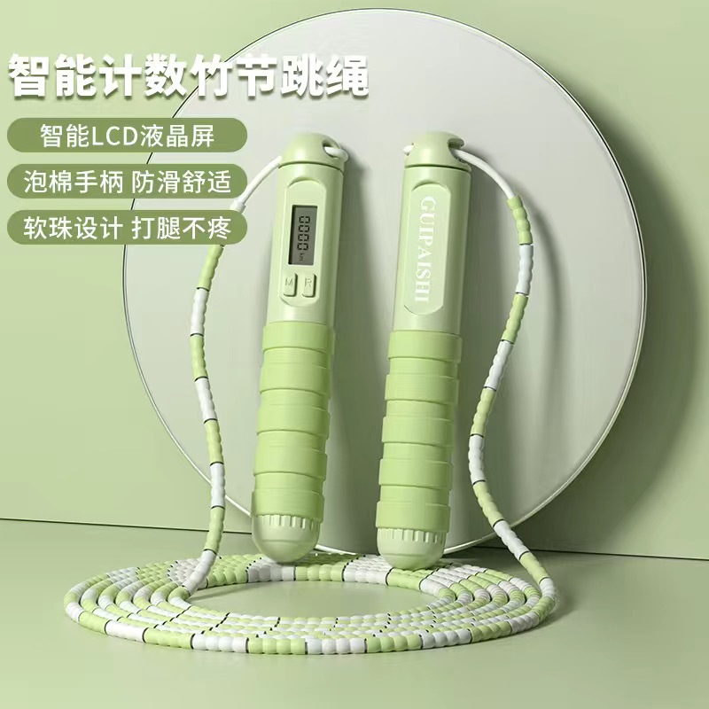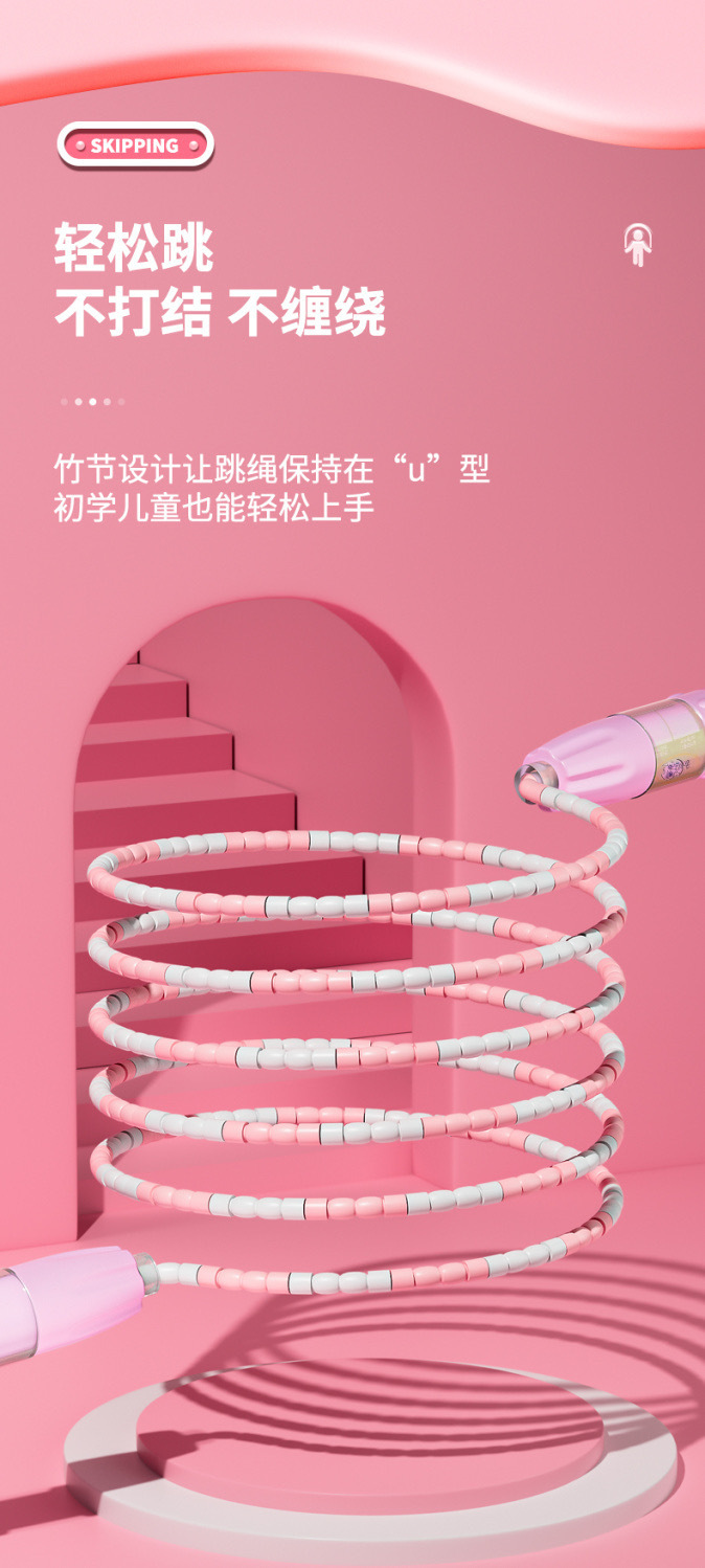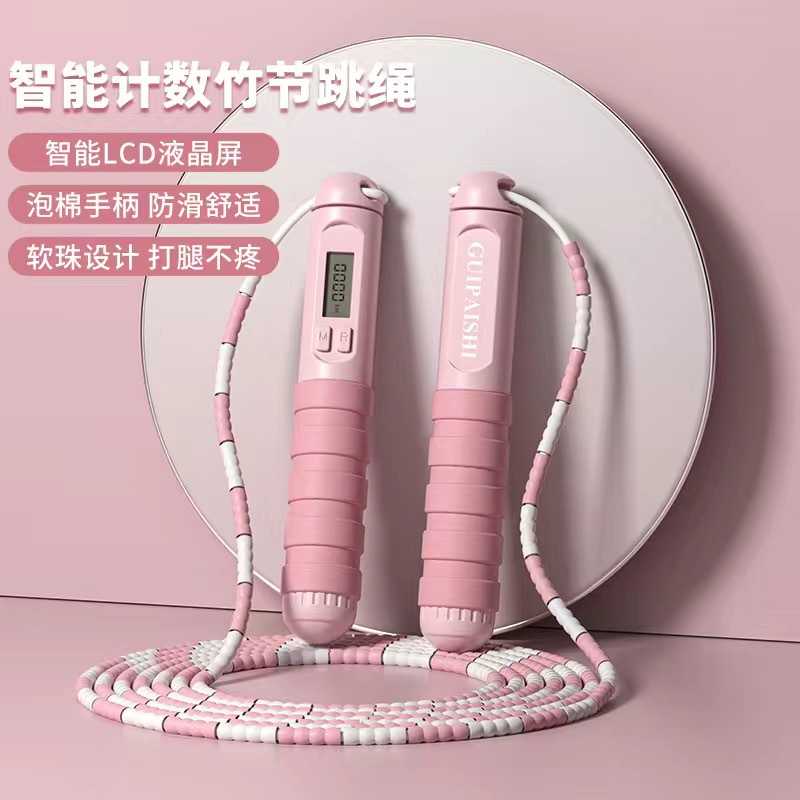 儿童防滑竹节跳绳可签名学生幼儿园初学专用绳可调节珠节跳绳批发