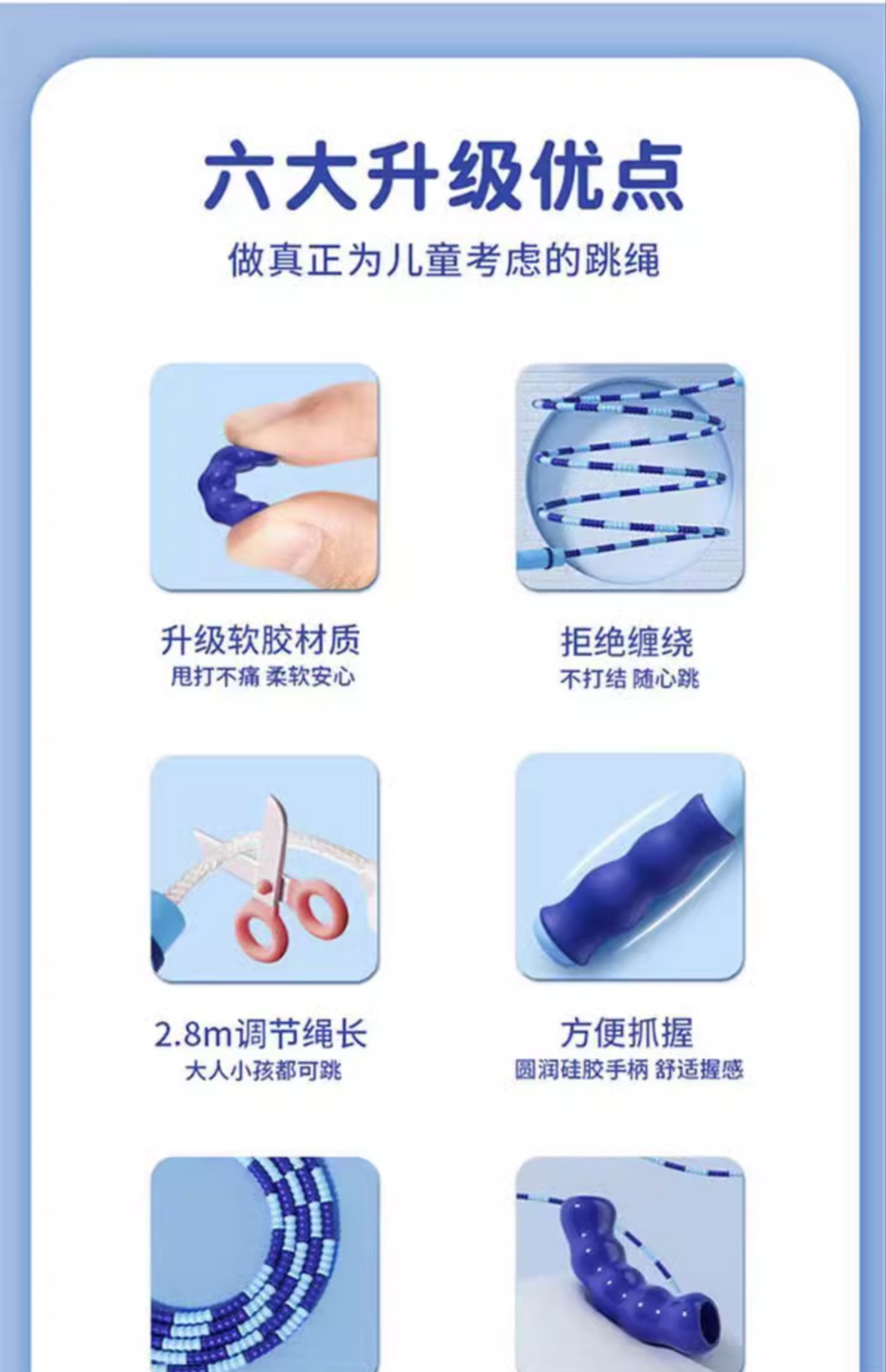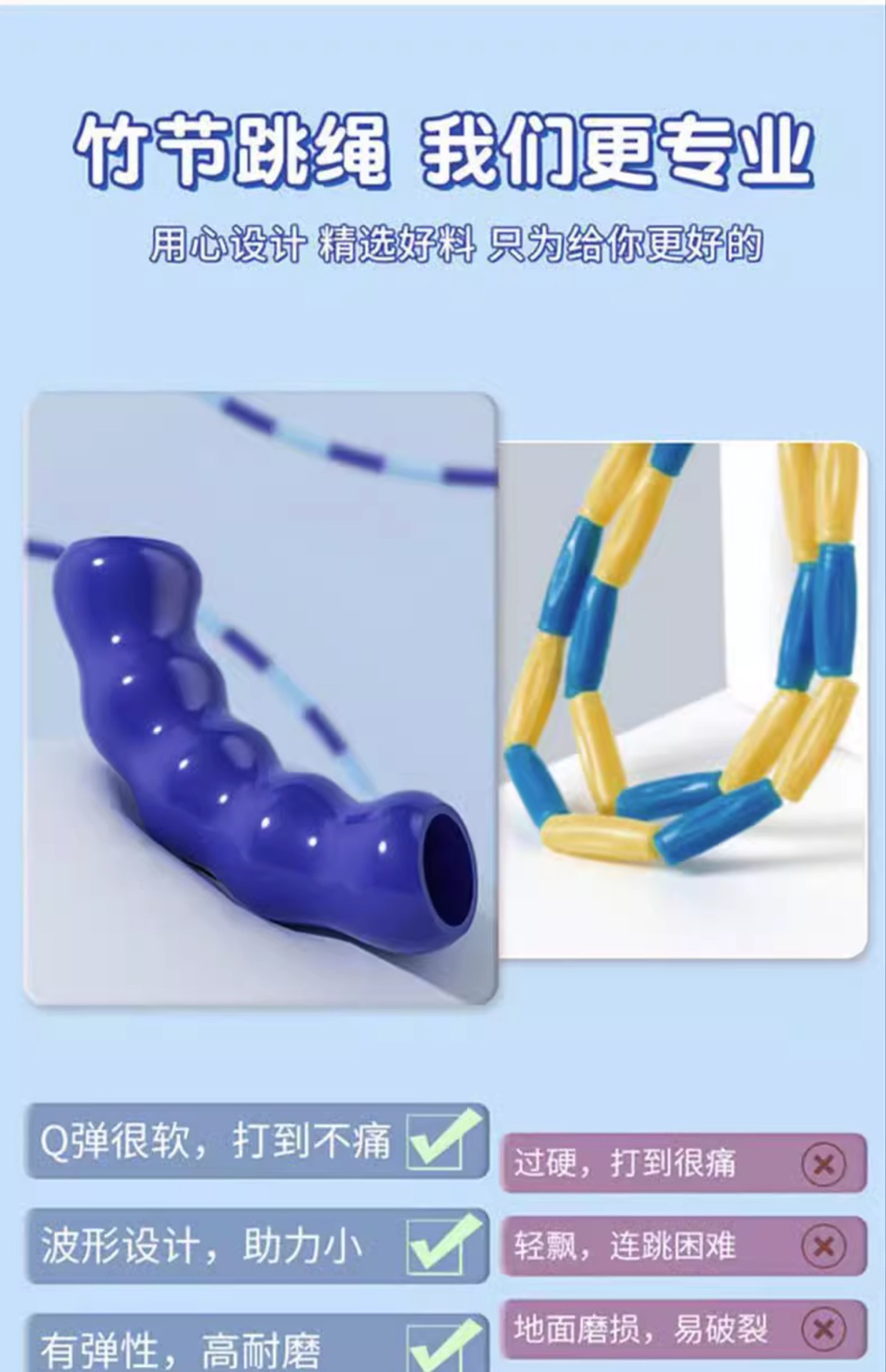 儿童竹节跳绳3-5岁幼儿园小学生初学专用软珠可调节珠节绳竹节绳
