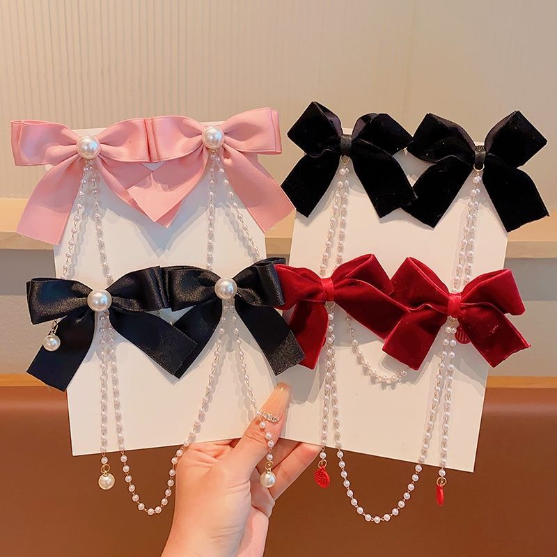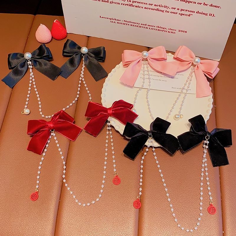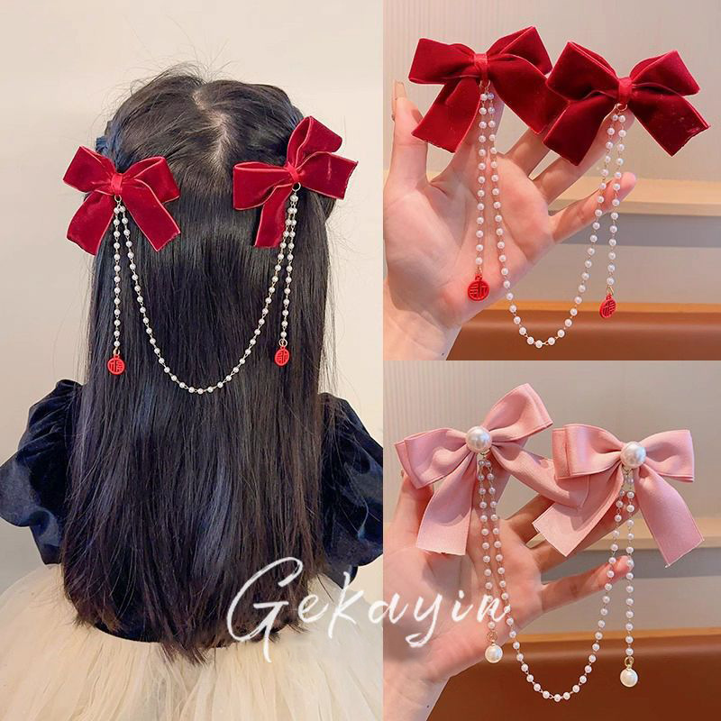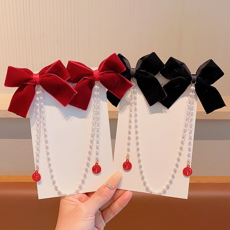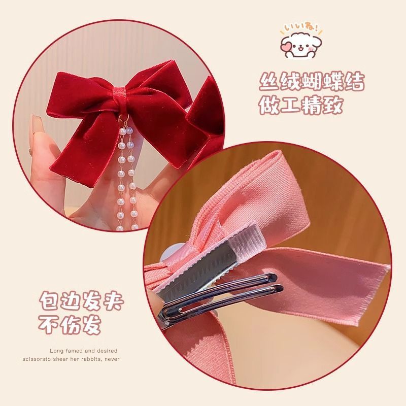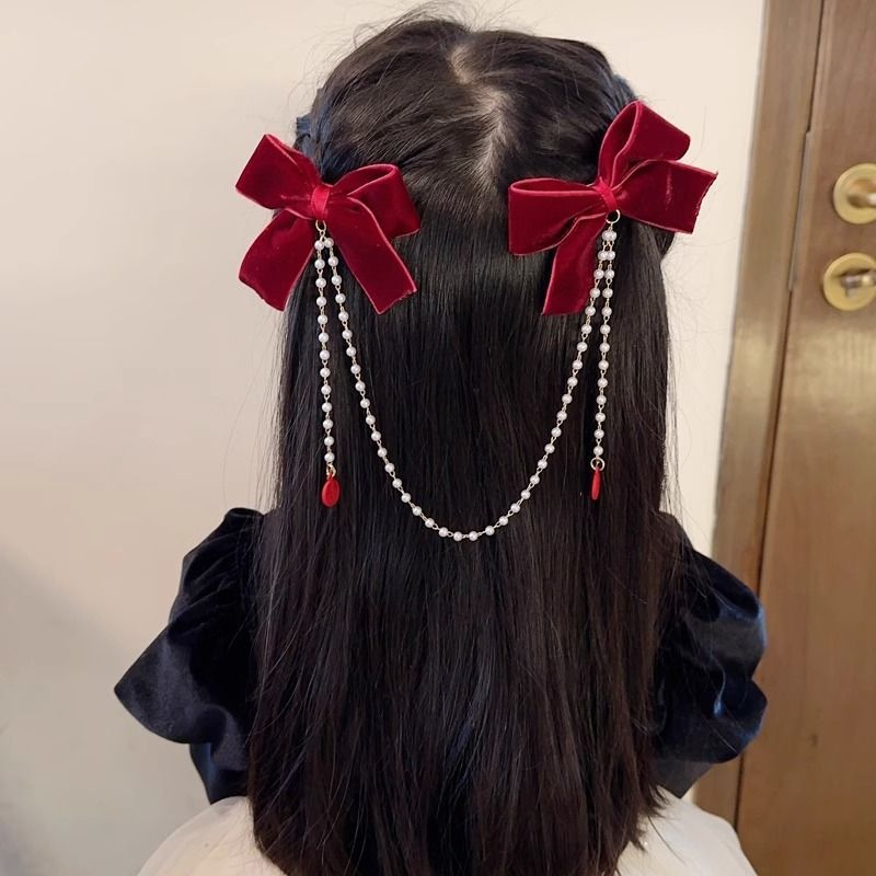 女童蝴蝶结新年发饰红色过年秋冬儿童刘海发夹后脑勺女孩流苏发卡