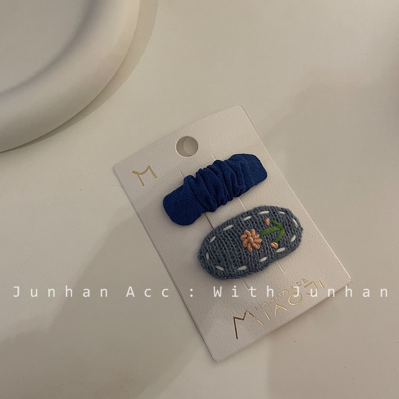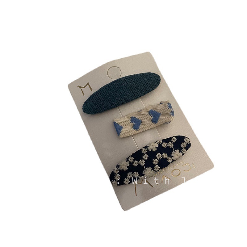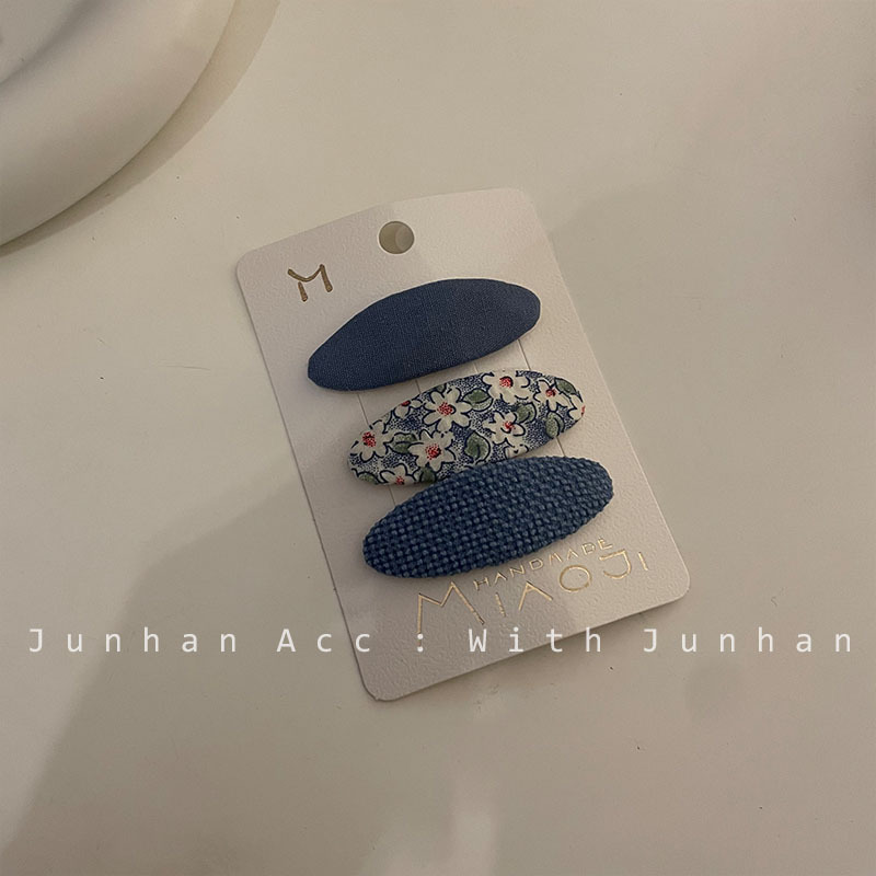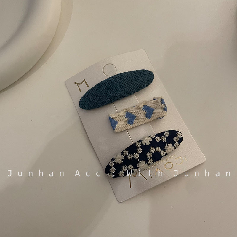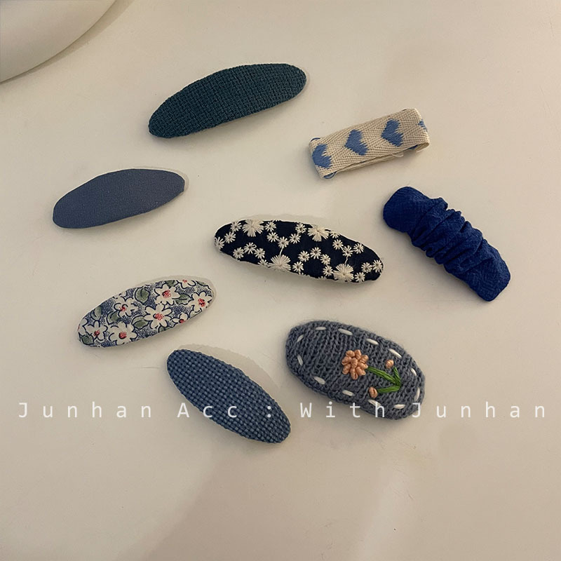 韩国INS蓝色纹理爱心花朵BB夹可爱宝宝碎发边夹发夹发饰头饰套装