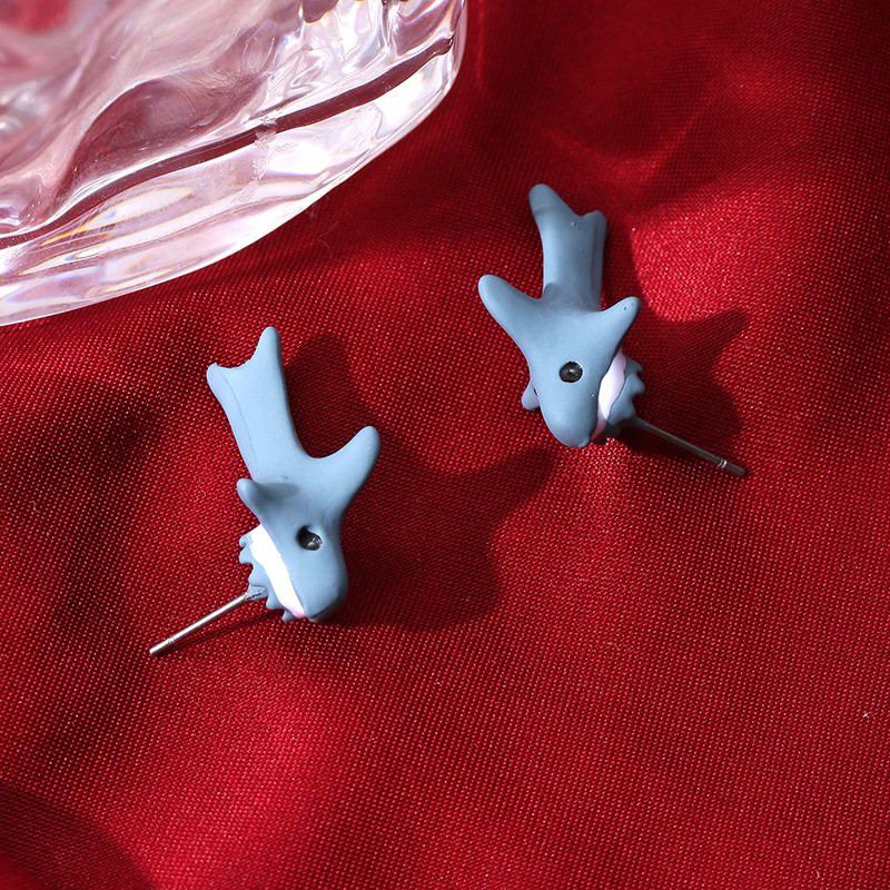欧美小动物咬耳朵恐龙耳钉柯基鲨鱼耳饰品喷漆可爱迷你跨境批发