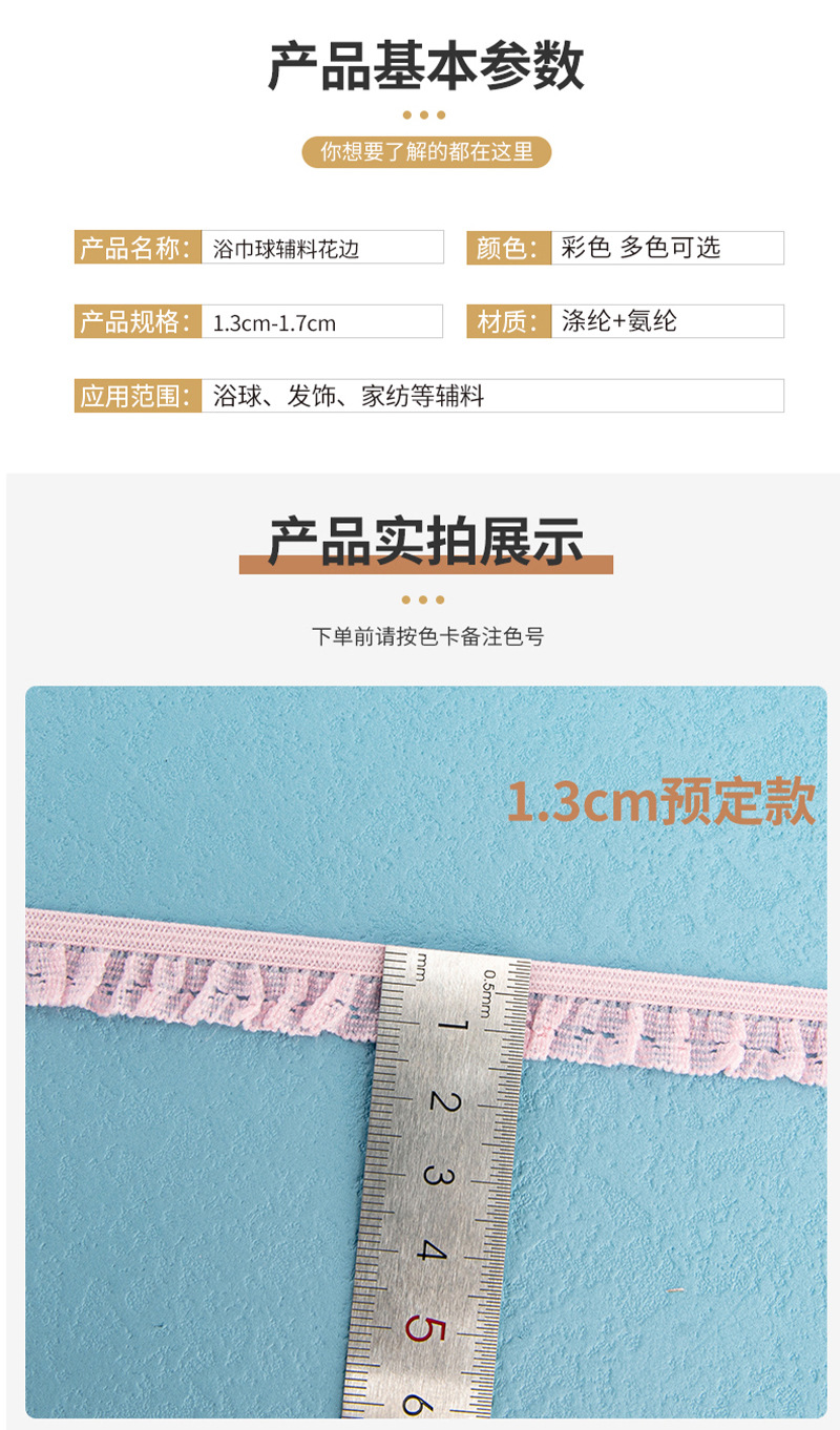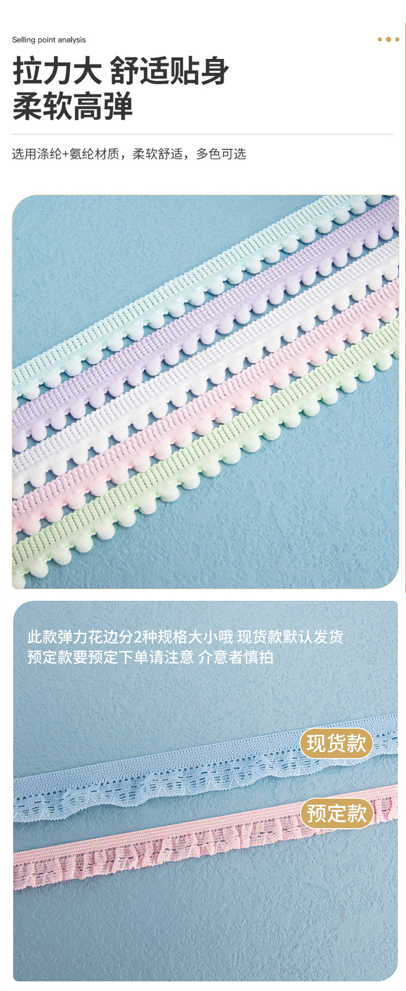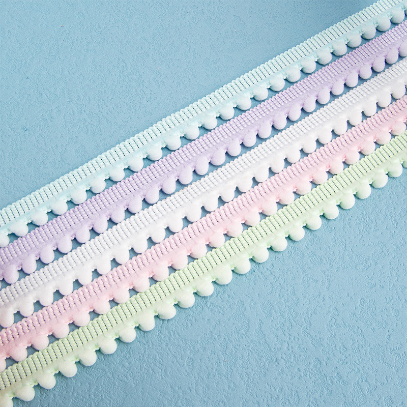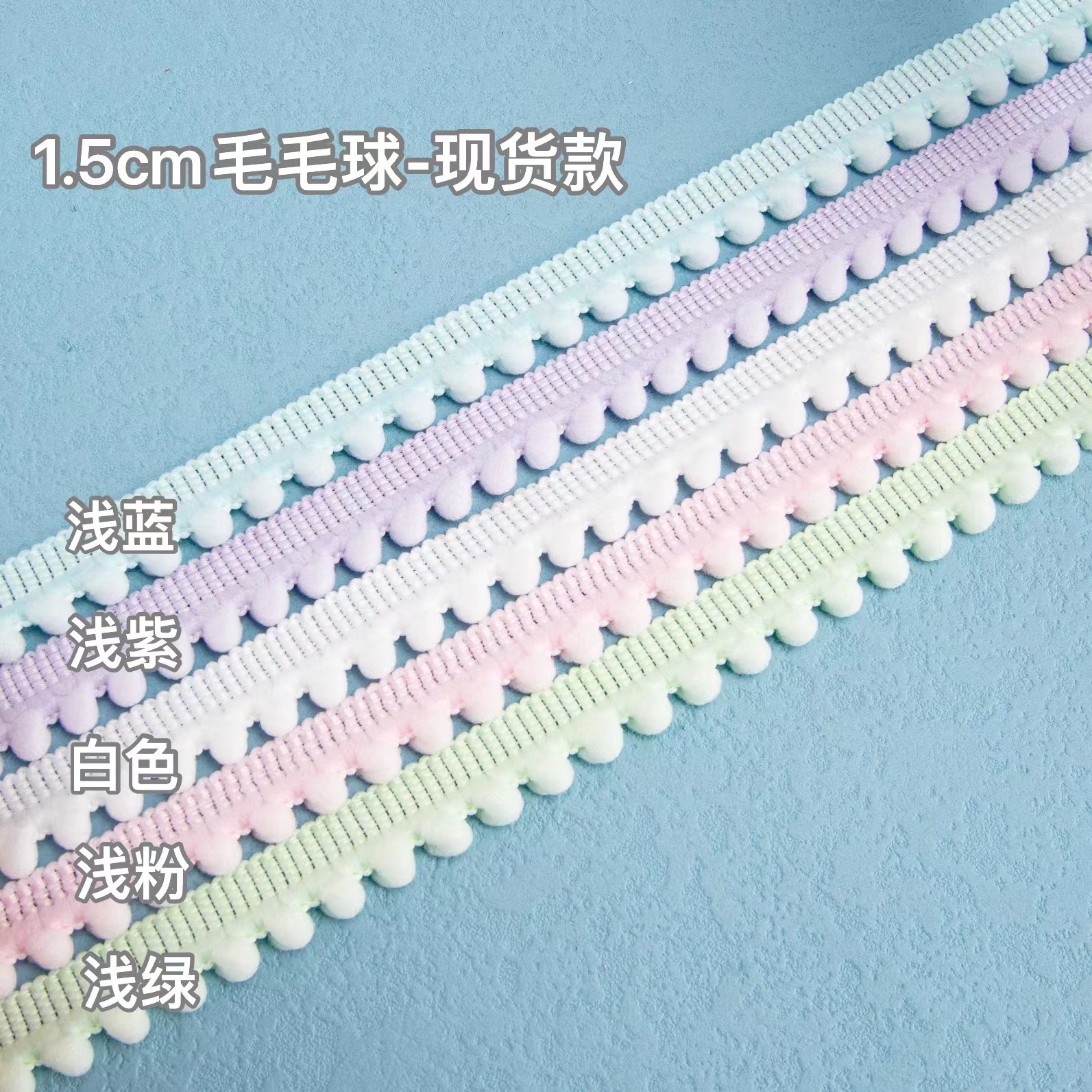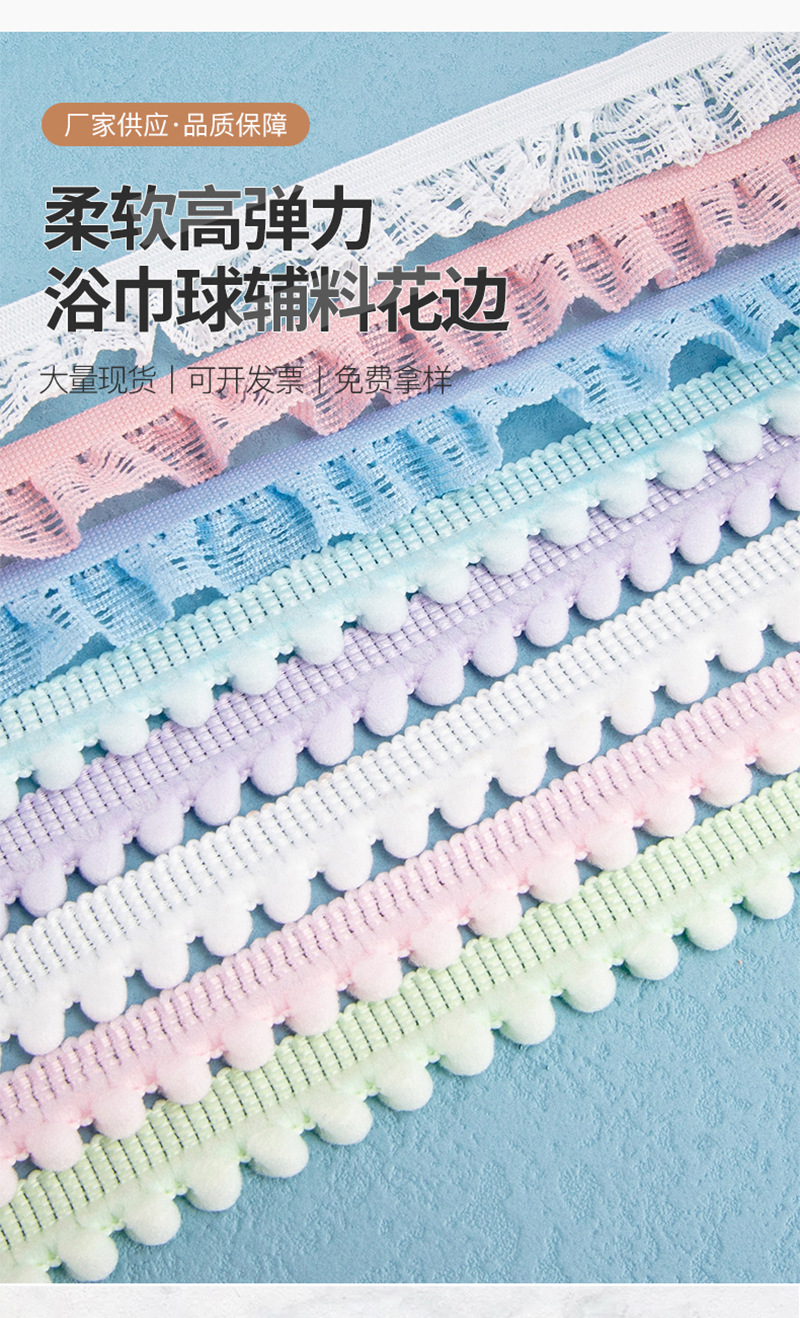 手工彩色弹力花边无弹小毛球DIY发饰家纺装饰辅料蕾丝花边批发