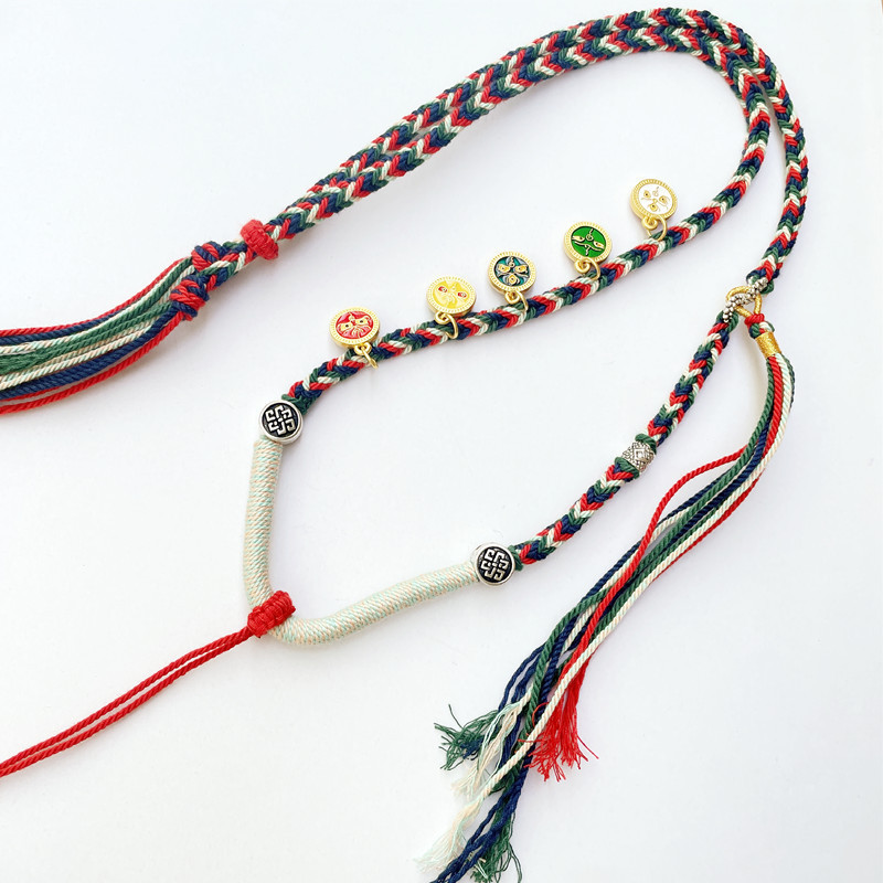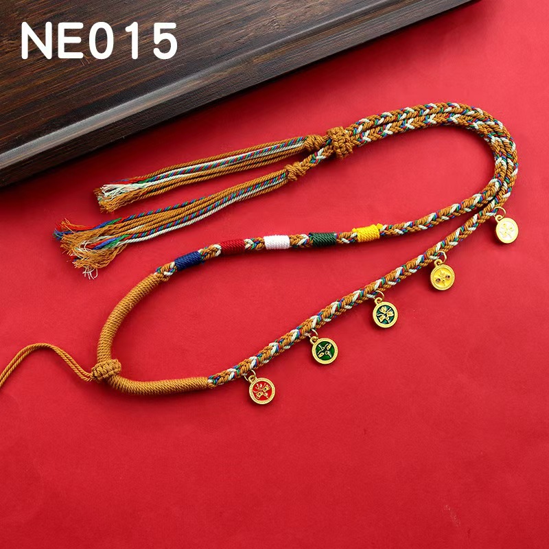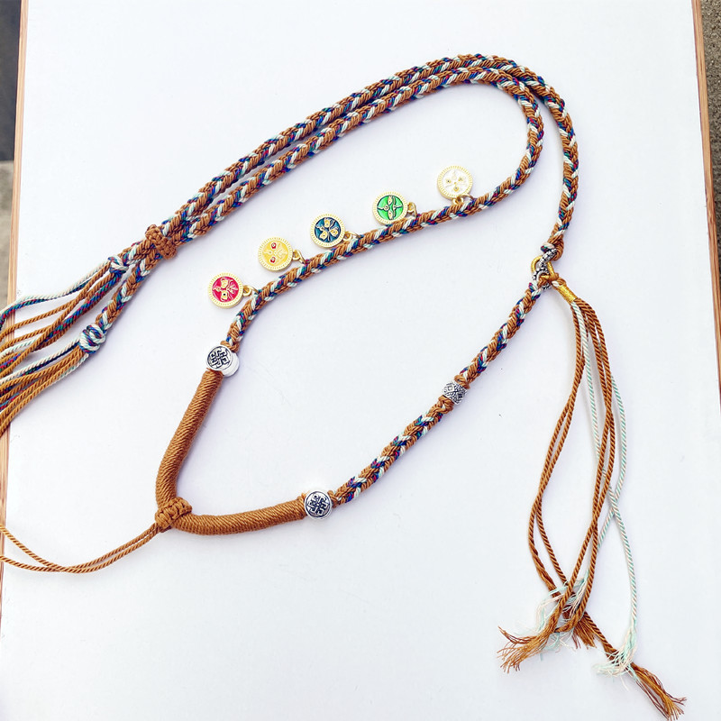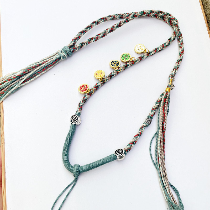 直播供货藏式民族风五路吊坠绳唐卡挂绳手工编织彩色项链绳款