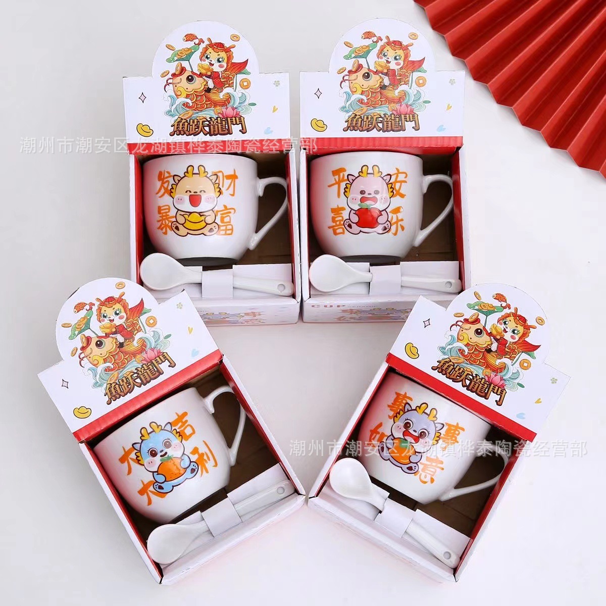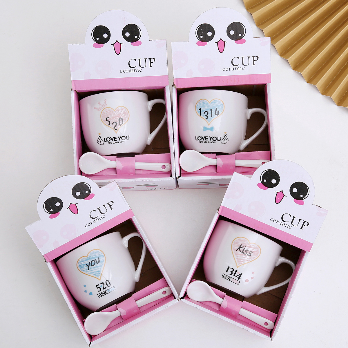 新款陶瓷杯 地推礼品水杯陶瓷咖啡杯 卡通地推情侣马克杯印刷Logo
