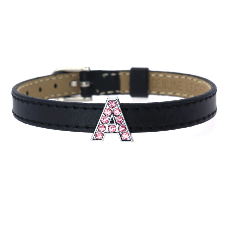 粉色水钻字母饰品 合金字母珠 diy个性手链 钥匙链饰品配件