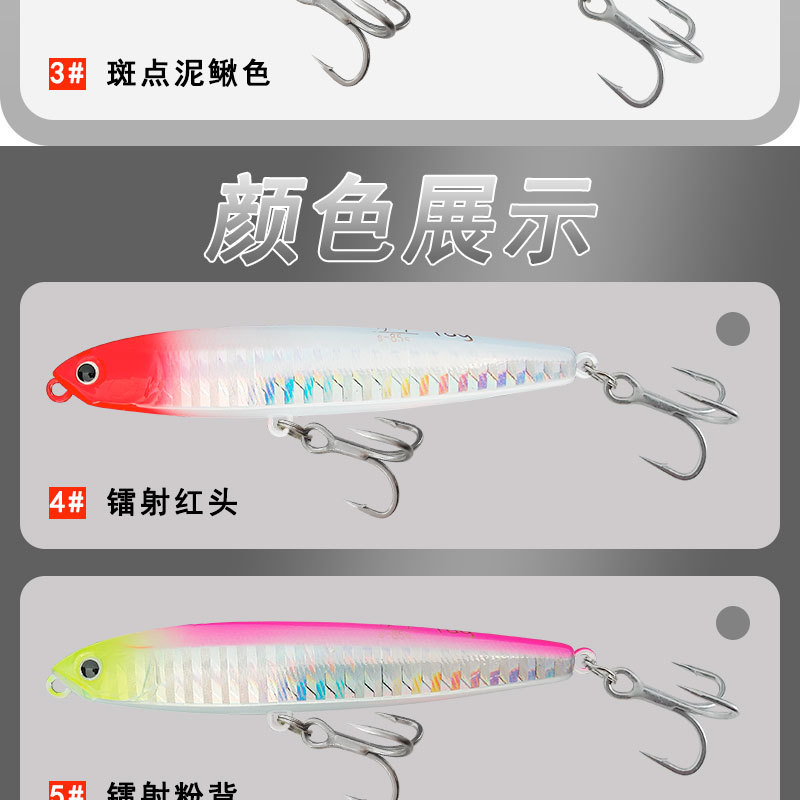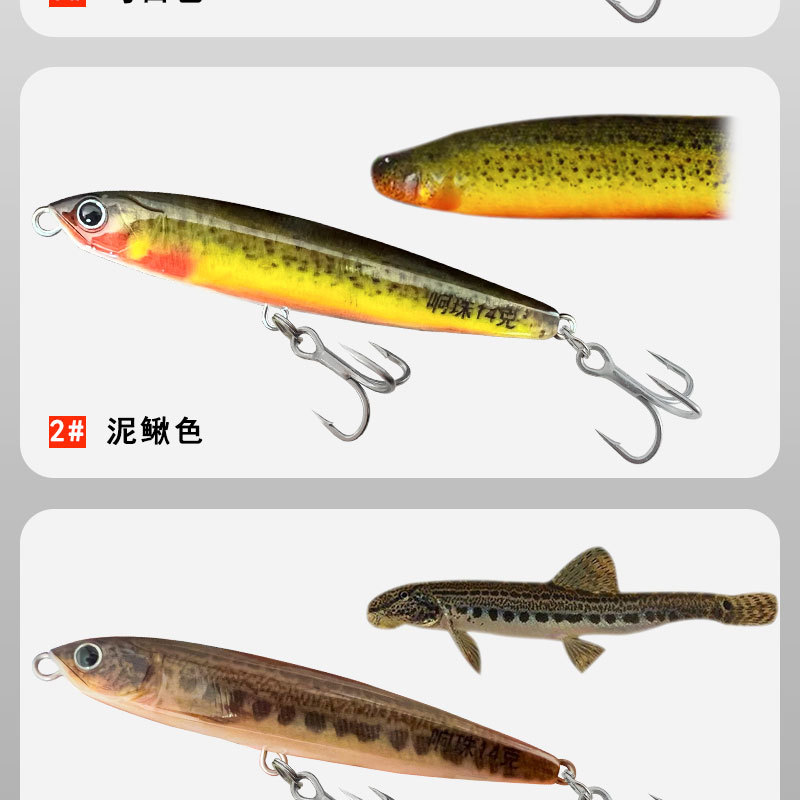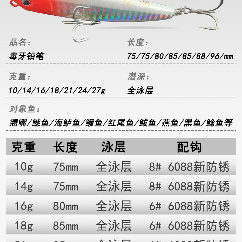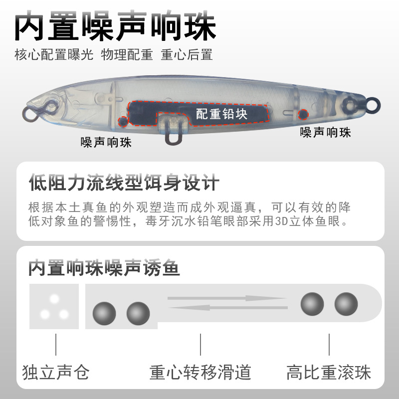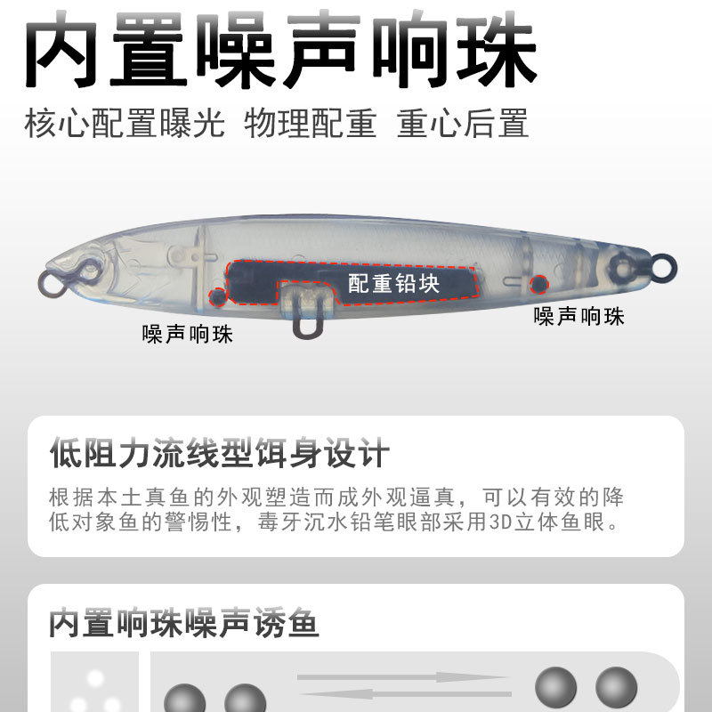 正版毒牙沉水铅笔路亚饵新防锈加强钩超远投颤沉响珠假饵翘嘴鱤鱼