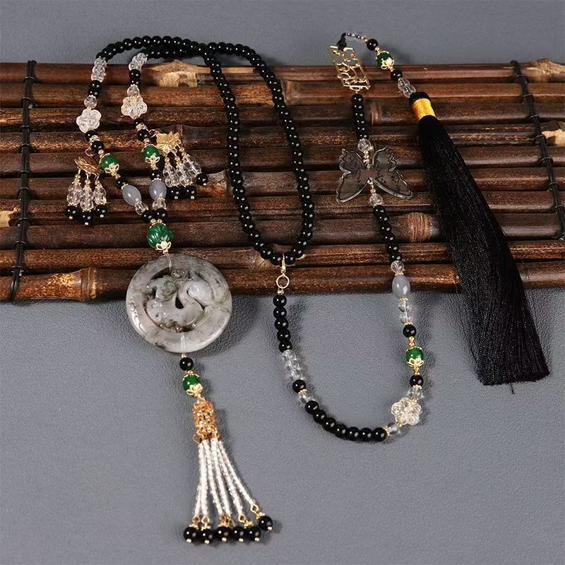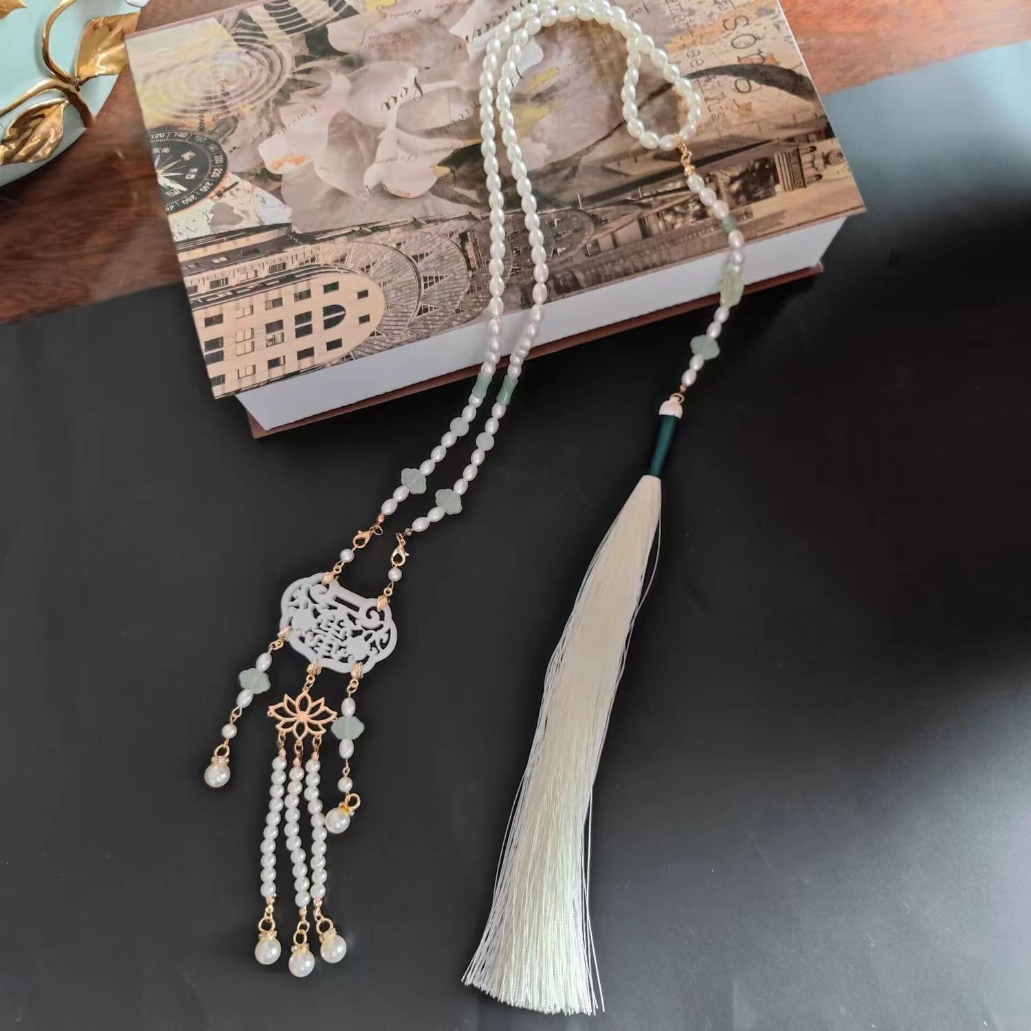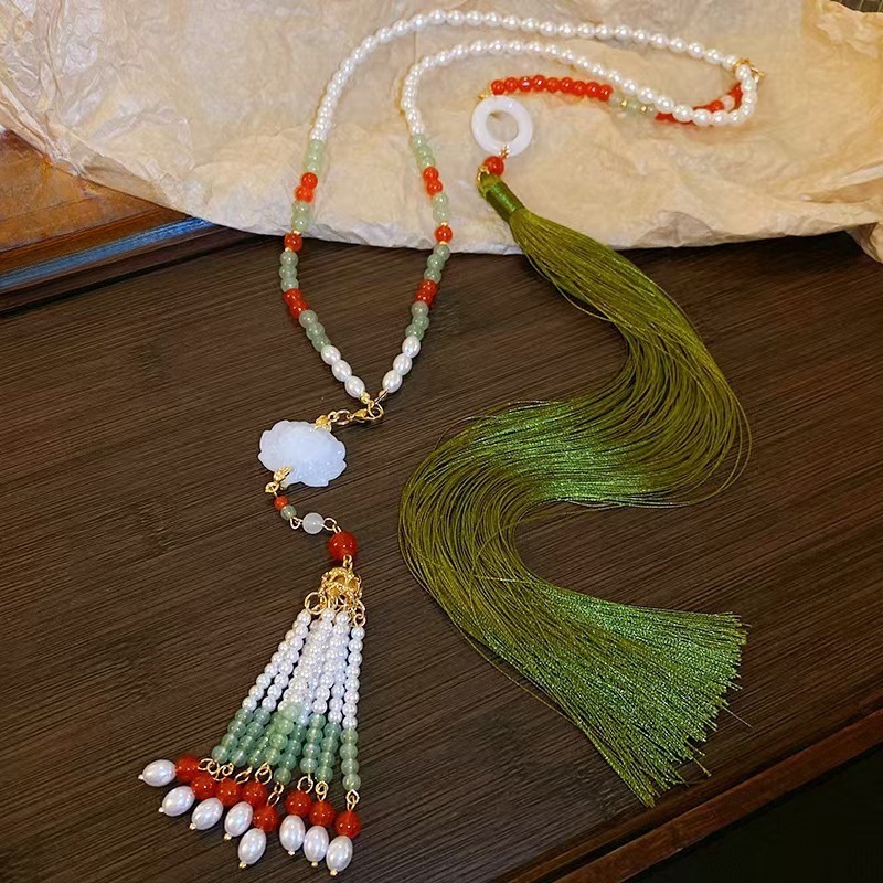 新中式毛衣链马面裙旗袍配饰 国风小众设计背云流苏串珠璎珞项链