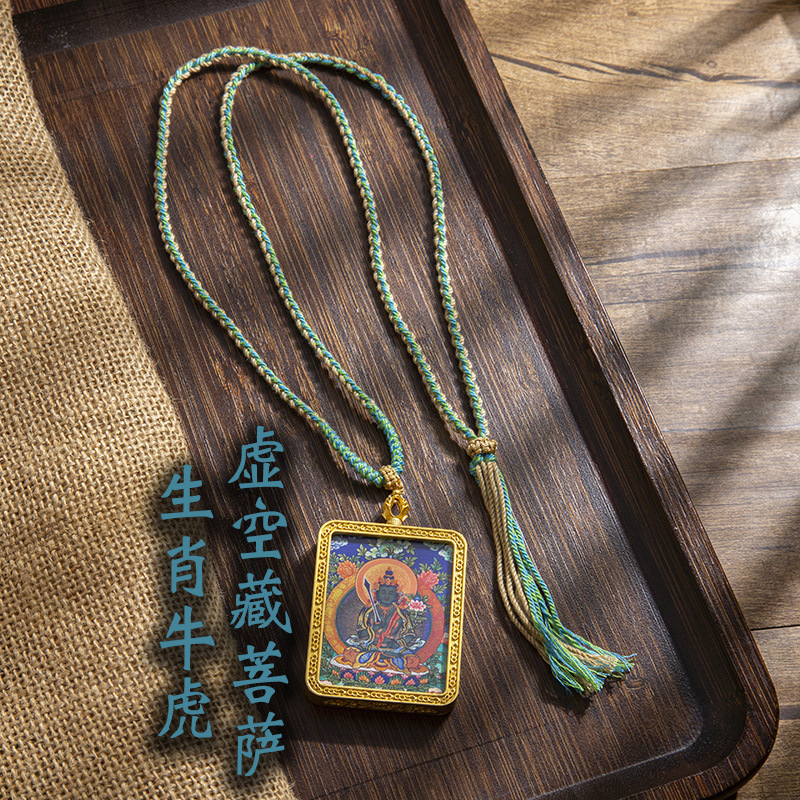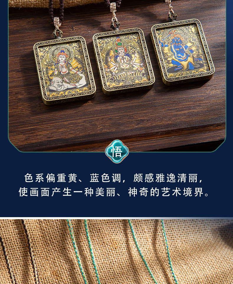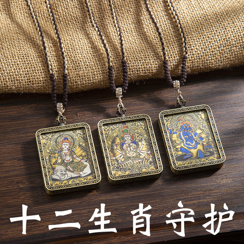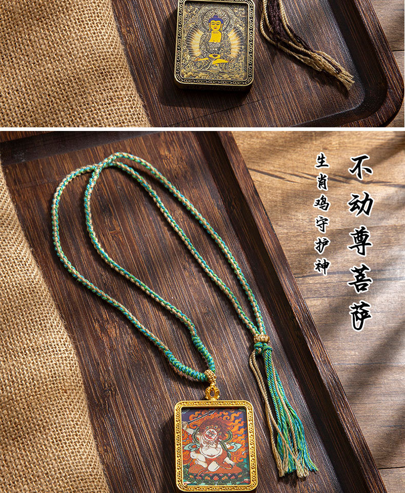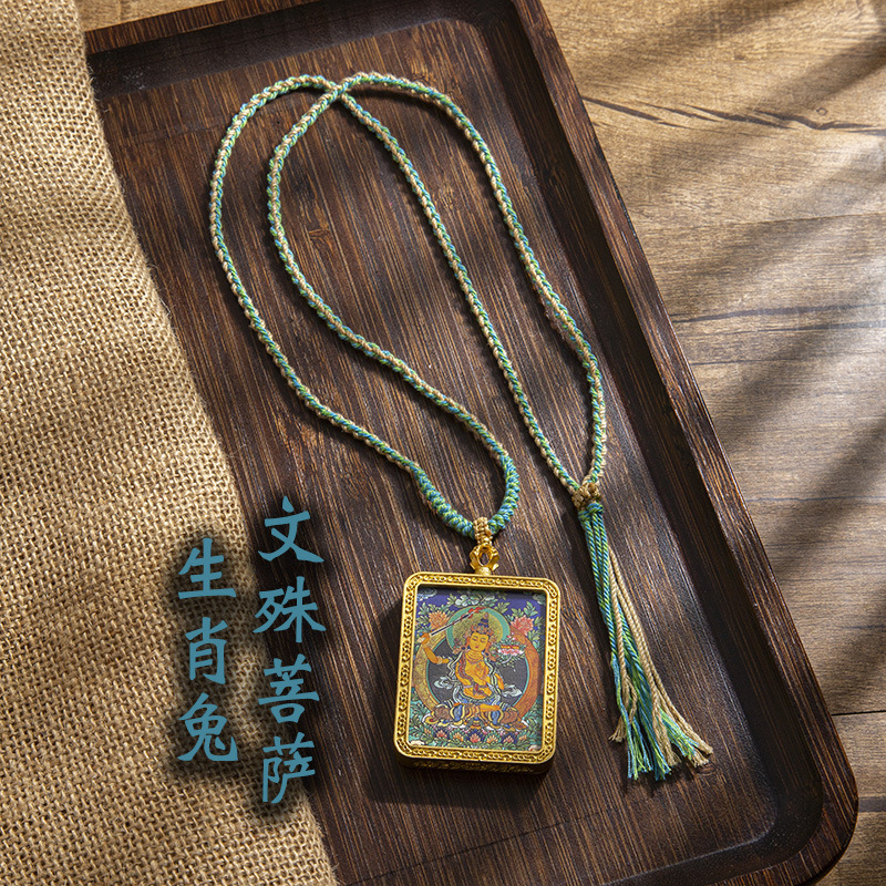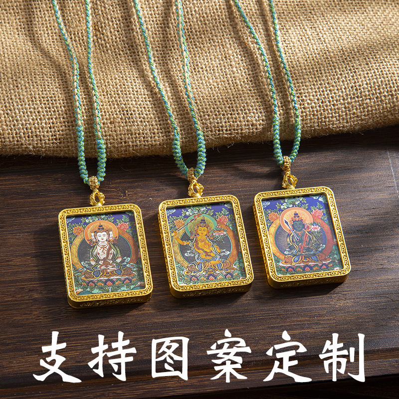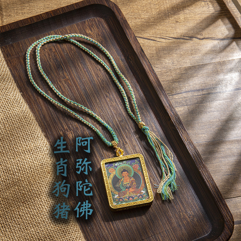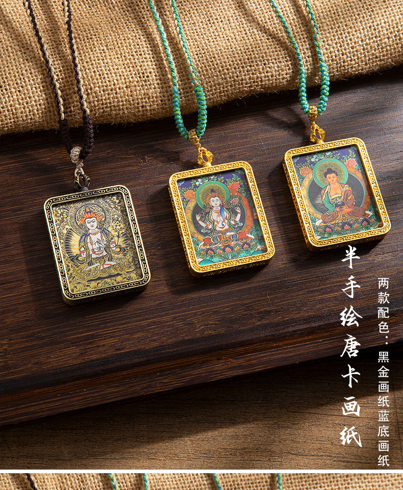 藏式唐卡手绘吊坠十二生肖八大守护神项链画芯嘎乌盒男女藏传画盒