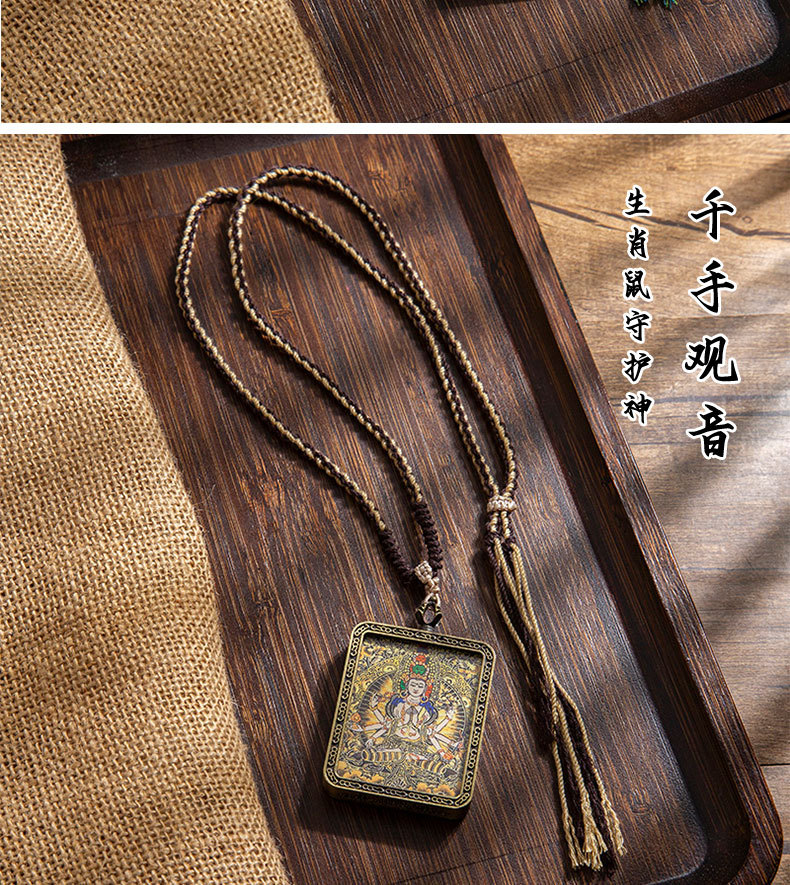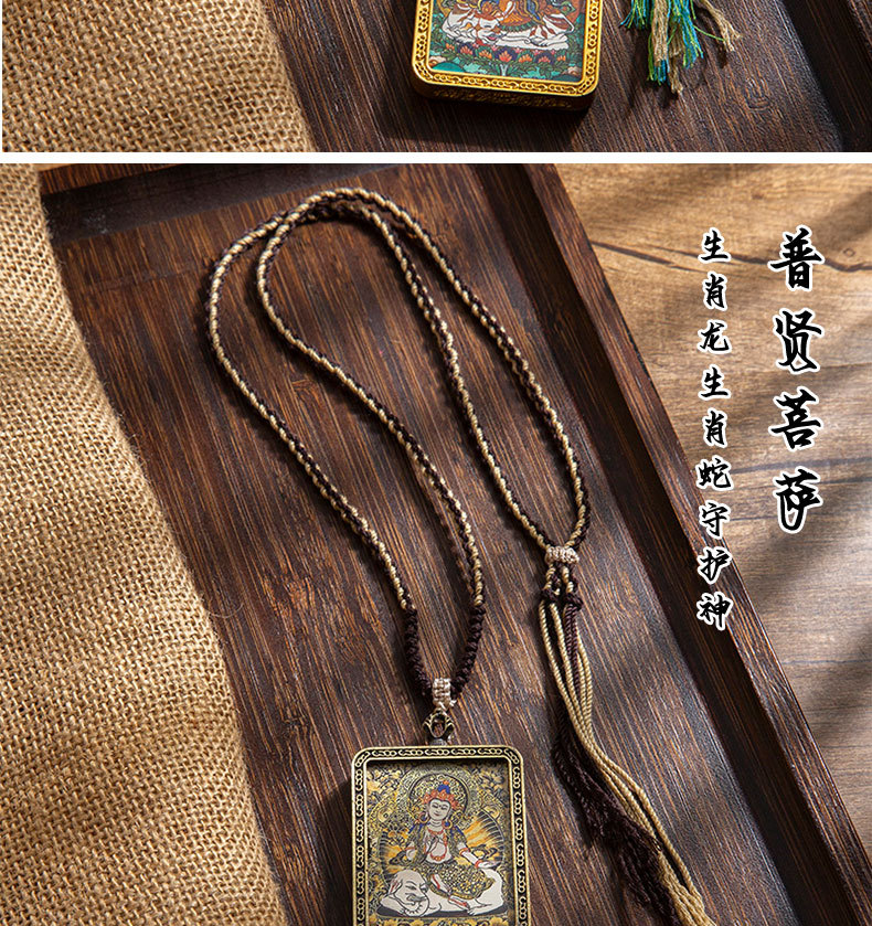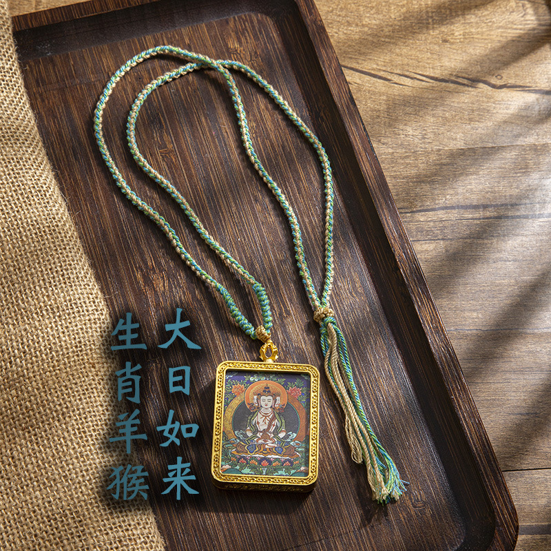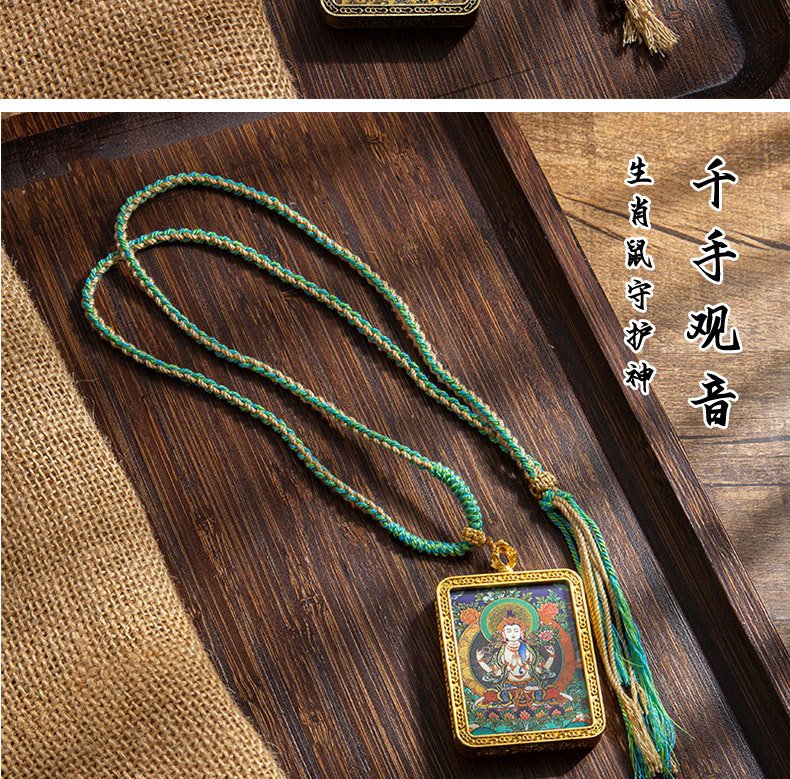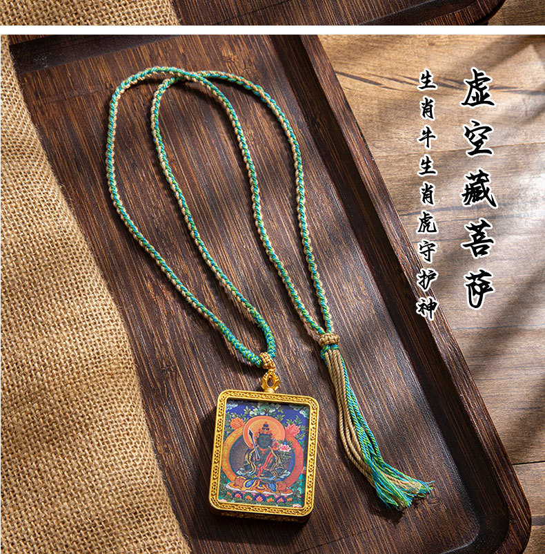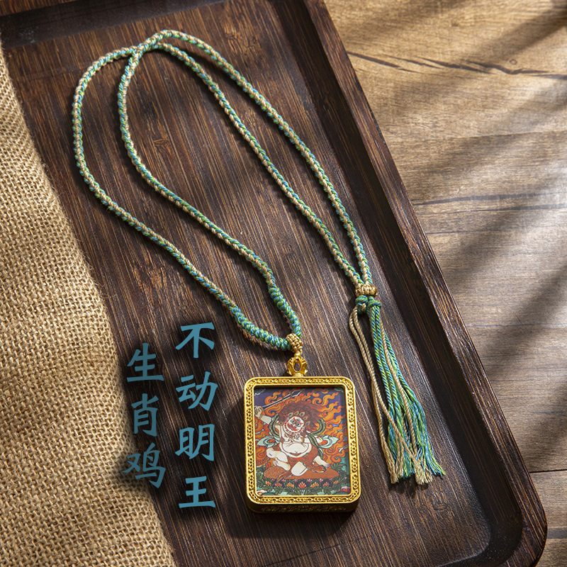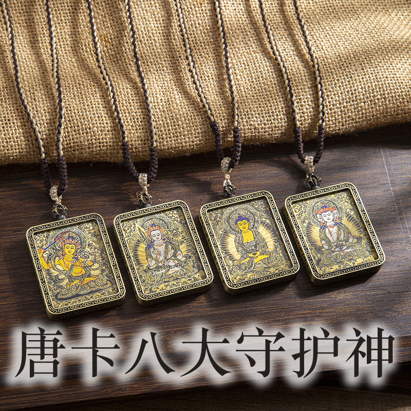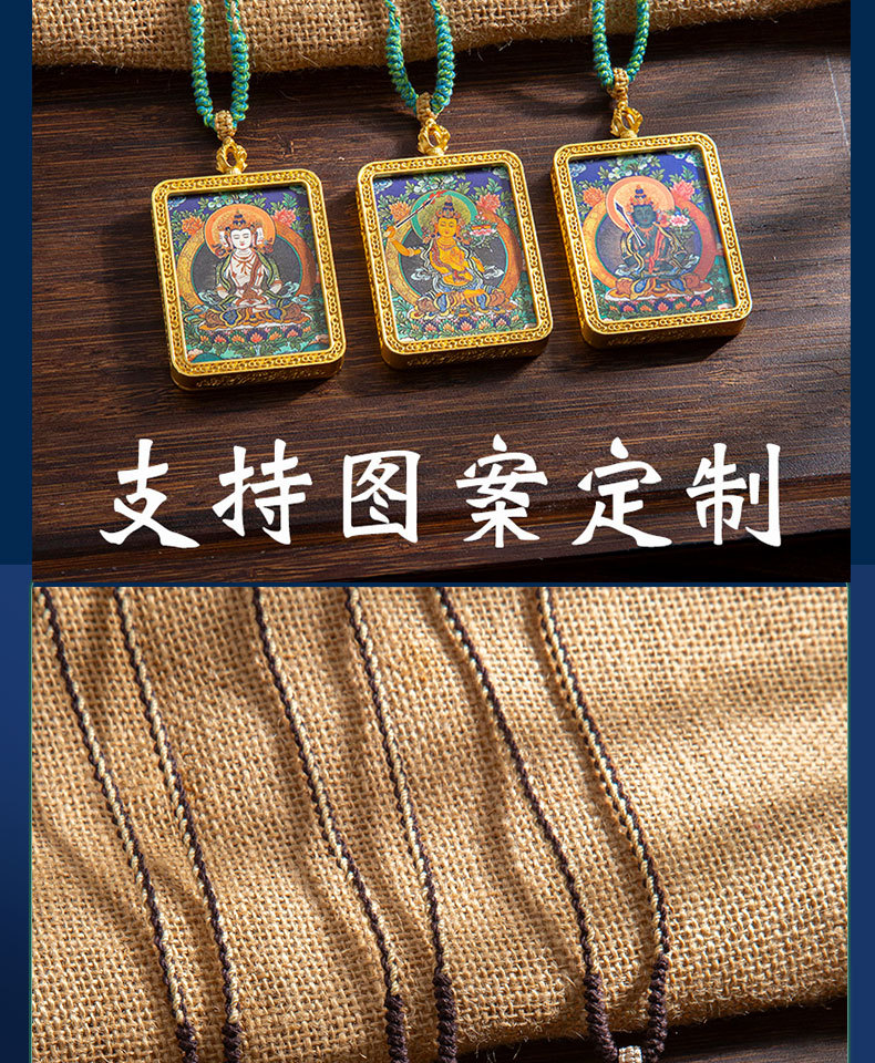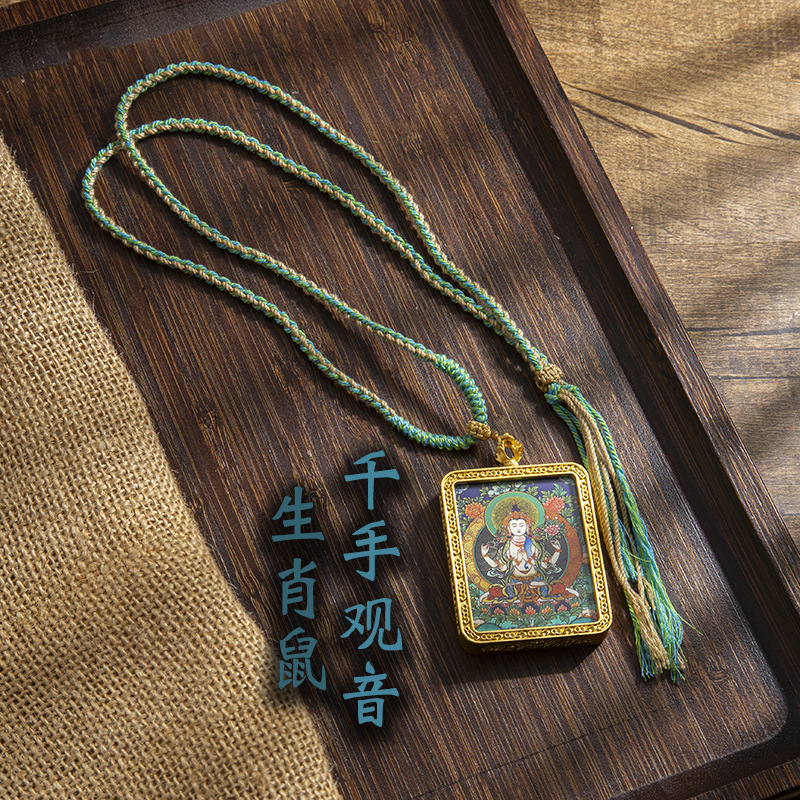 藏式唐卡手绘吊坠十二生肖八大守护神项链画芯嘎乌盒男女藏传画盒