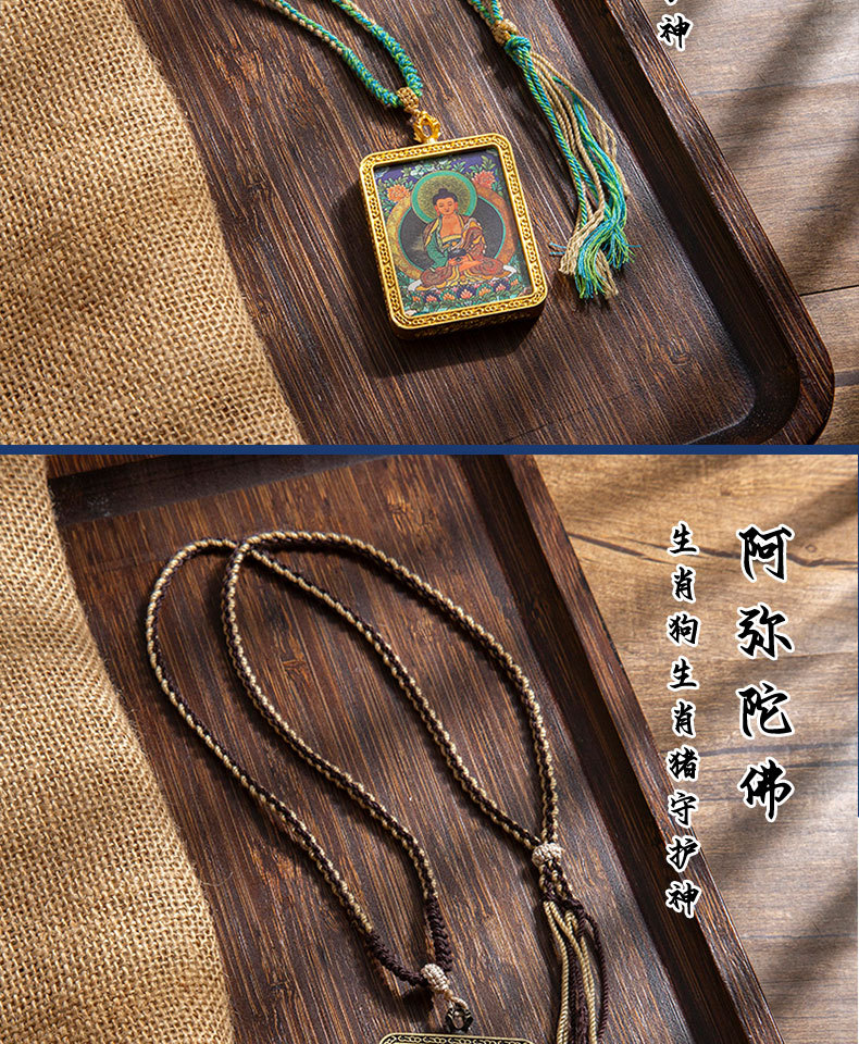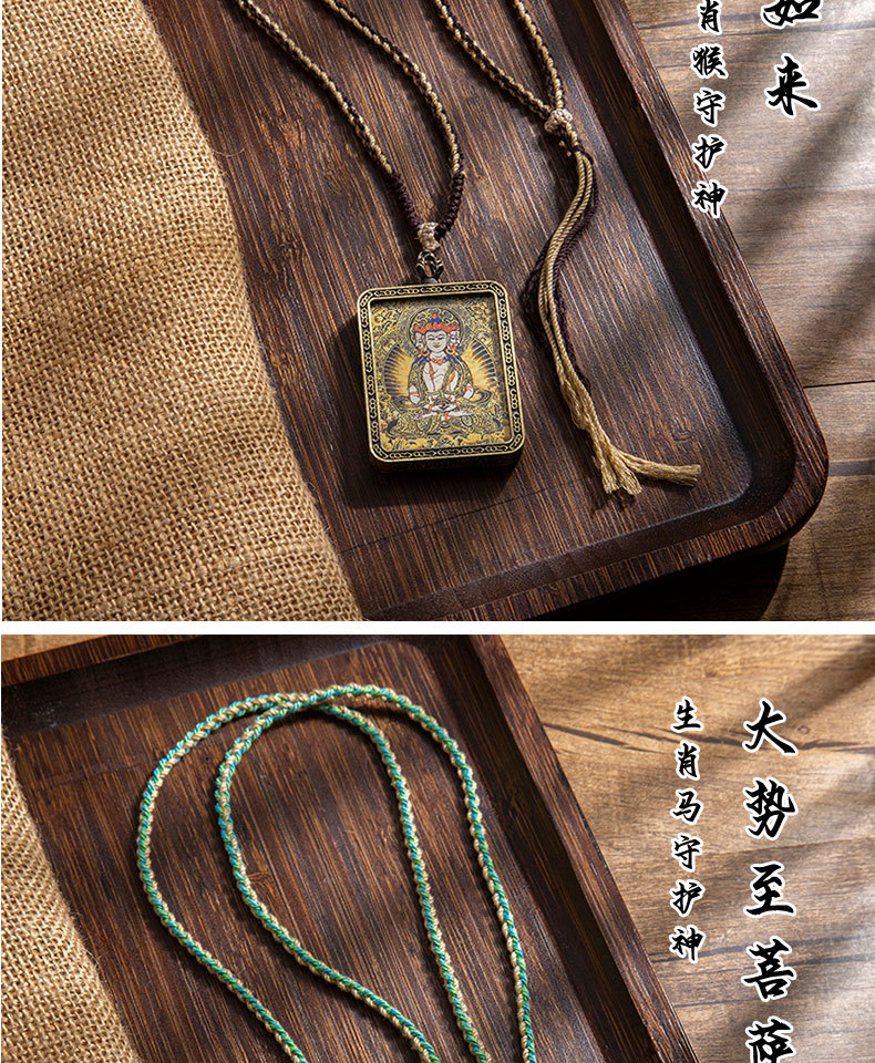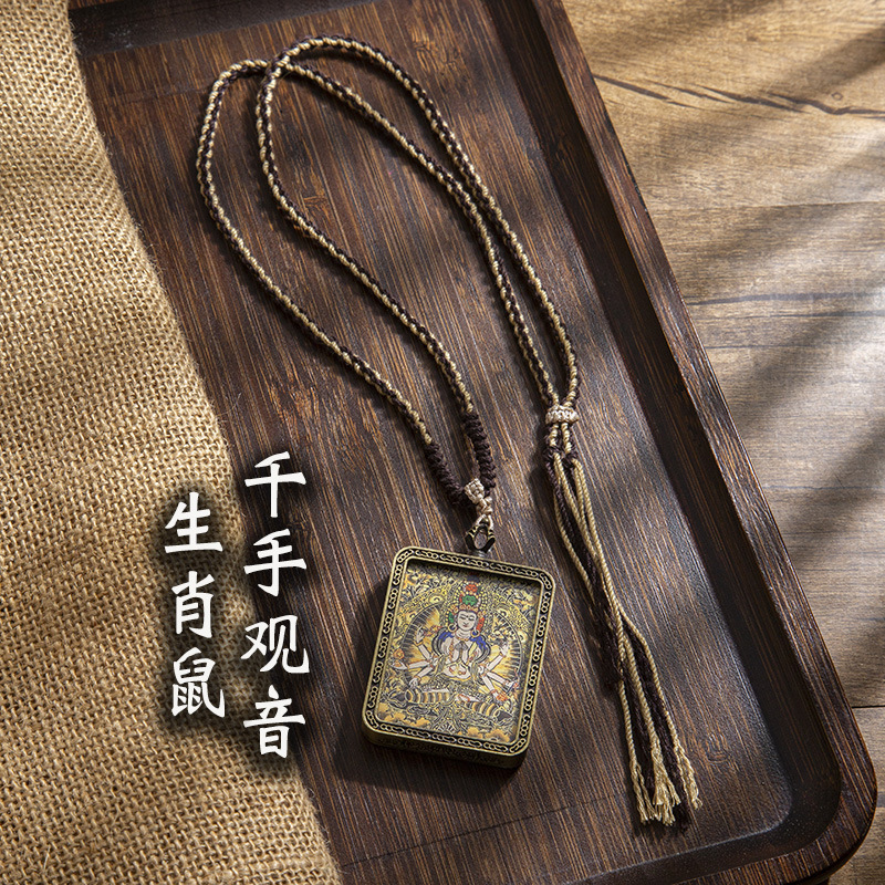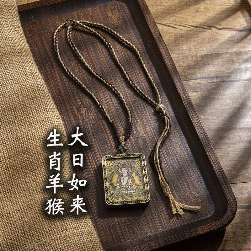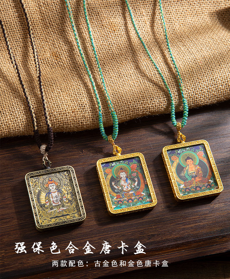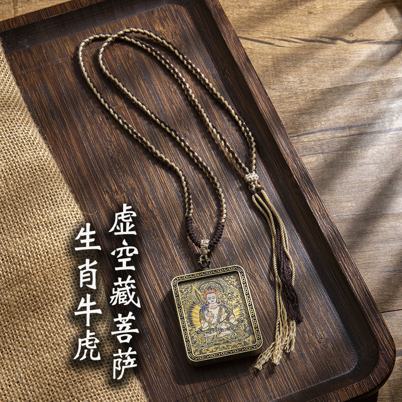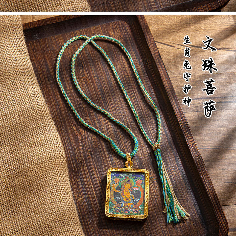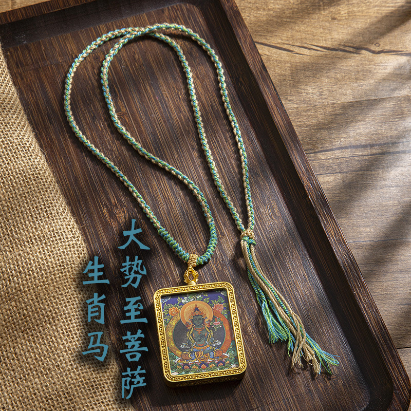 藏式唐卡手绘吊坠十二生肖八大守护神项链画芯嘎乌盒男女藏传画盒