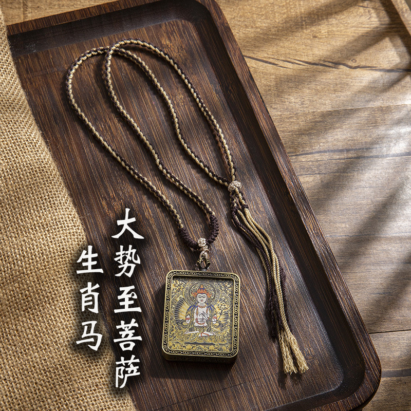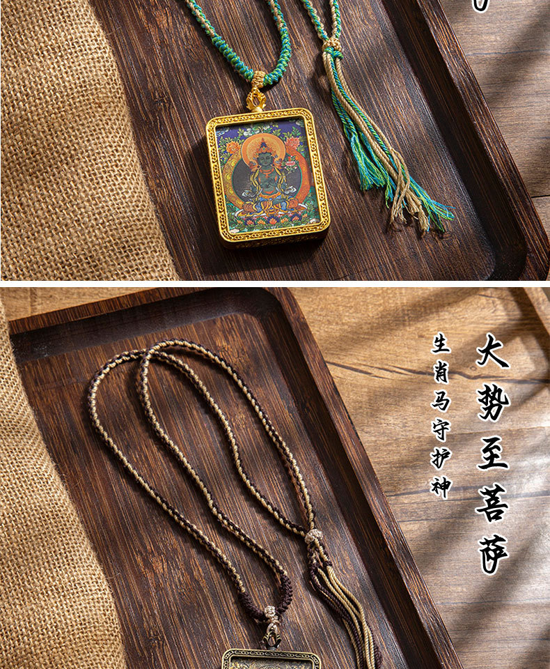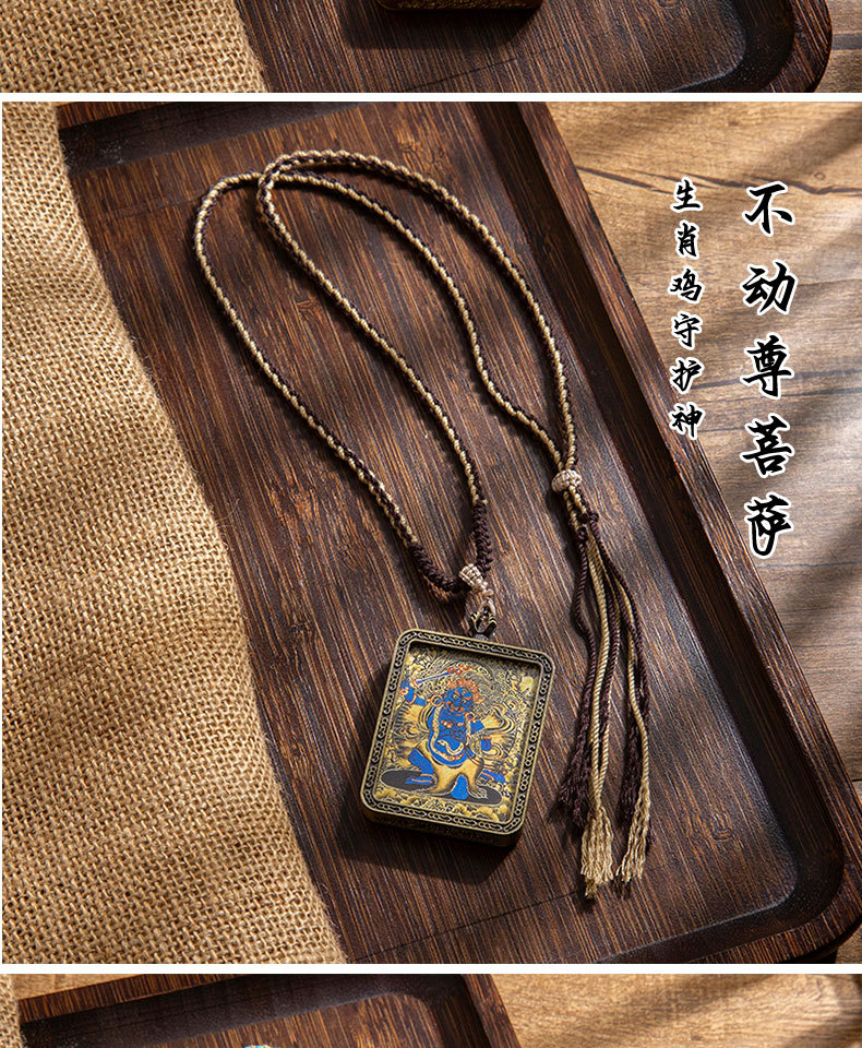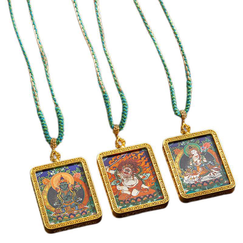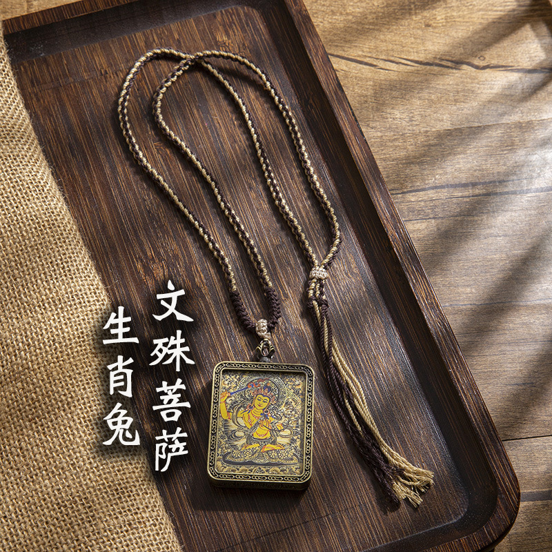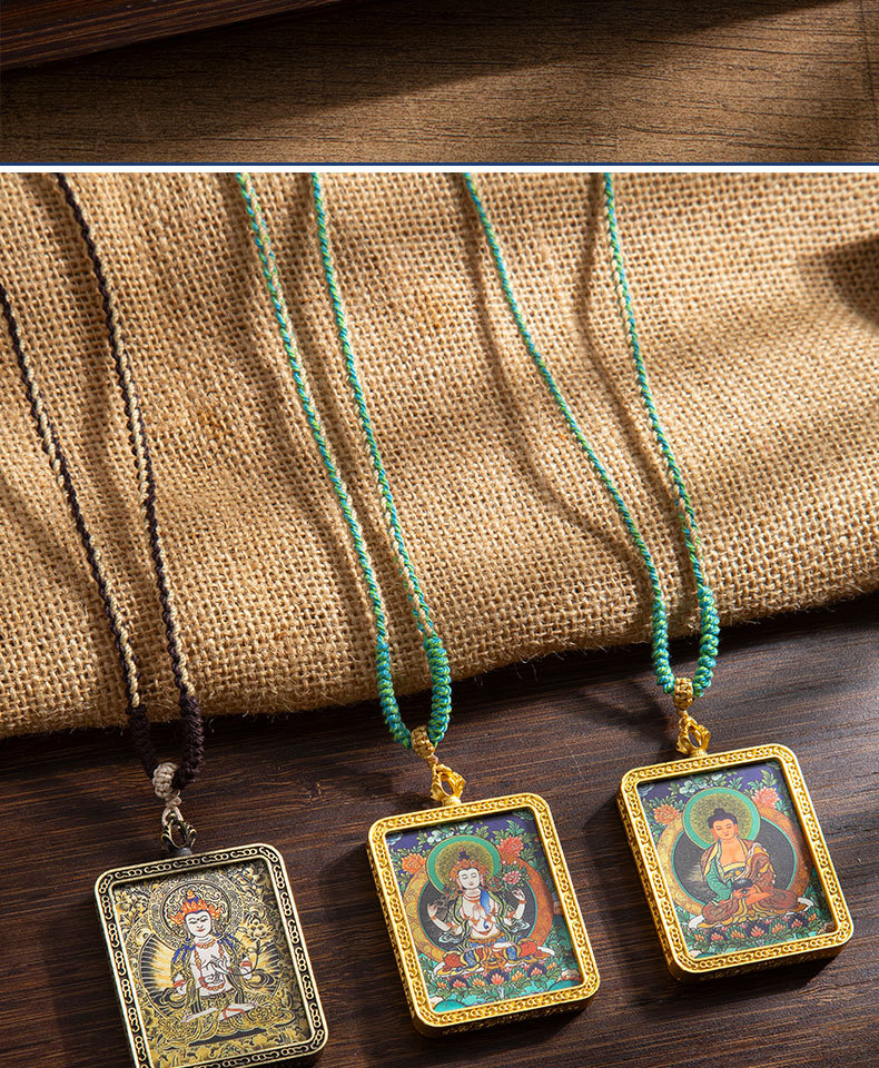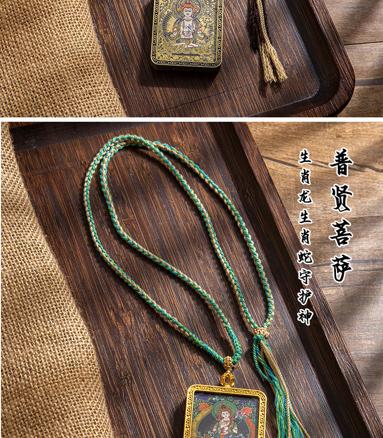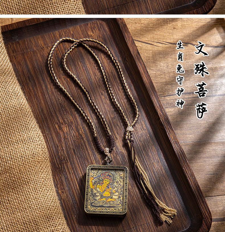 藏式唐卡手绘吊坠十二生肖八大守护神项链画芯嘎乌盒男女藏传画盒