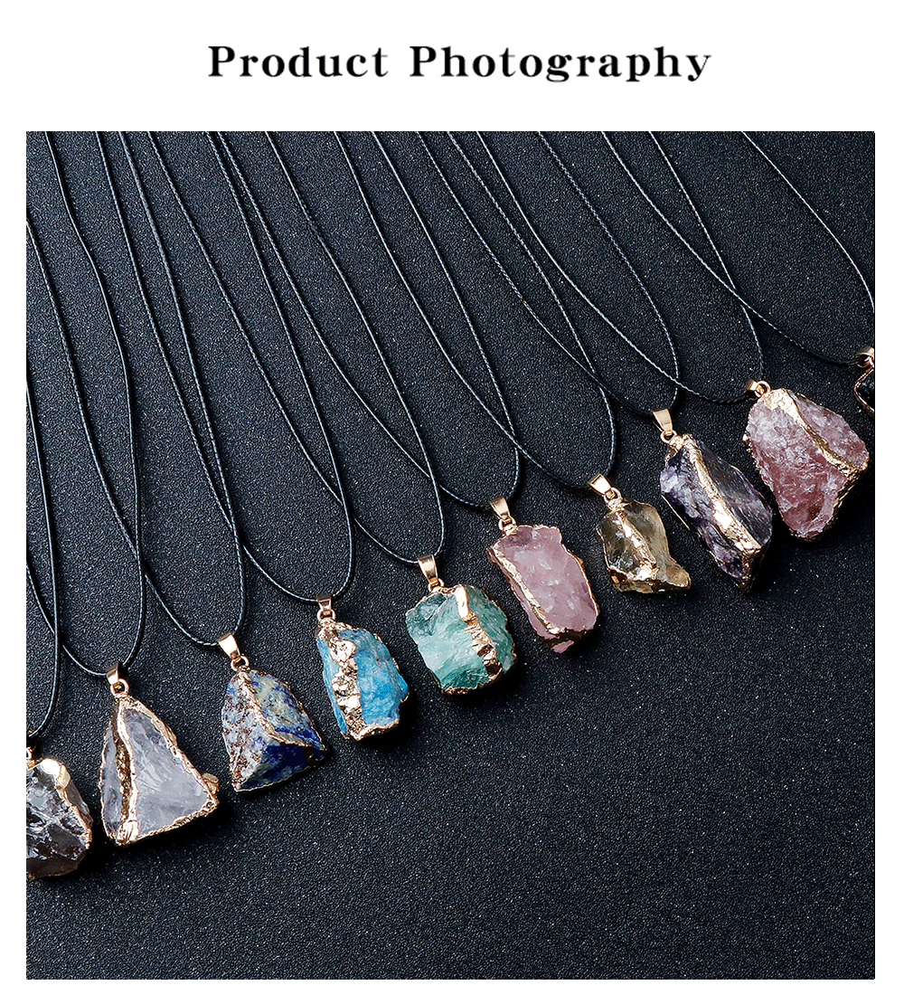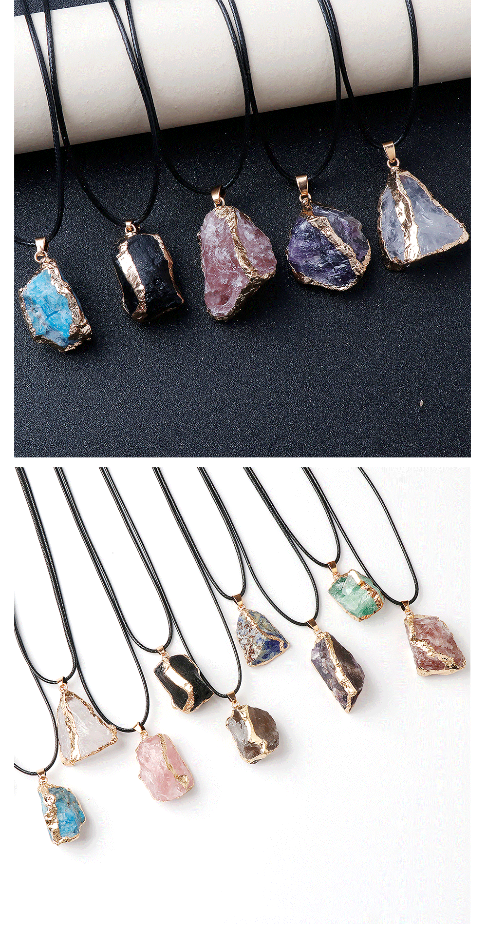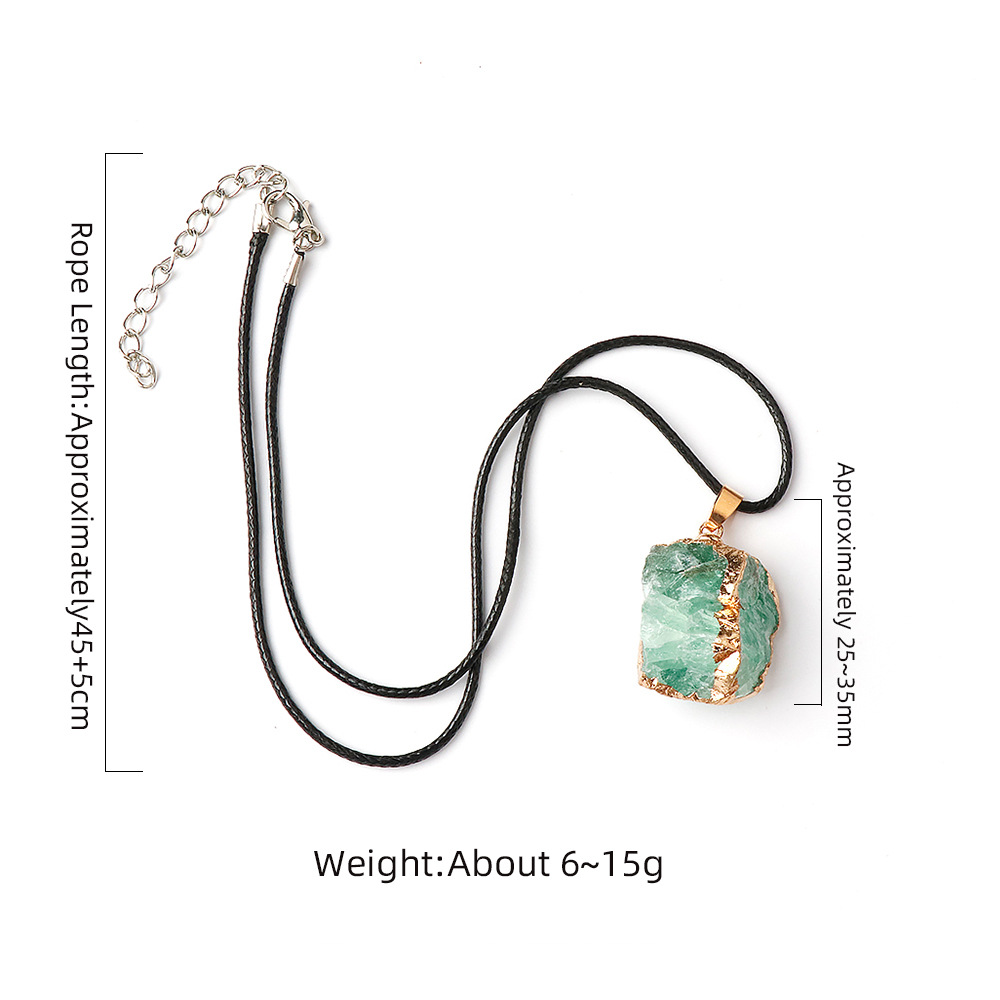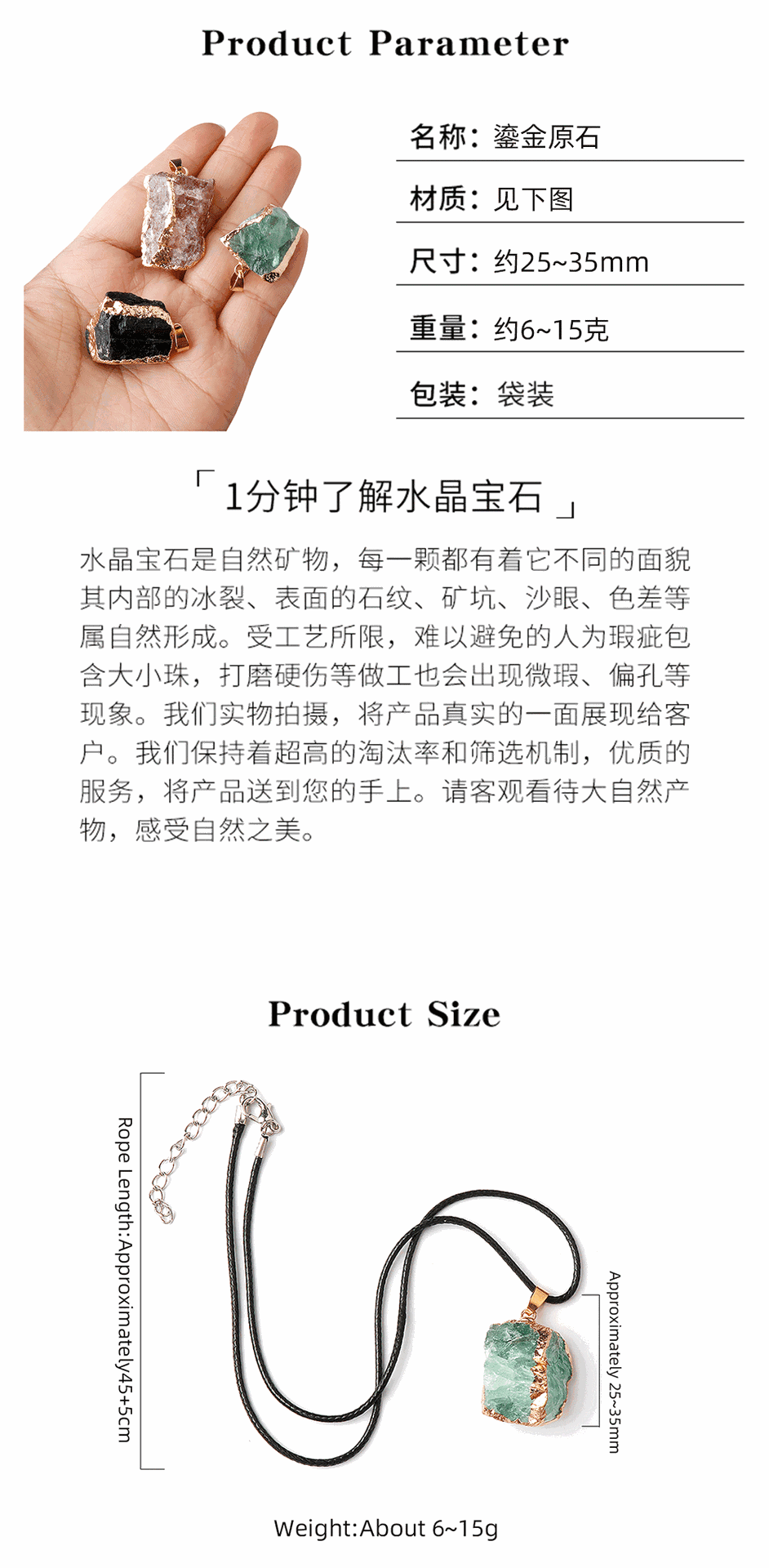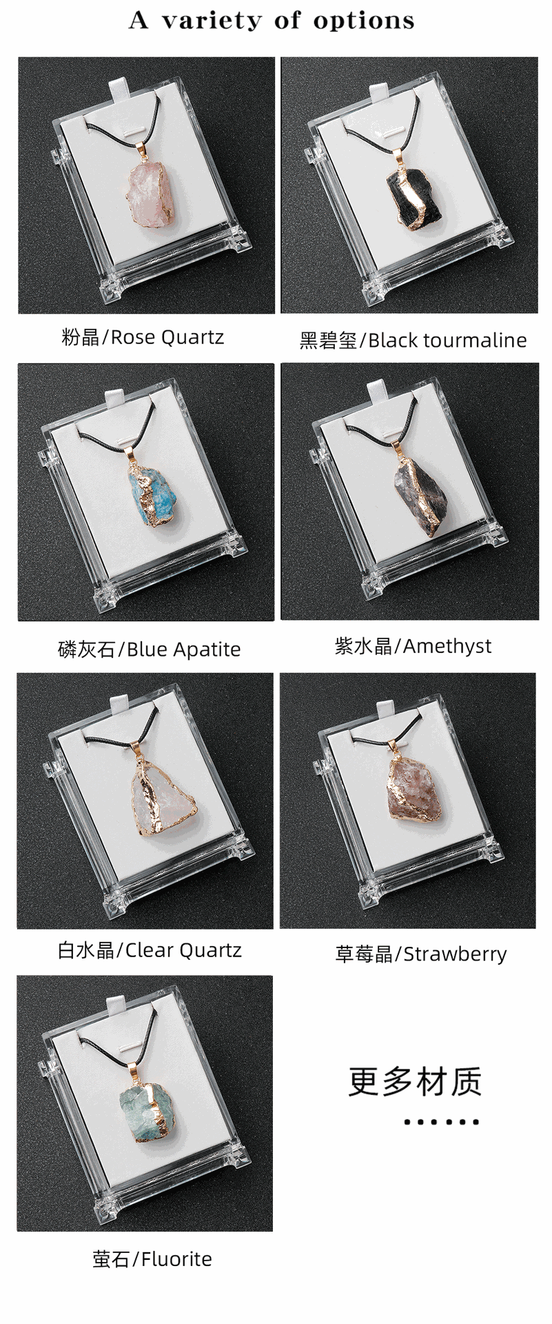 天然水晶鎏金边吊坠 原石粉紫白水晶石不规则项链毛衣链跨境货源
