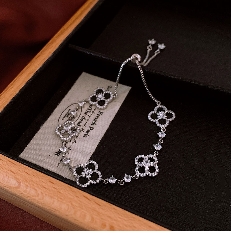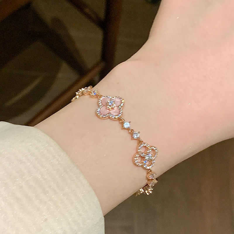 「绮梦甜樱」中古粉色贝母幸运草手链微镶锆石镂空高级感轻奢手饰