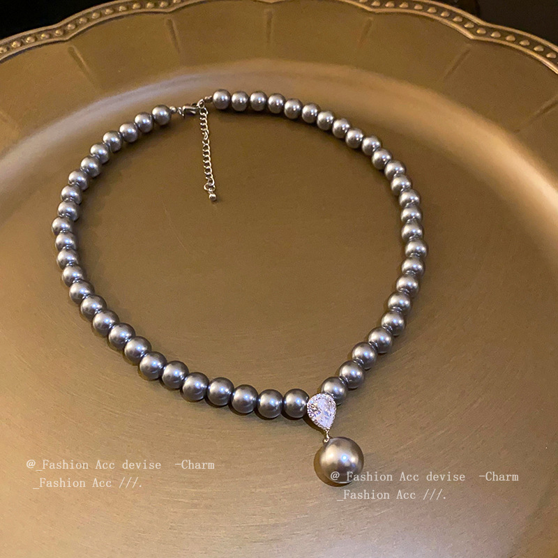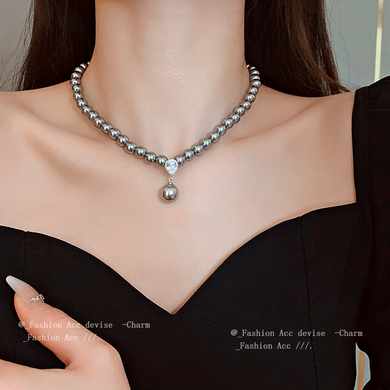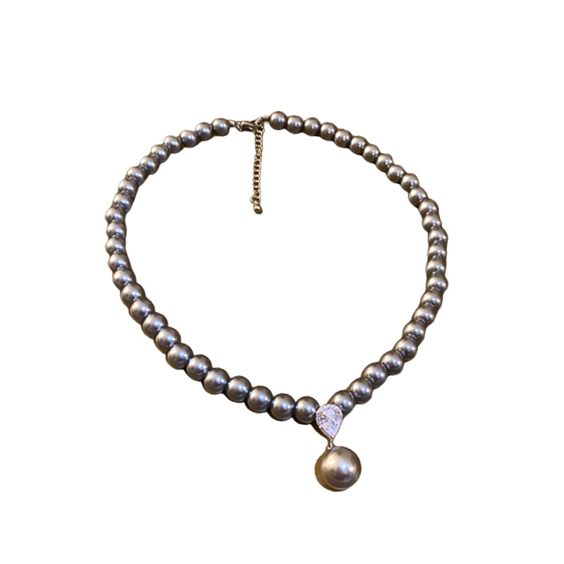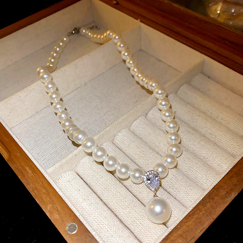 法式百搭珍珠锆石水滴项链复古轻奢高级感毛衣链小众气质饰品批发