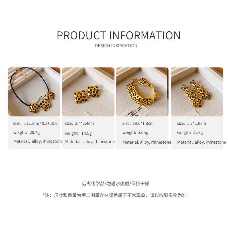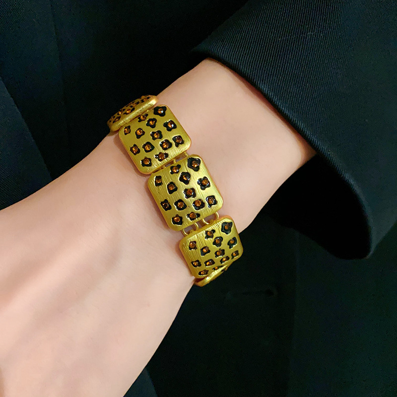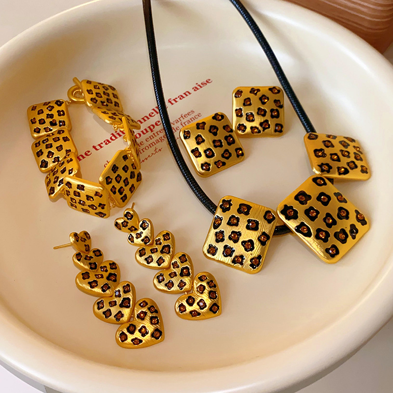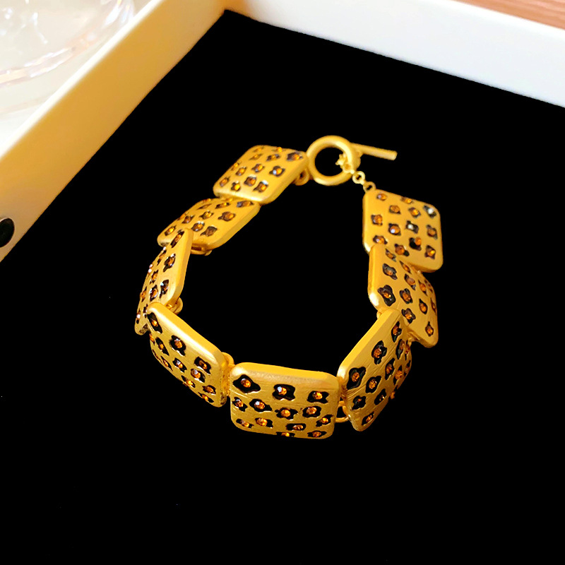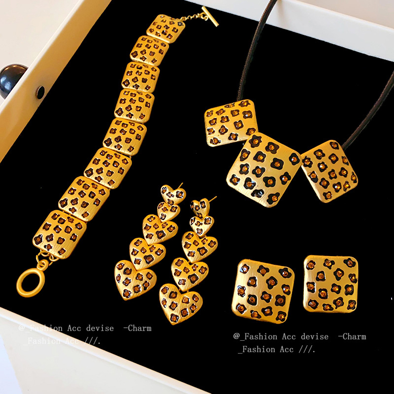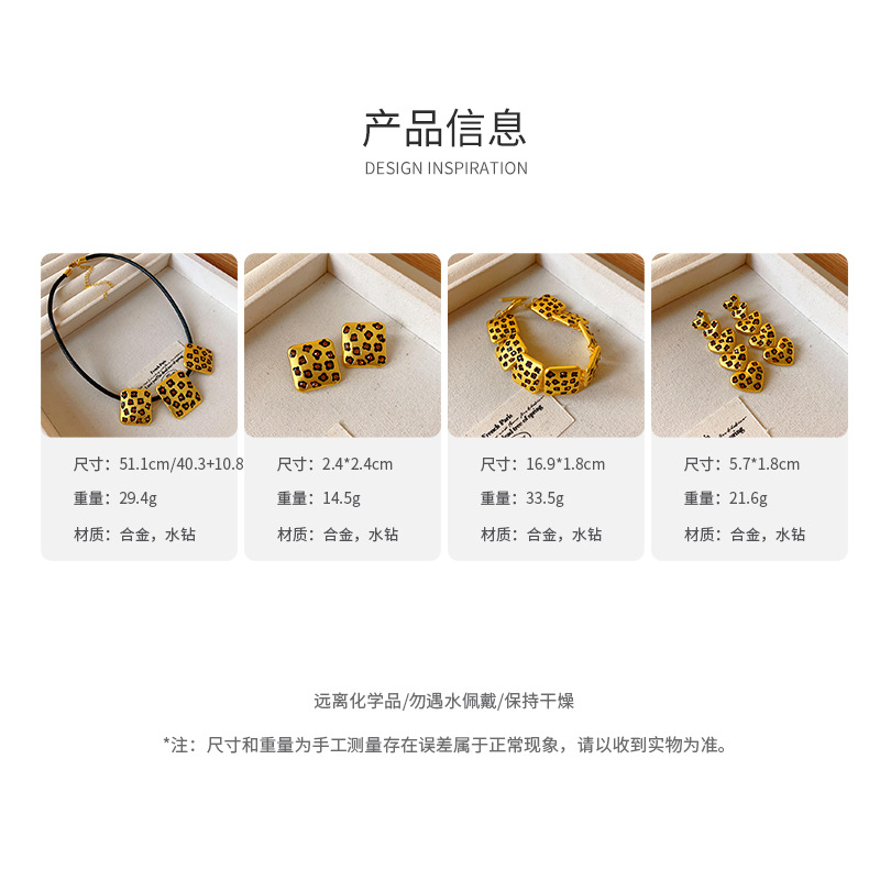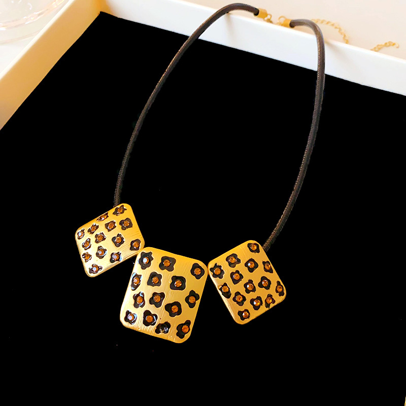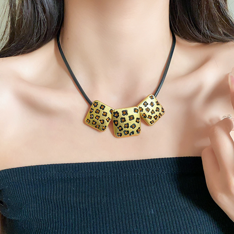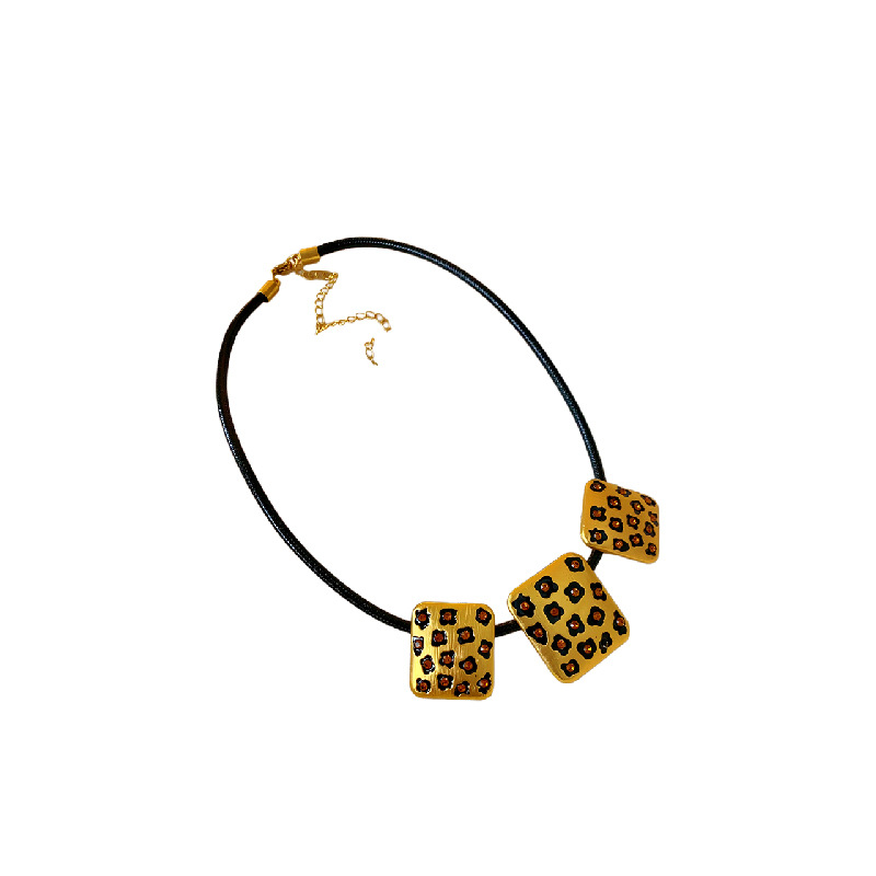 中古vintage饰品方块豹纹镶钻项链复古高级感时尚新款项饰女批发