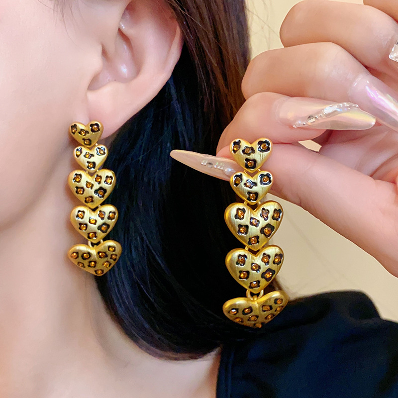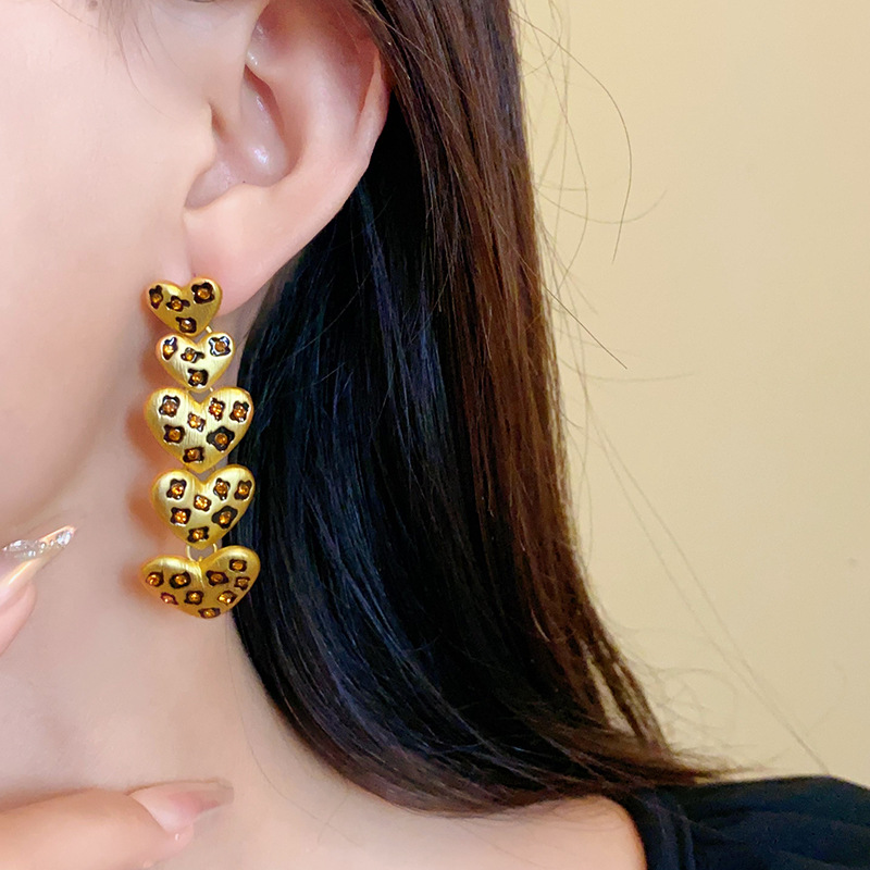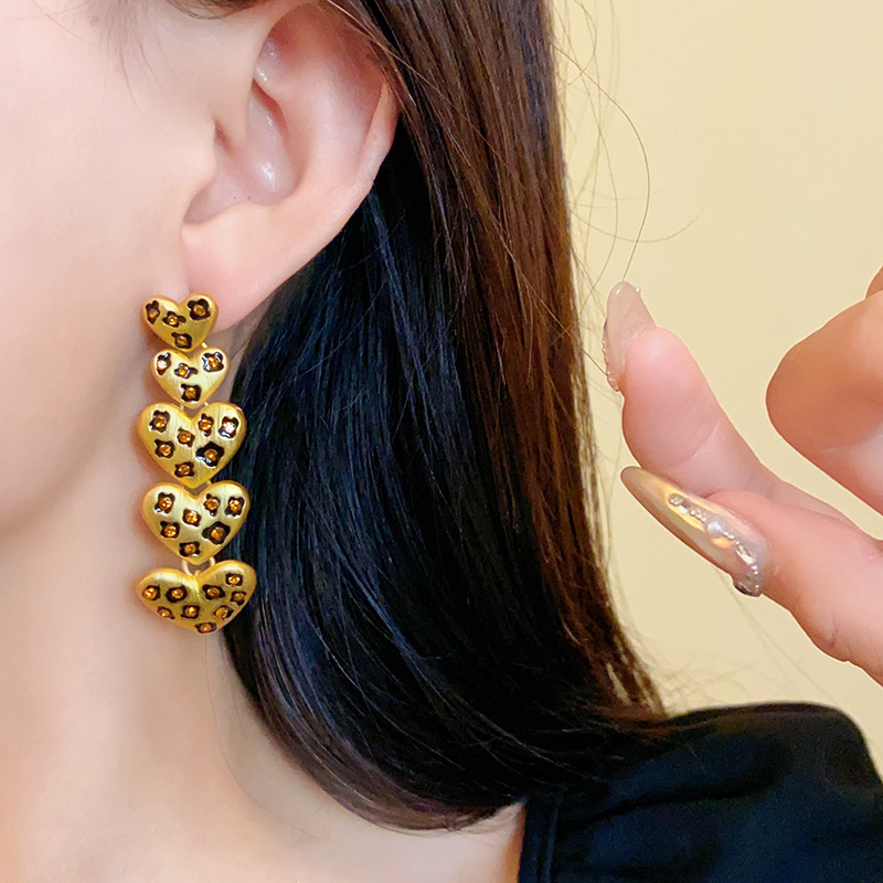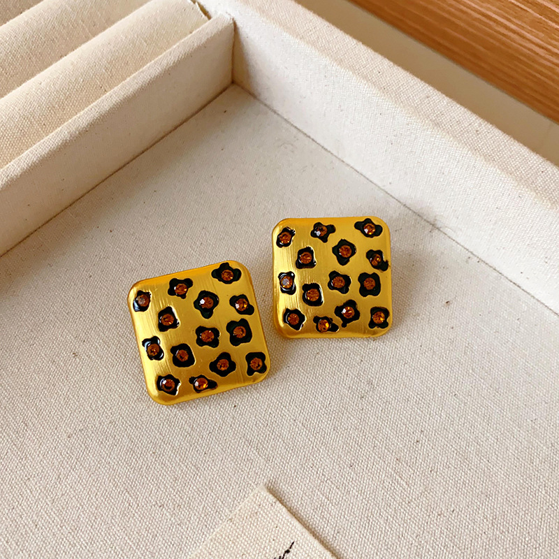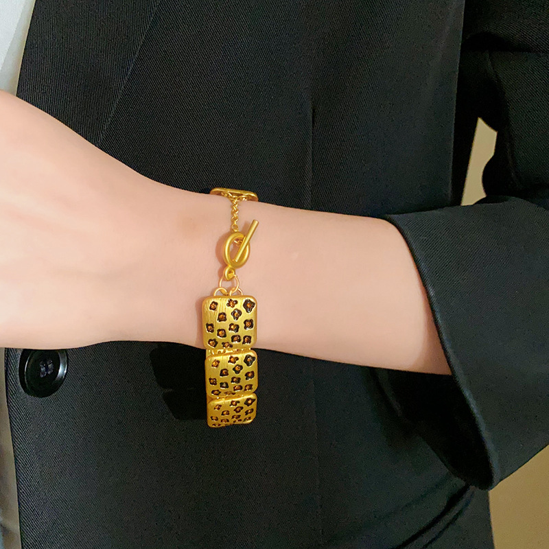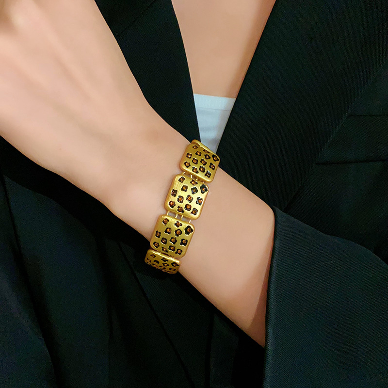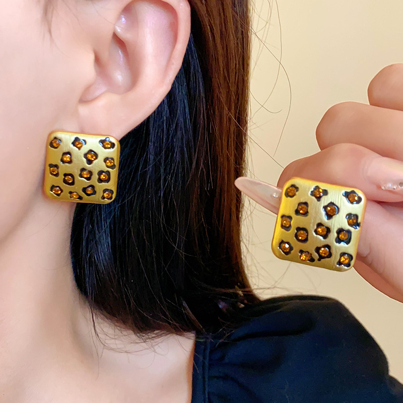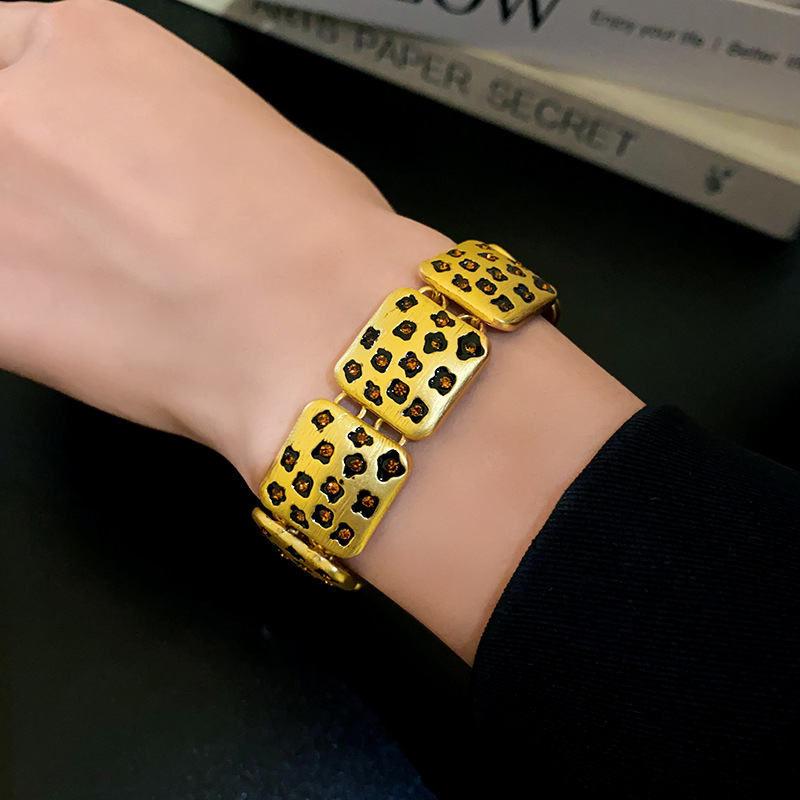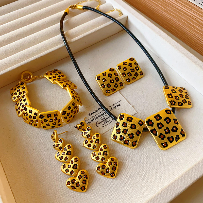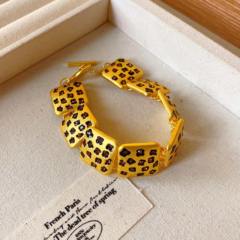 中古vintage饰品方块豹纹镶钻项链复古高级感时尚新款项饰女批发
