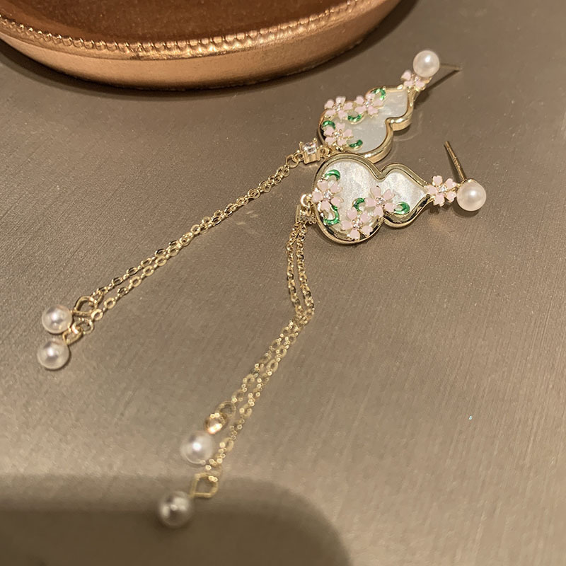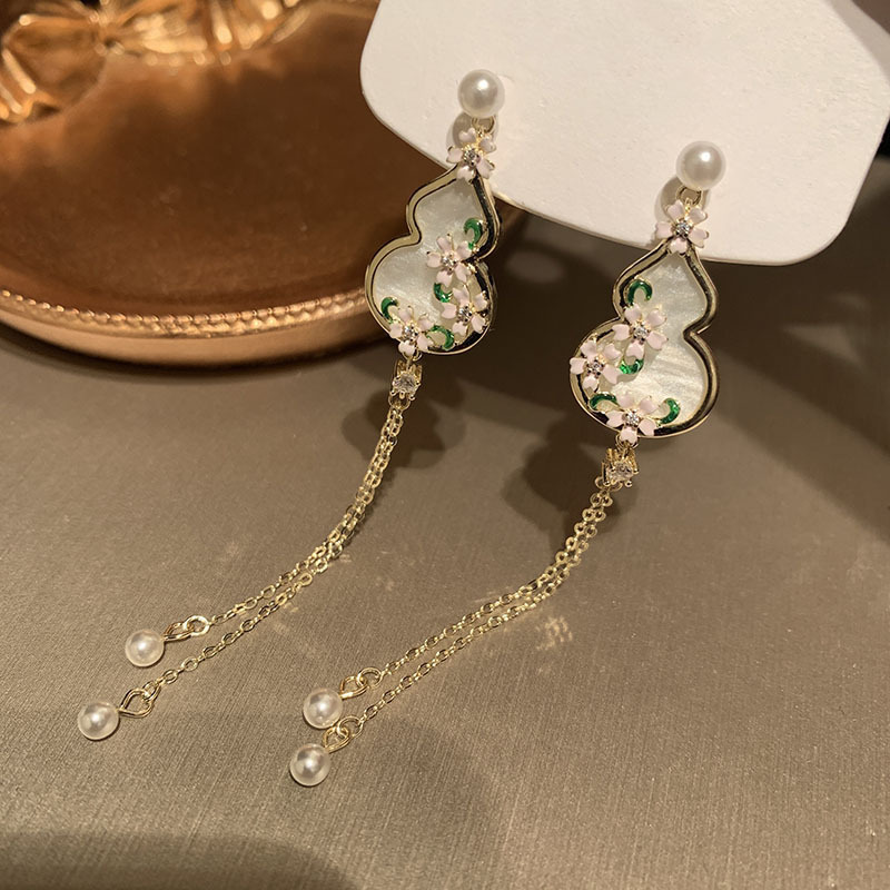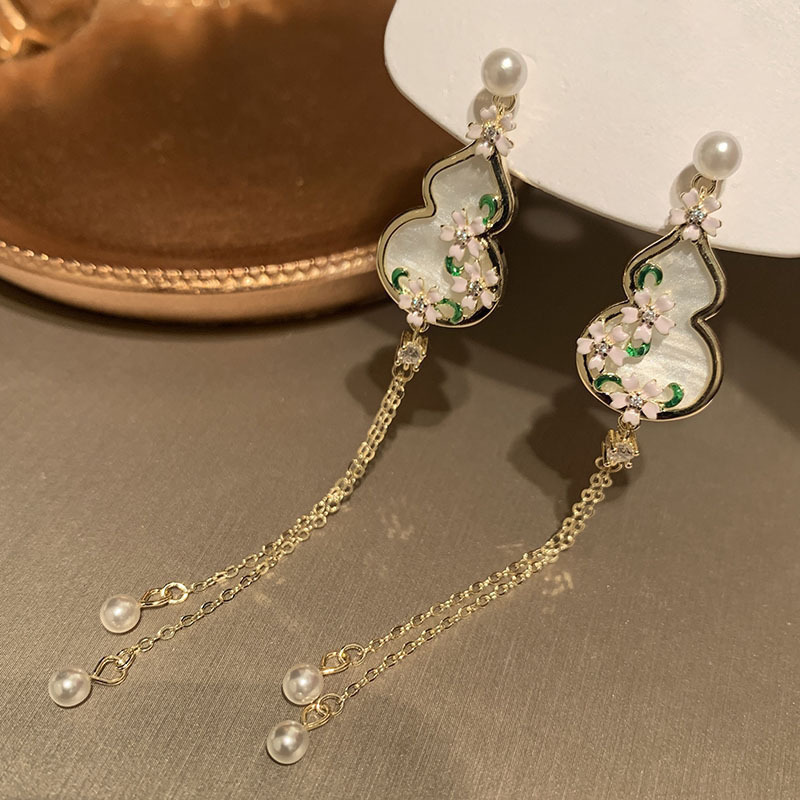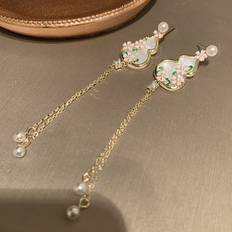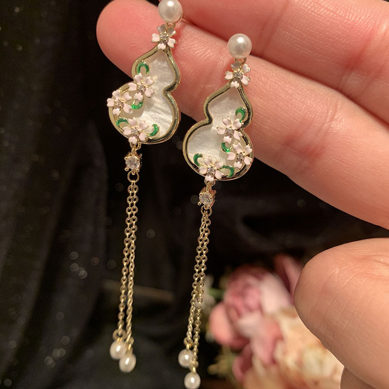 新中式银针花朵葫芦珍珠流苏耳环氛围感流苏耳坠轻奢高级感耳饰女