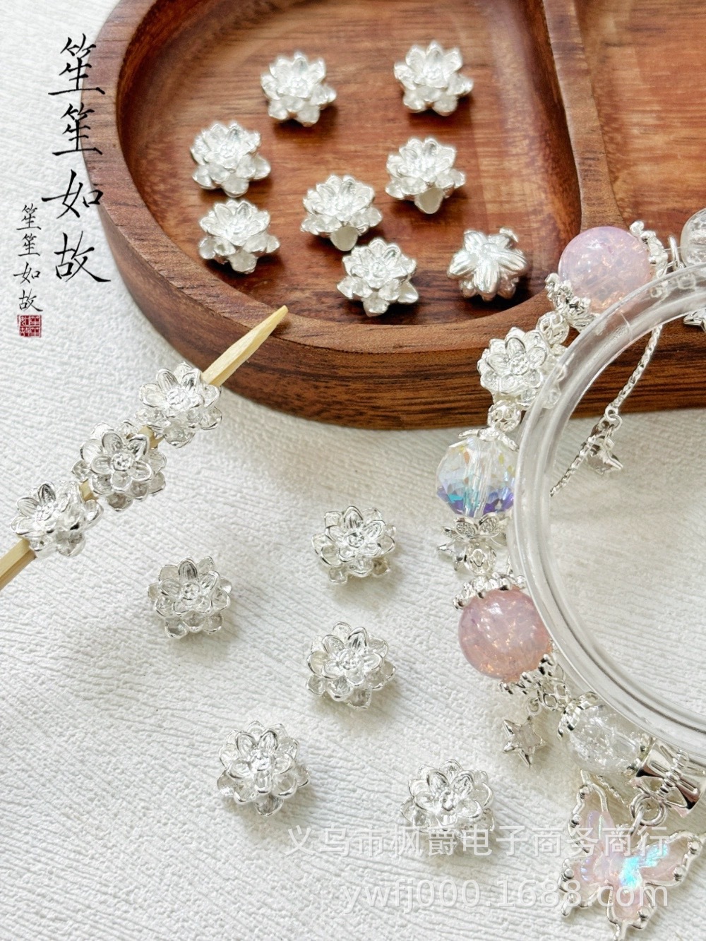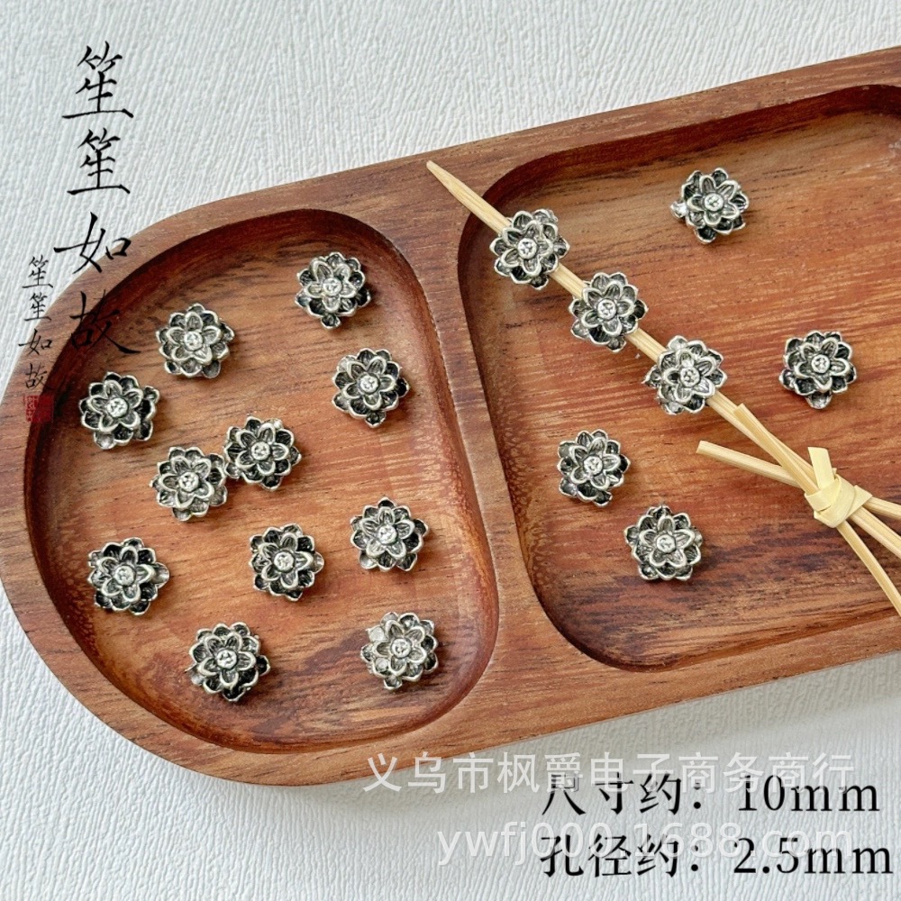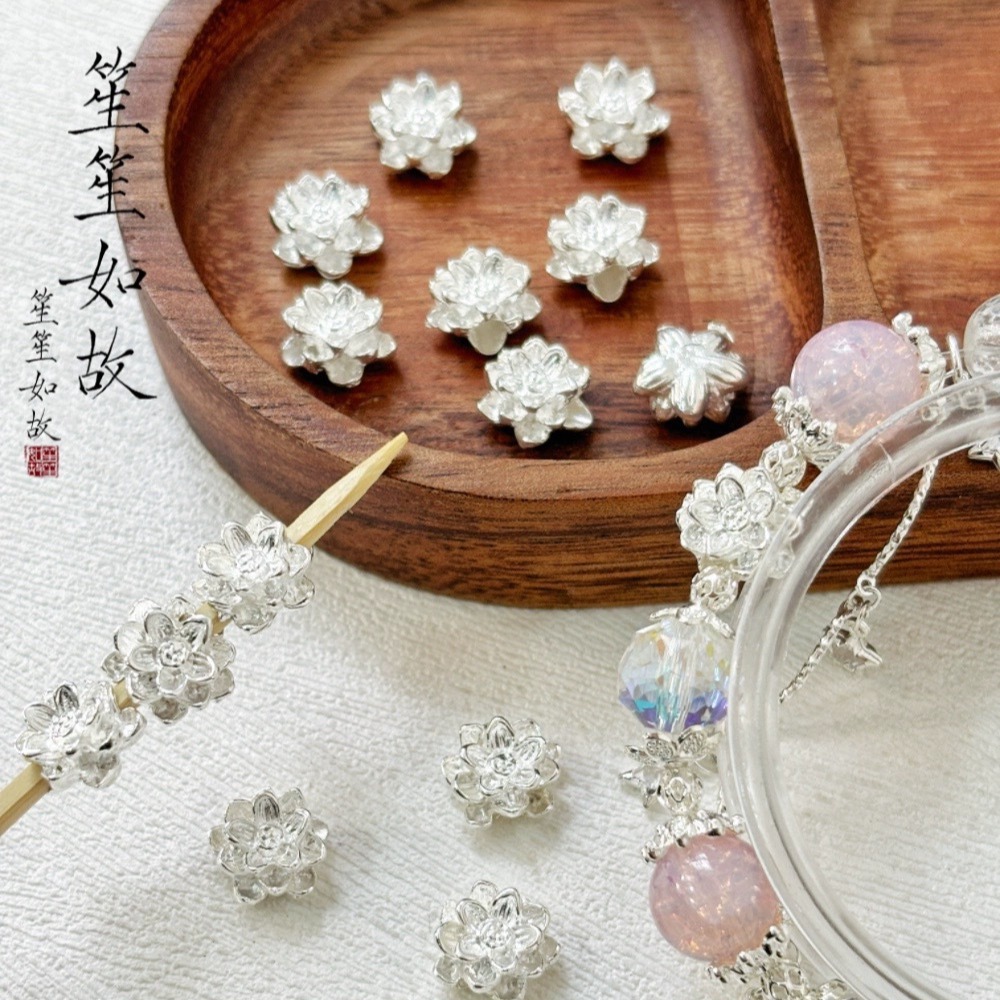 【银莲】新中式合金莲花串珠diy手工链项链饰品散珠子材料配件