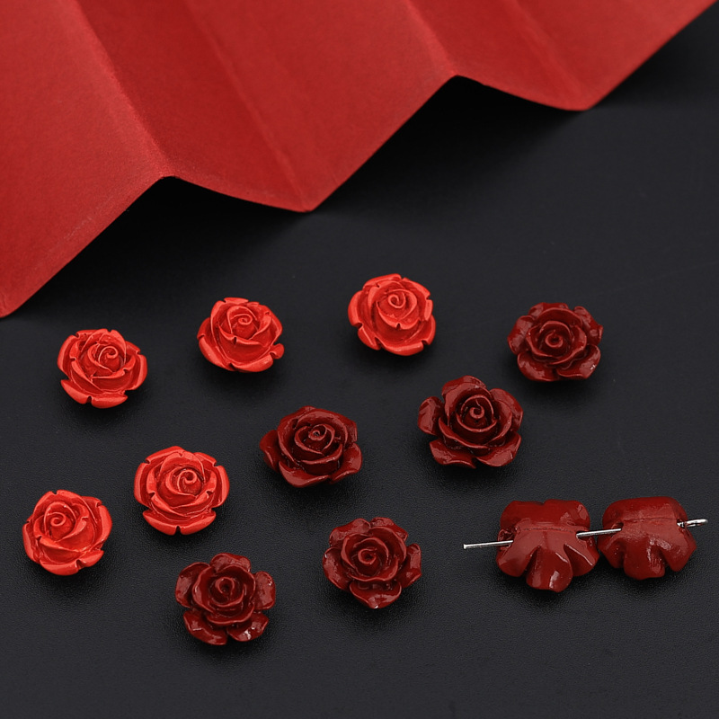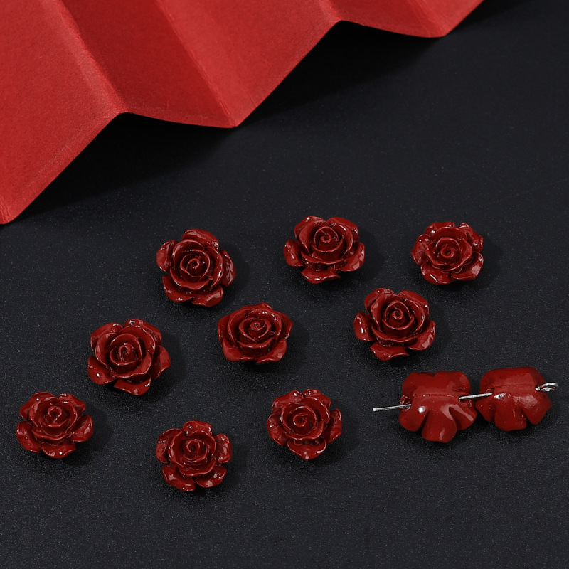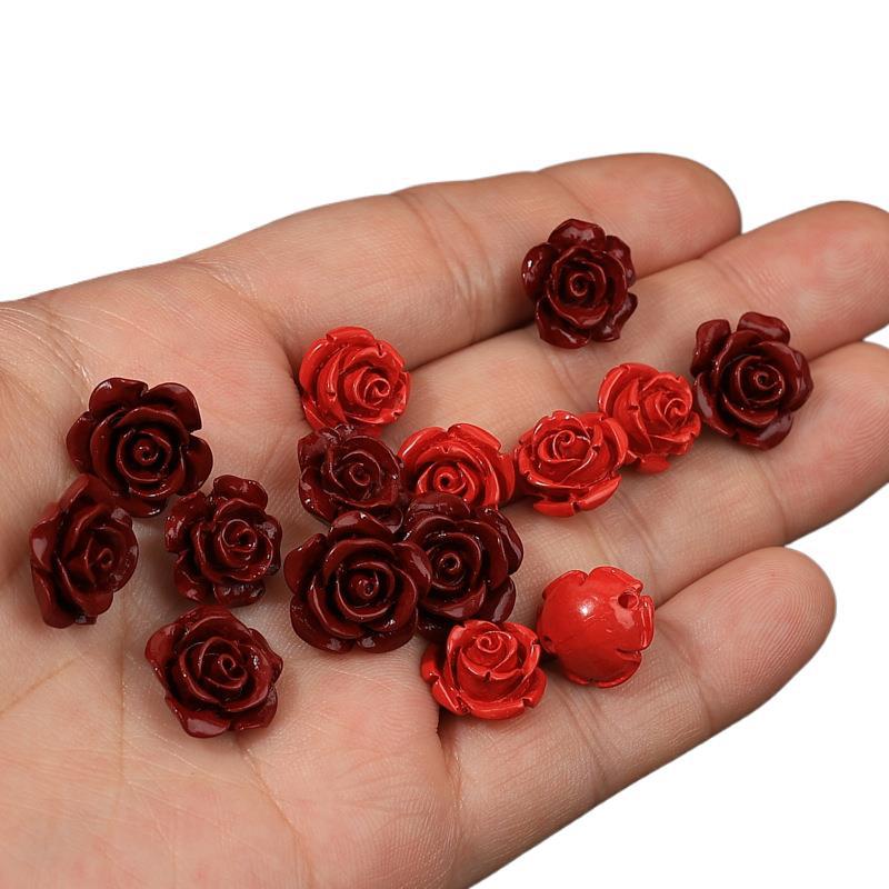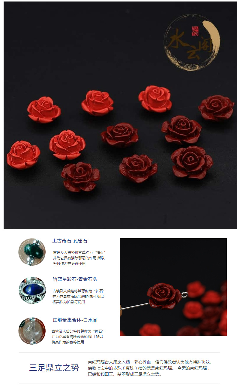 水云阁珠宝 天然朱砂紫金砂玫瑰花红砂饰品小配件DIY手链配饰批发