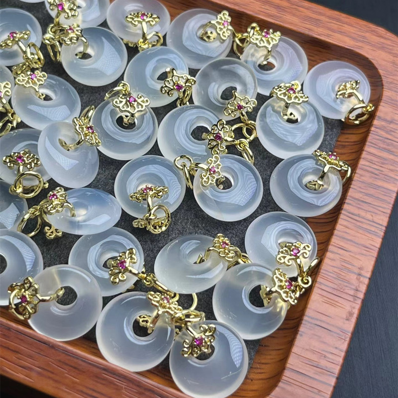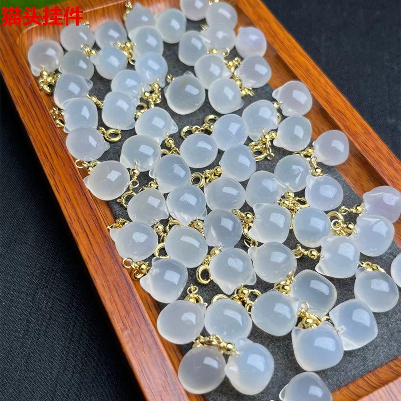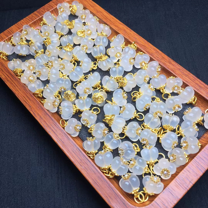 天然白玛瑙貔貅钱袋如意锁配件DIY原创手链项链饰品玛瑙挂件批发