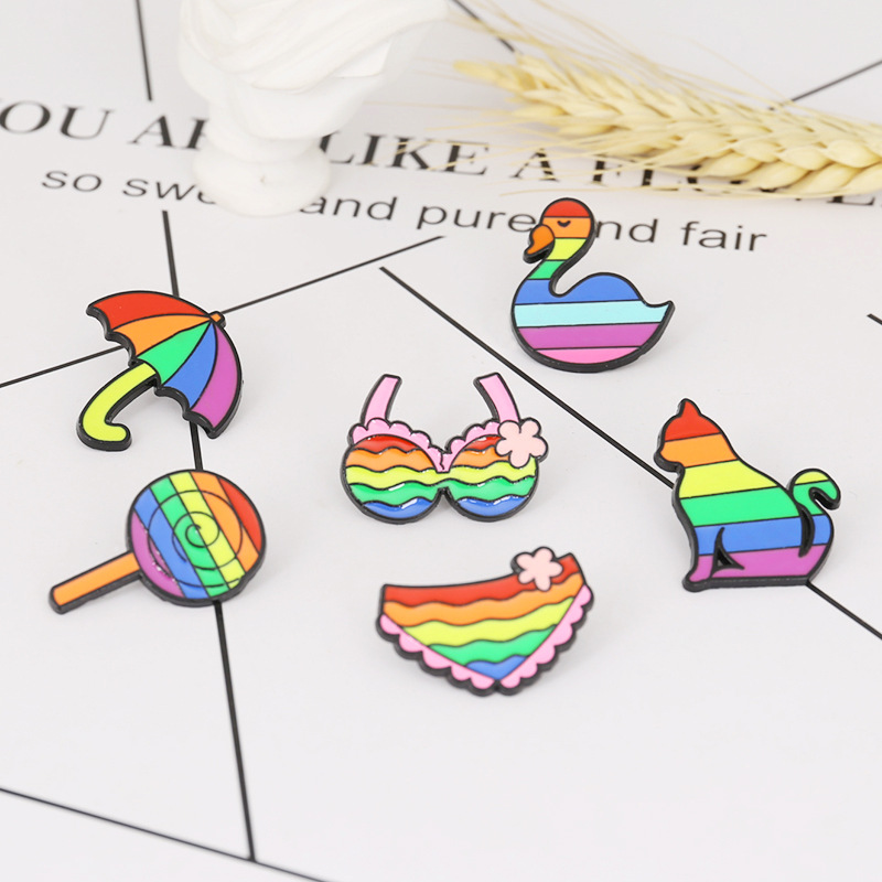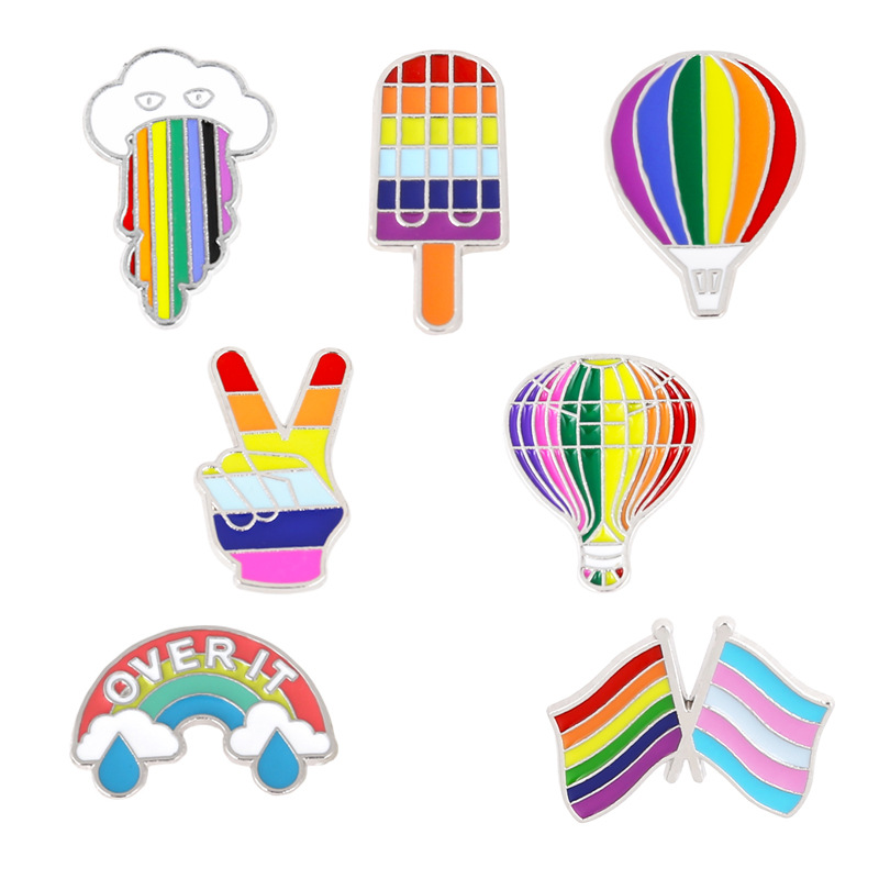 爱心彩虹卡通七彩旗帜胸针货源 原创棒棒糖月亮胸章配饰