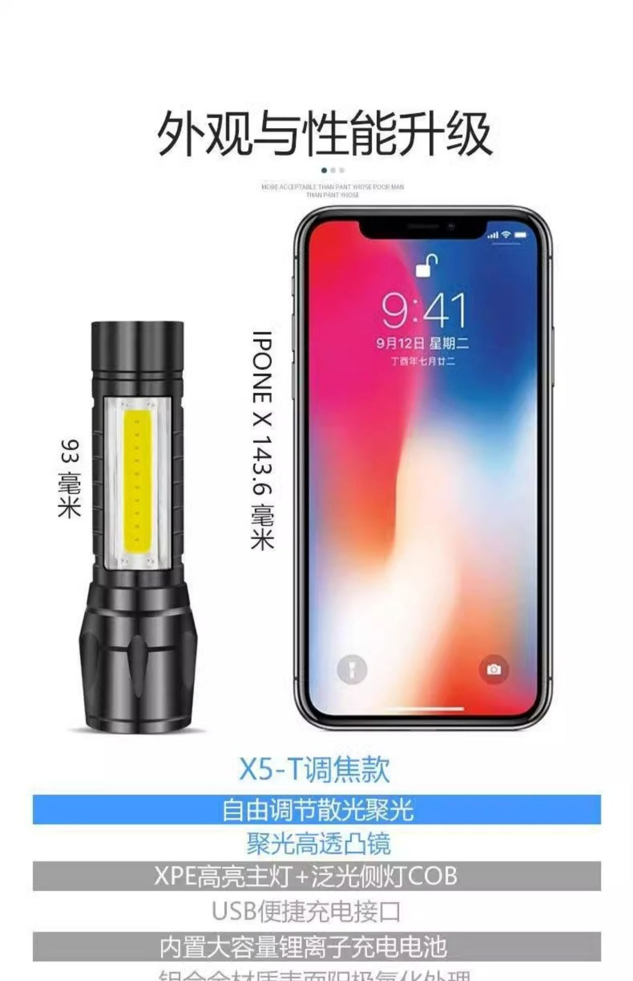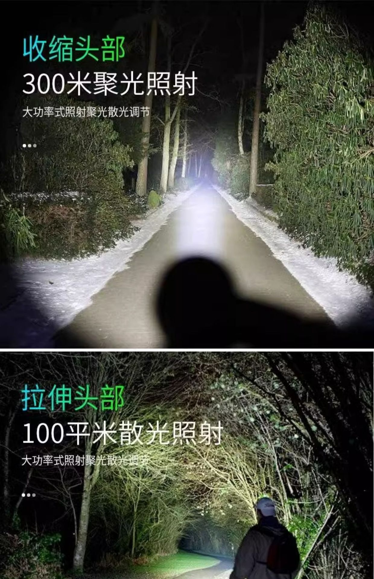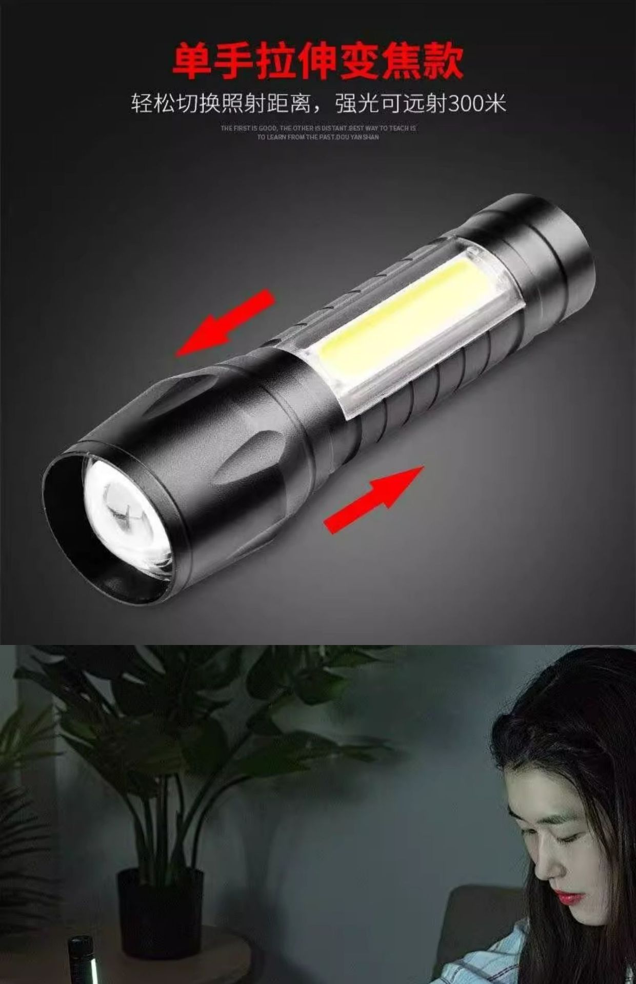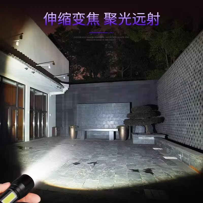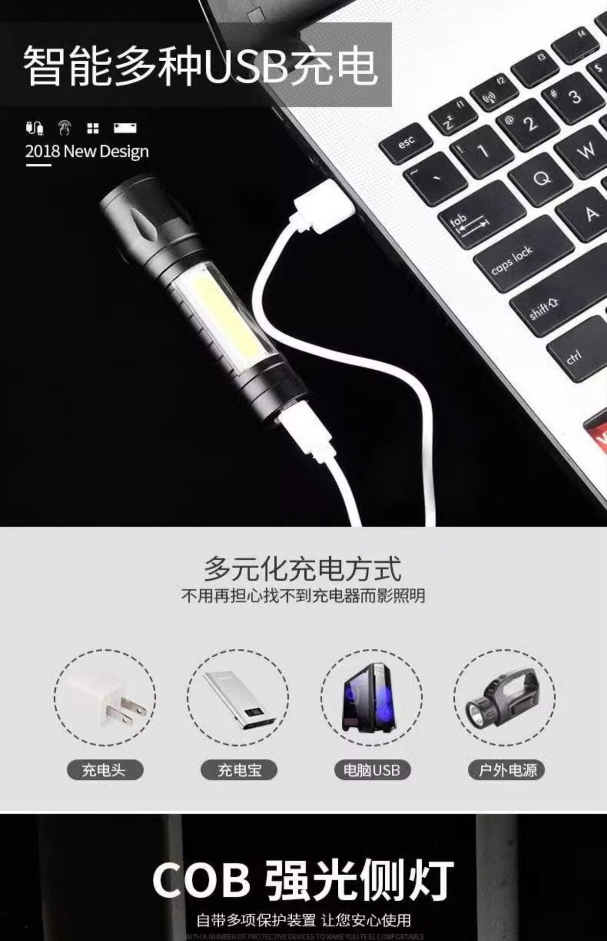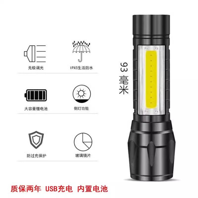 手电筒强光可充电USB户外超亮远射家用应急灯特种兵防水迷你学生