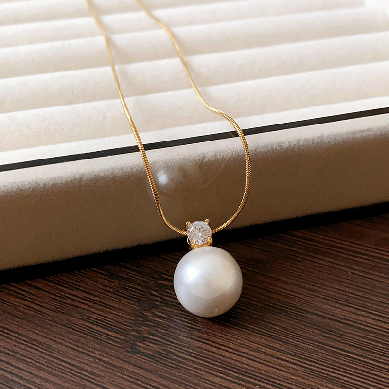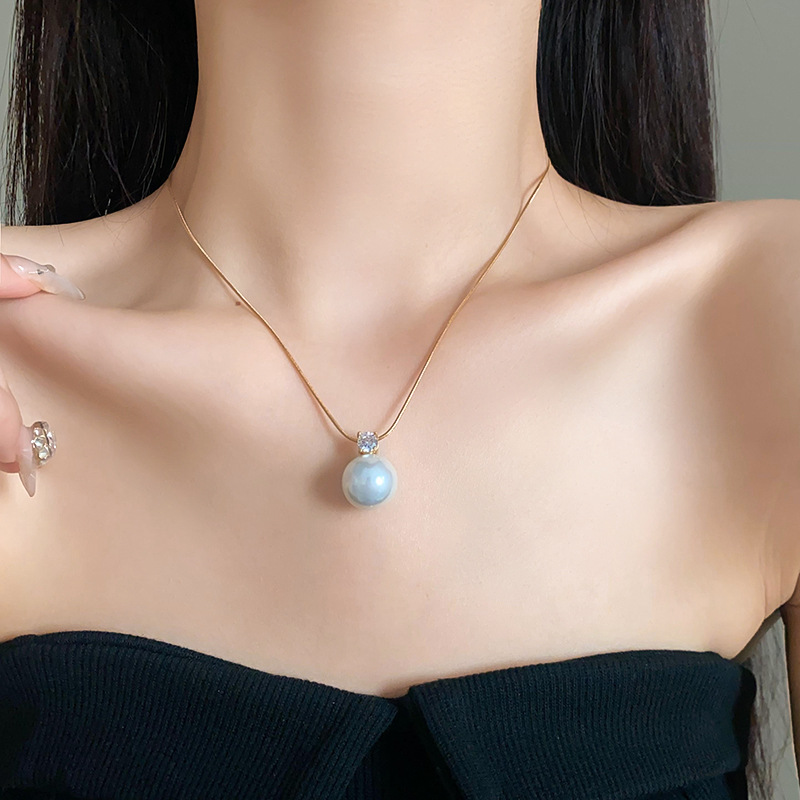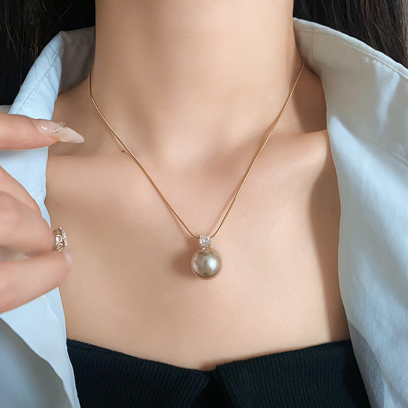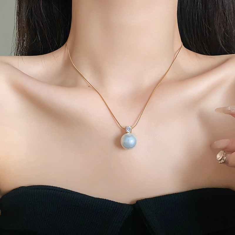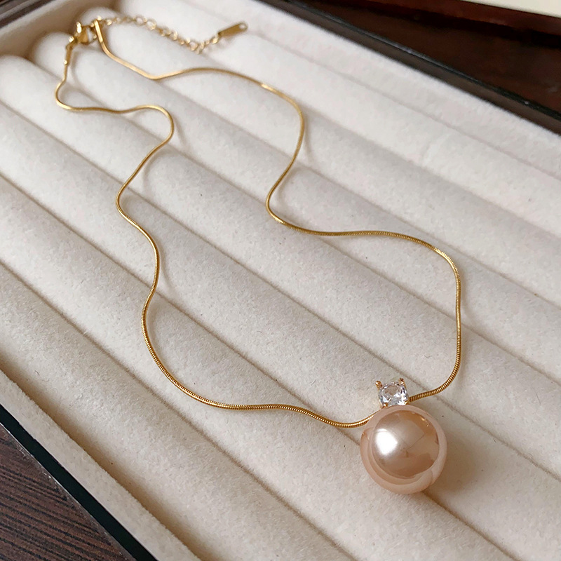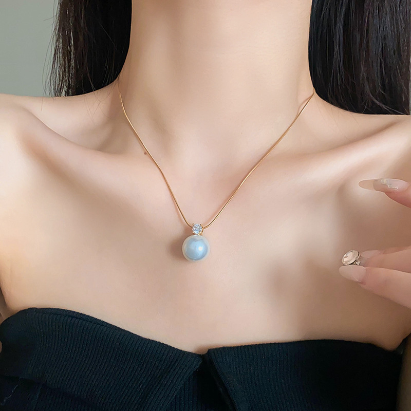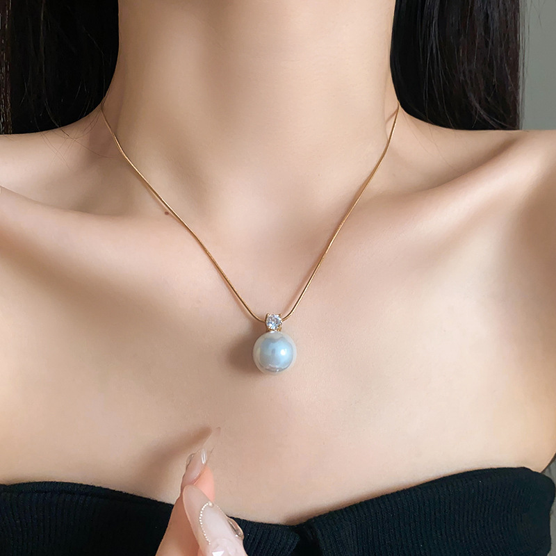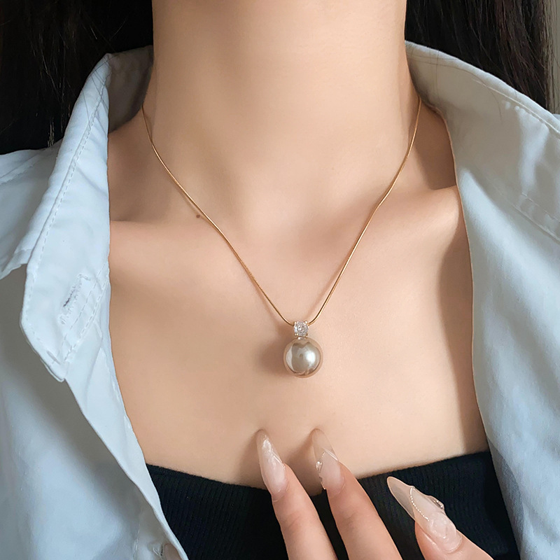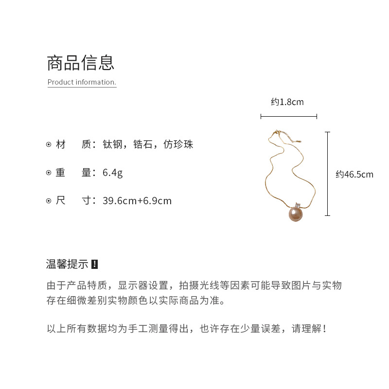 钛钢圆形锆石珍珠项链简约法式吊坠锁骨链高级感不锈钢项饰女批发