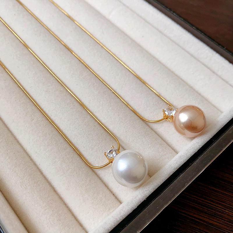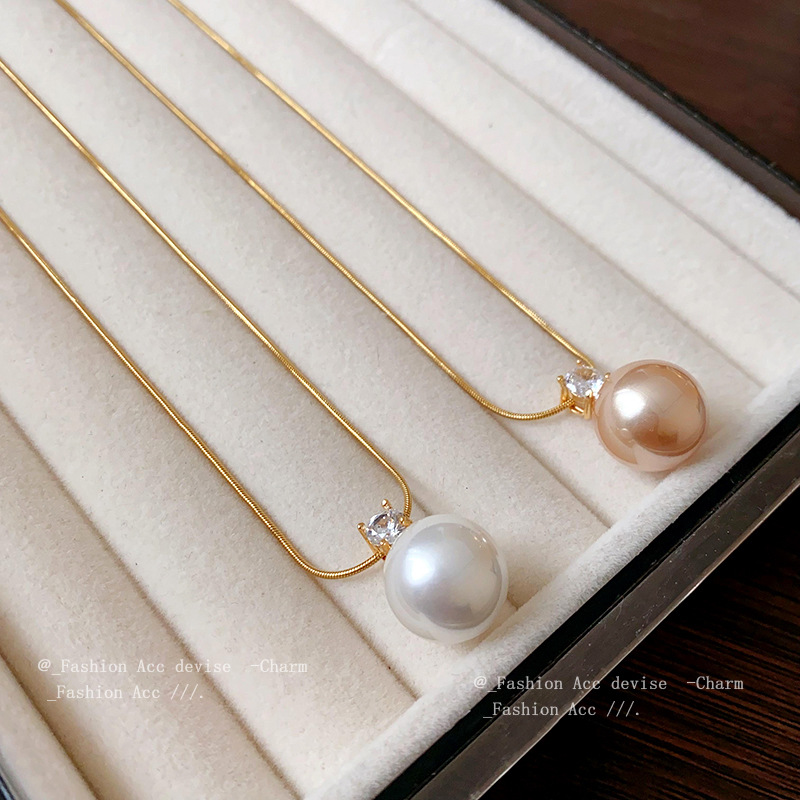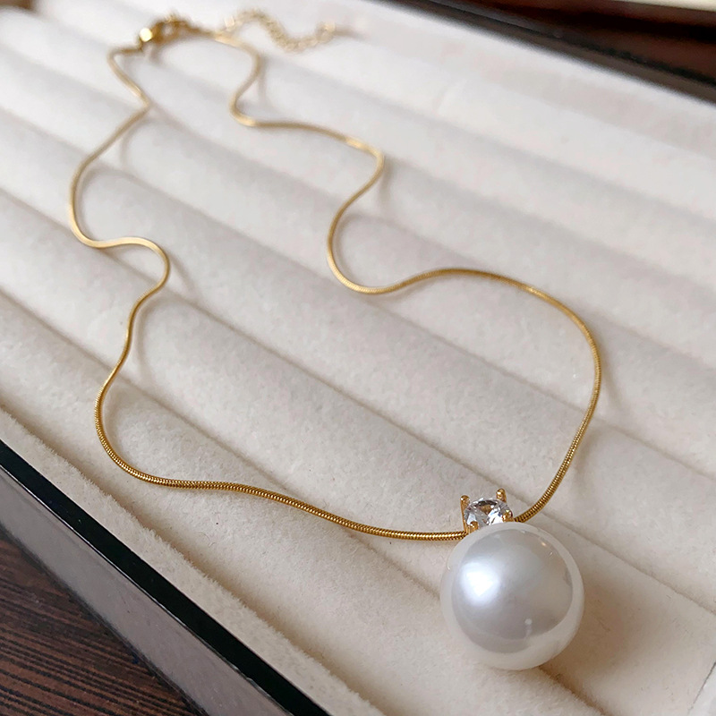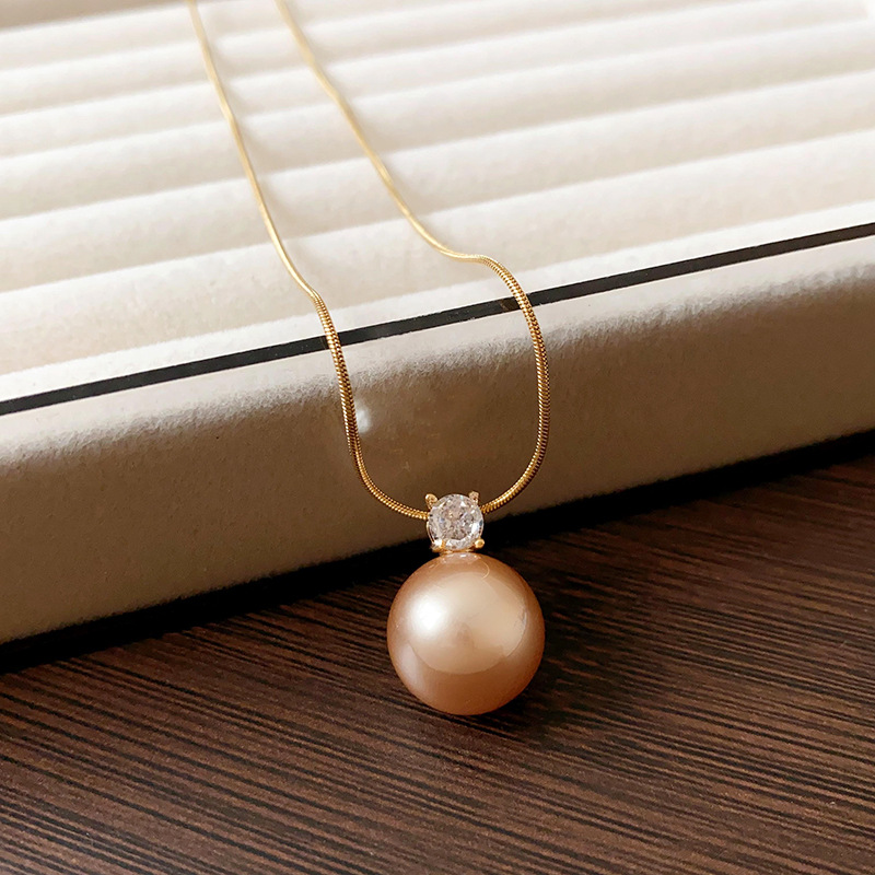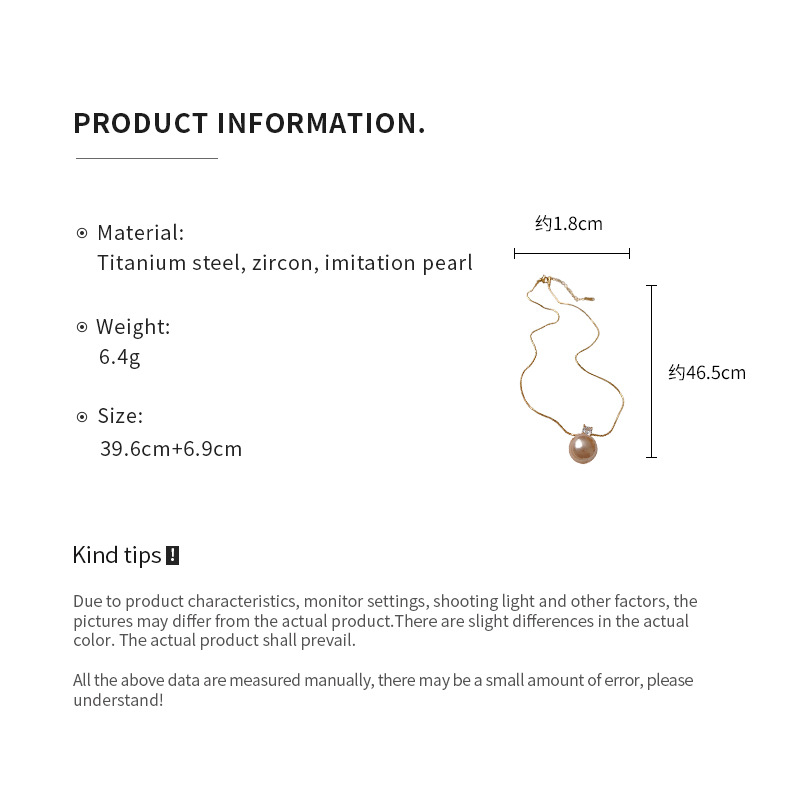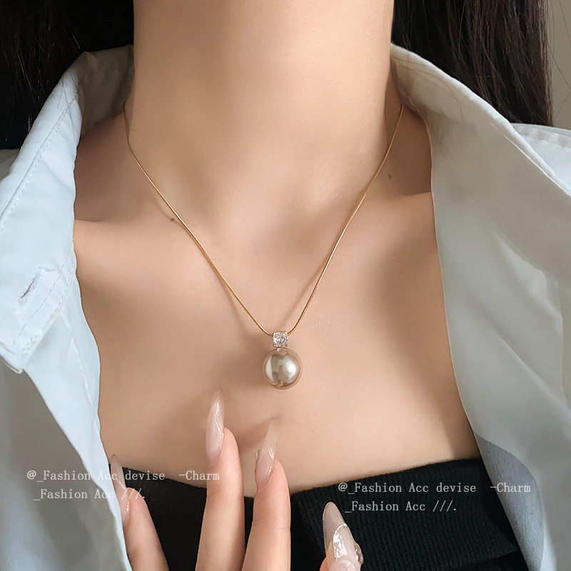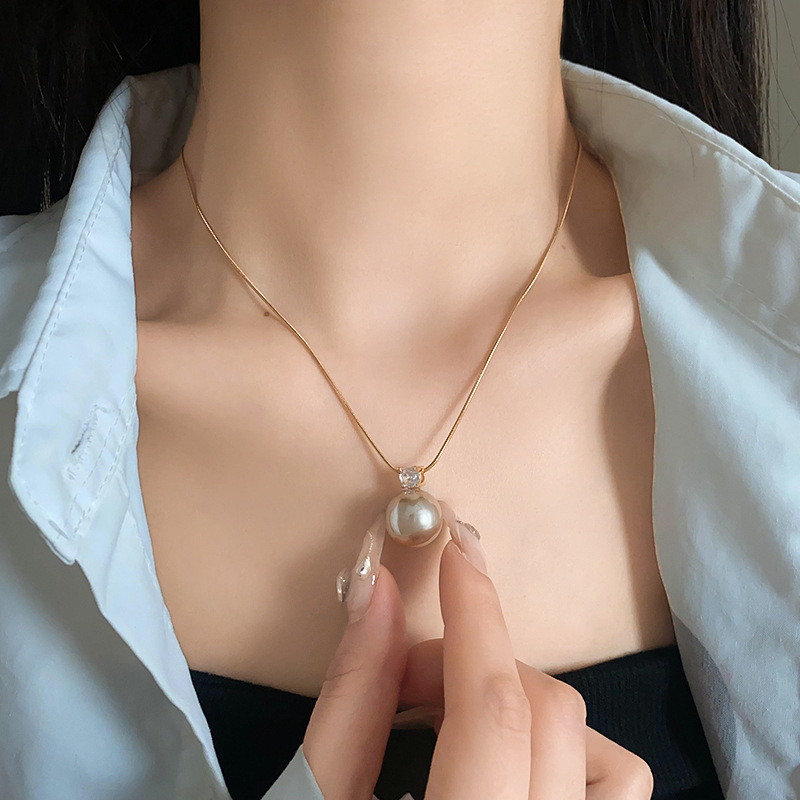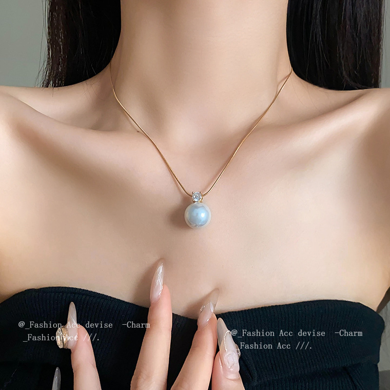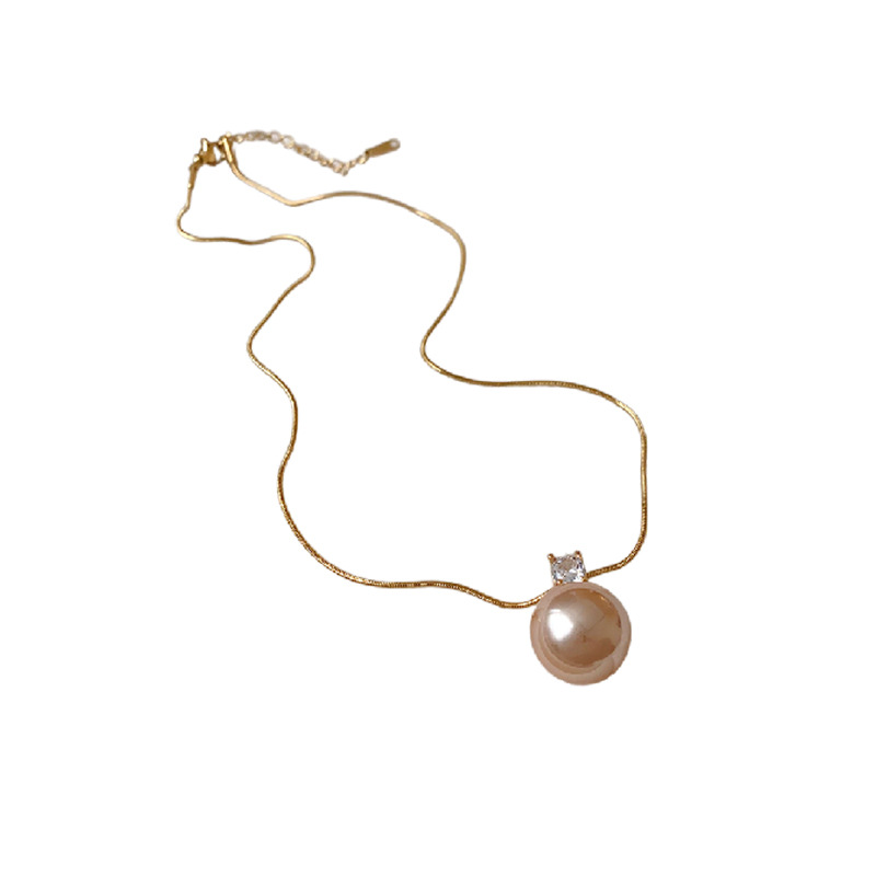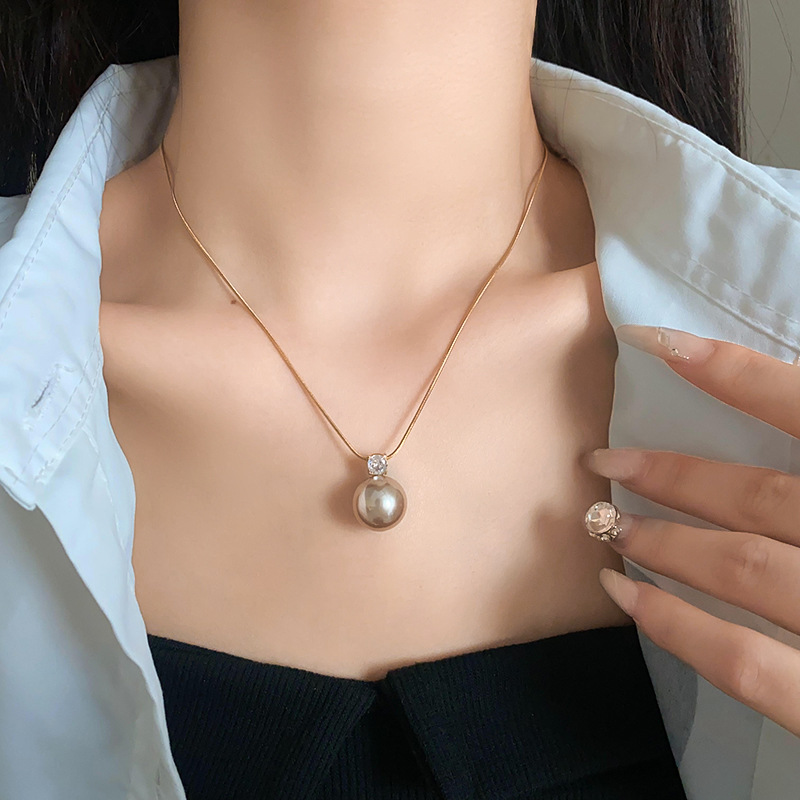 钛钢圆形锆石珍珠项链简约法式吊坠锁骨链高级感不锈钢项饰女批发