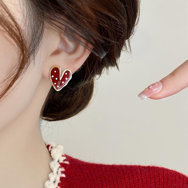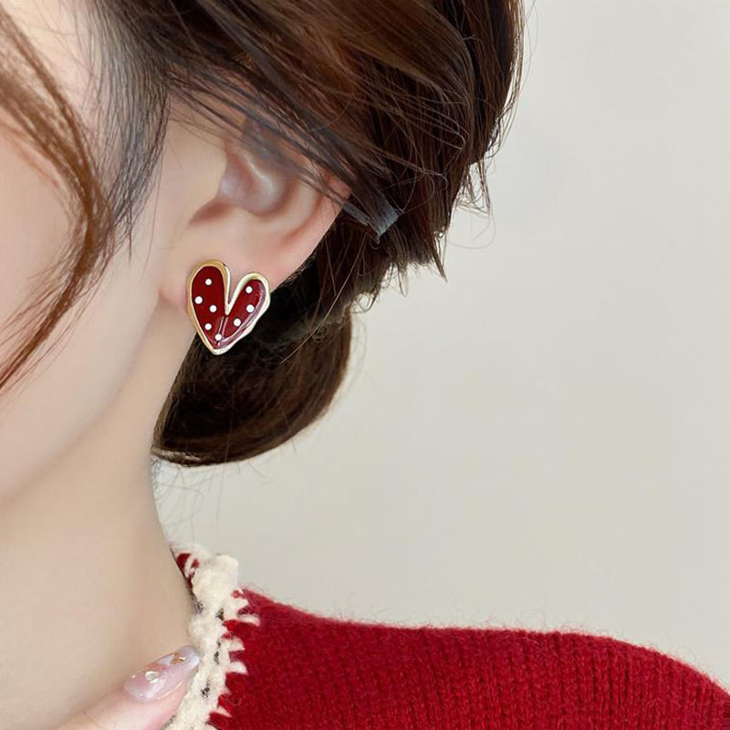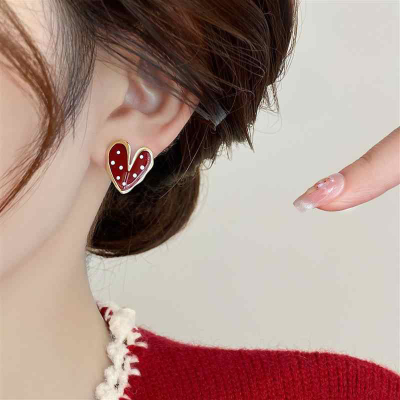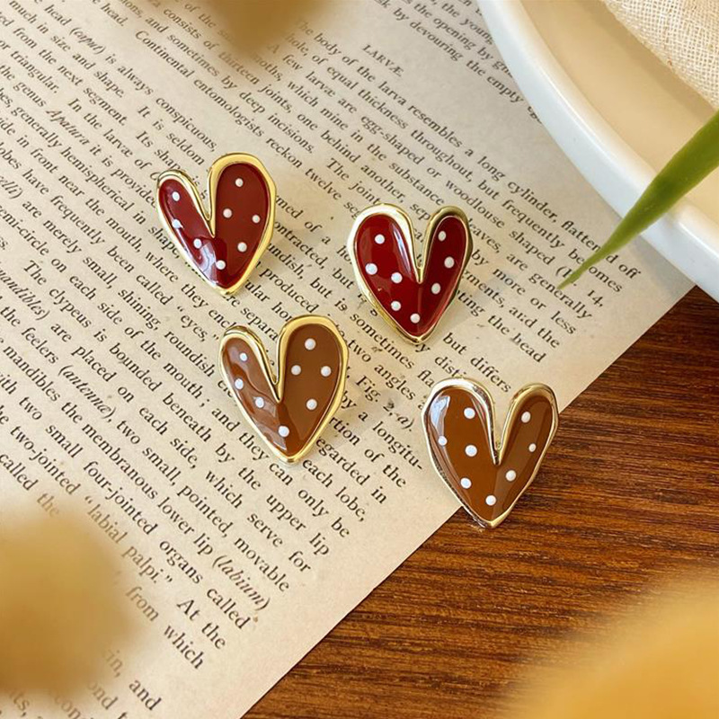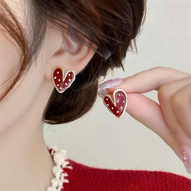 银针滴油不规则爱心波点耳钉法式复古甜美耳环个性高级感轻奢耳饰