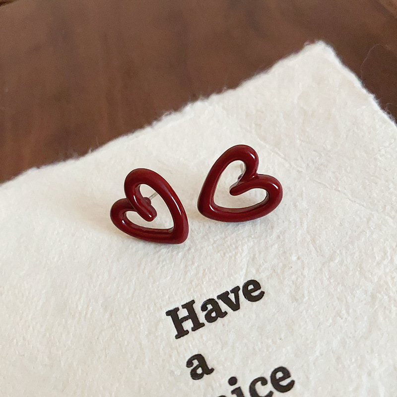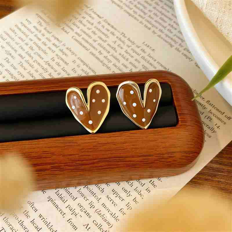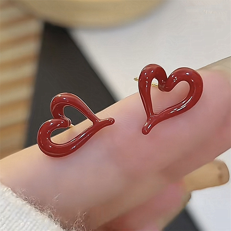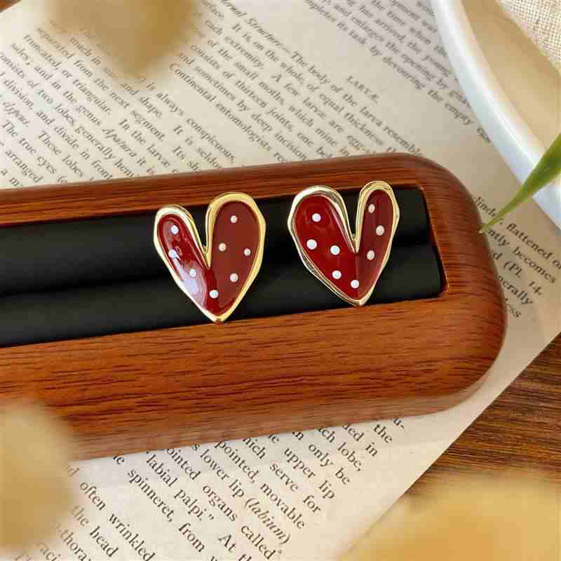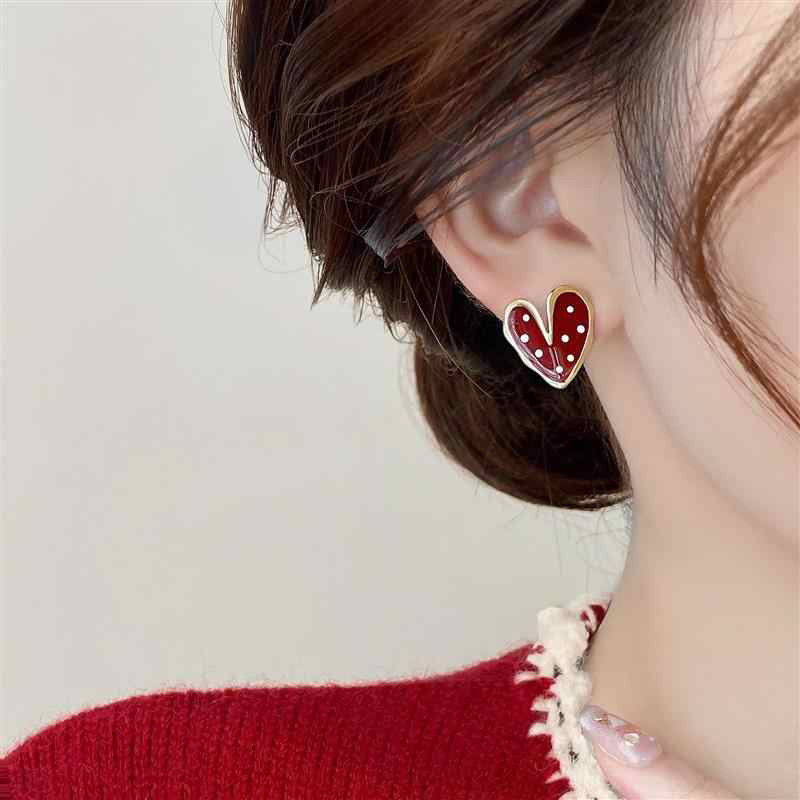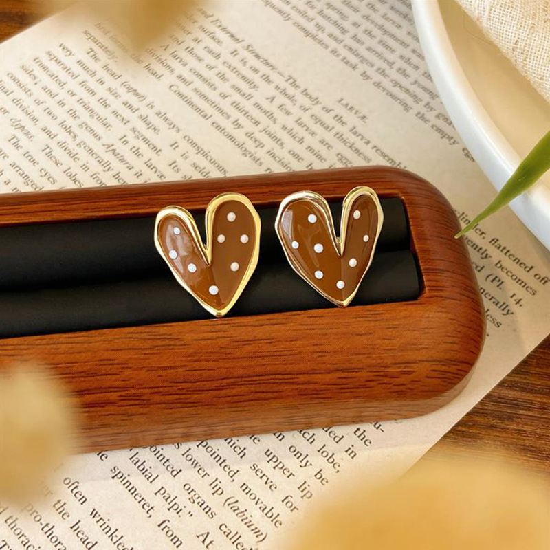 银针滴油不规则爱心波点耳钉法式复古甜美耳环个性高级感轻奢耳饰
