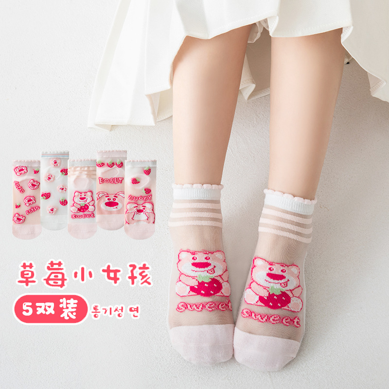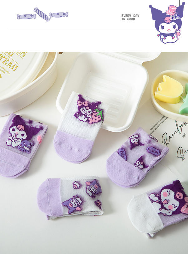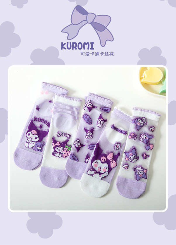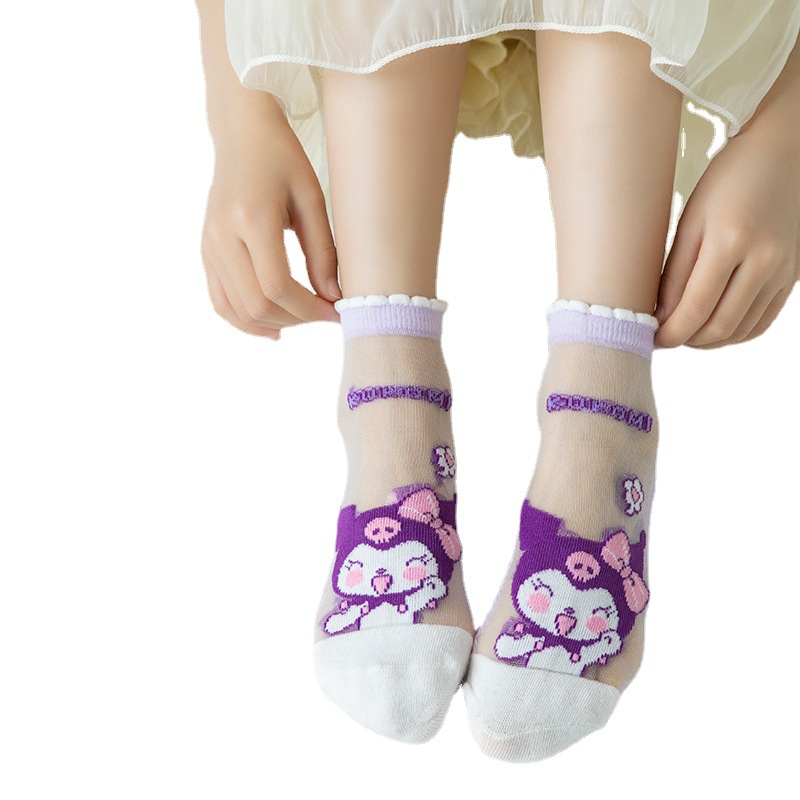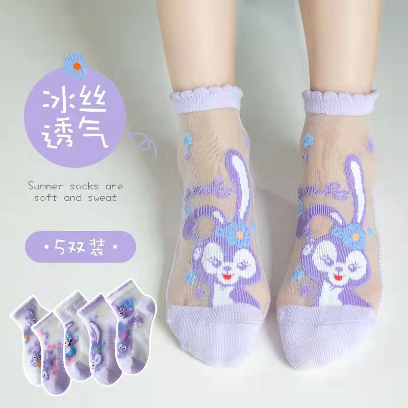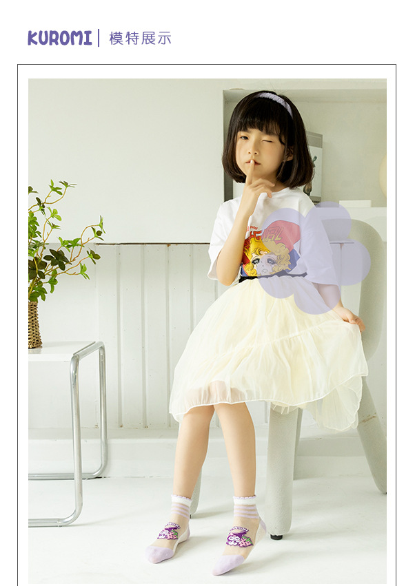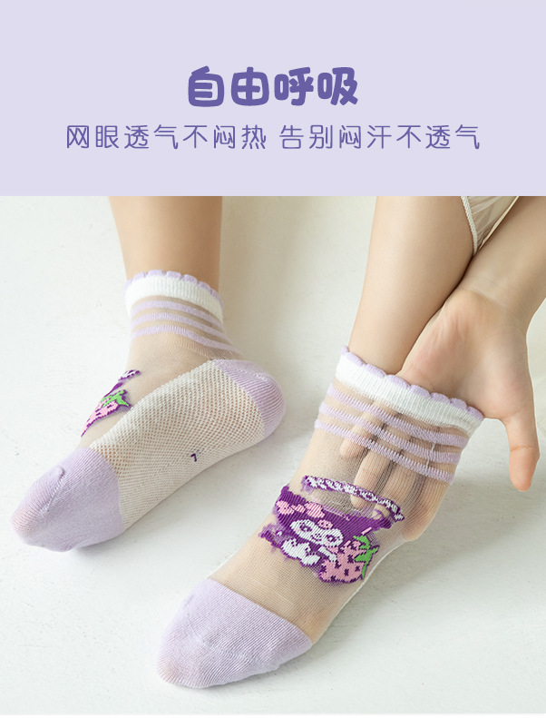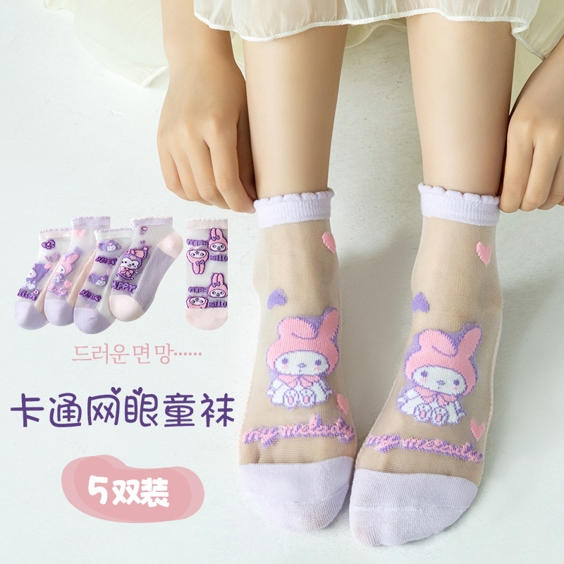 夏季薄款儿童棉袜水晶丝袜网眼透气冰丝女童袜可爱库洛米玻璃丝袜