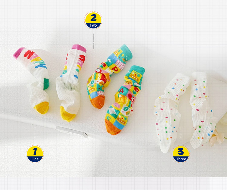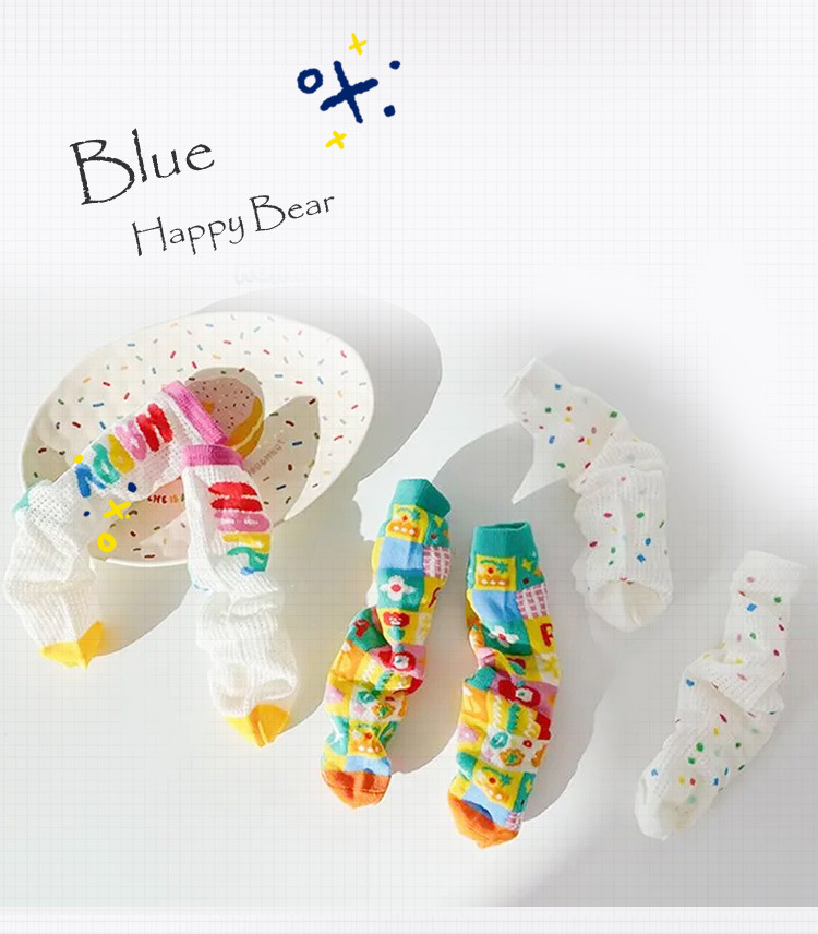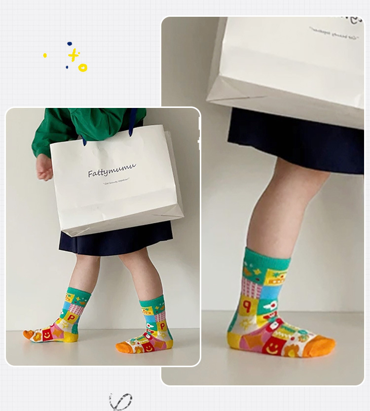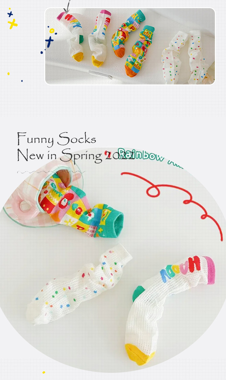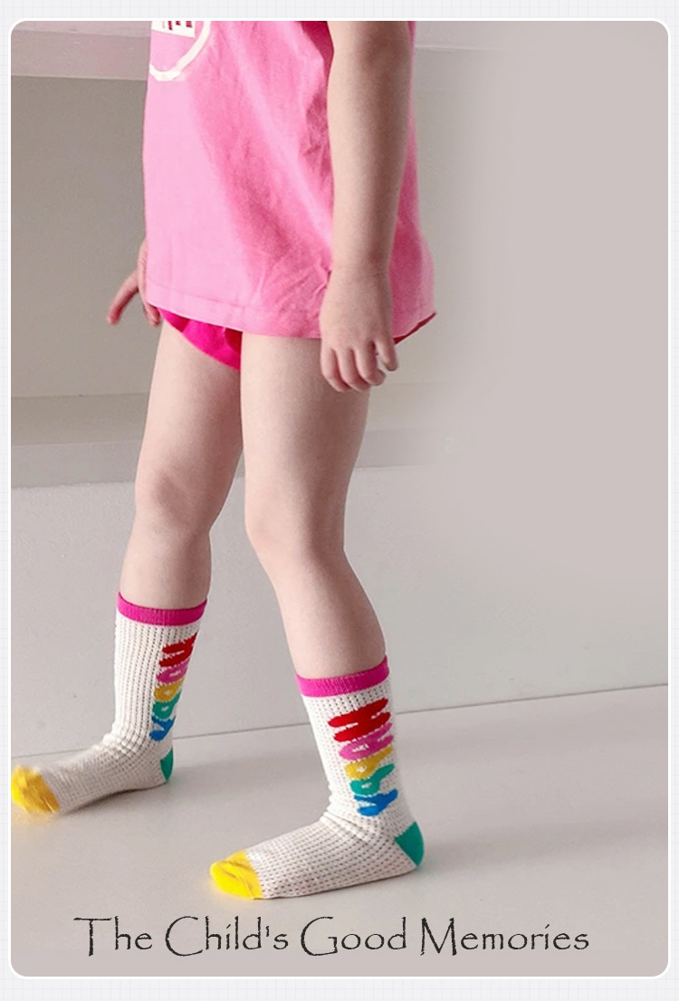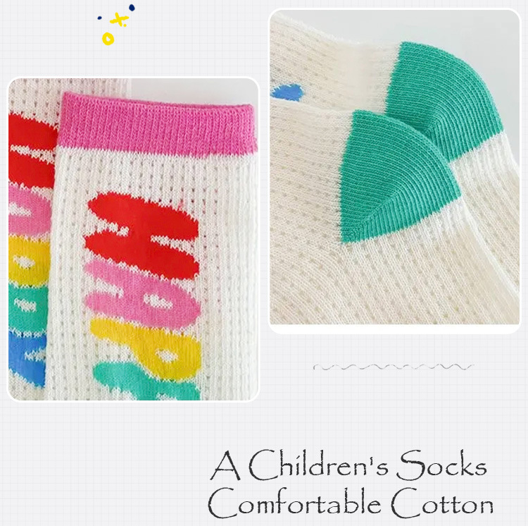 2025时尚拼色儿童袜子潮袜彩虹色网眼袜糖果色男女童中筒袜子批发