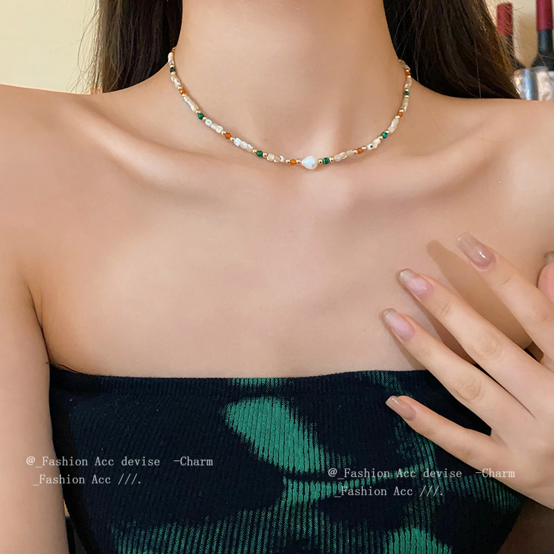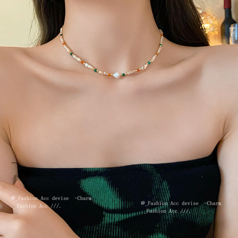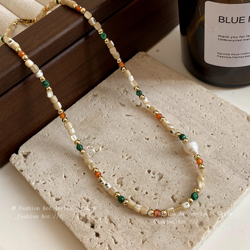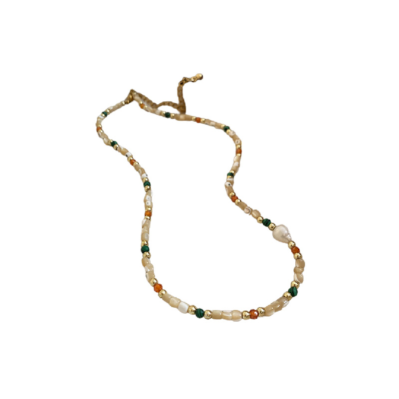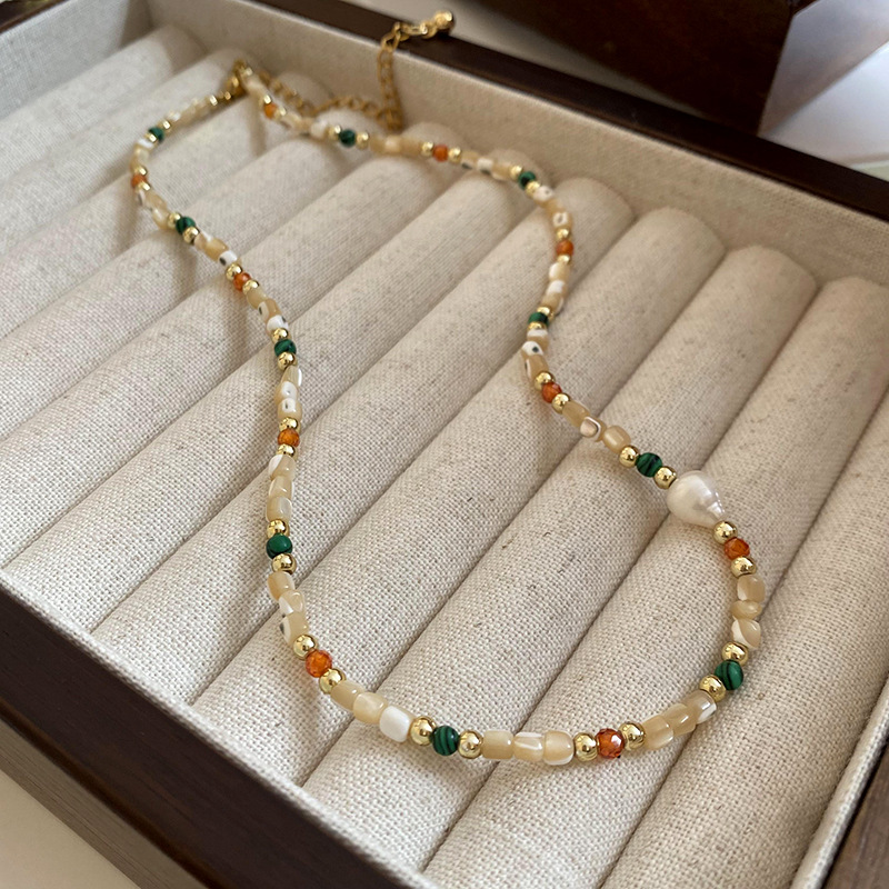 波西米亚珍珠水晶几何项链复古小众高级感锁骨链时尚百搭饰品批发