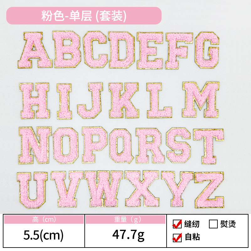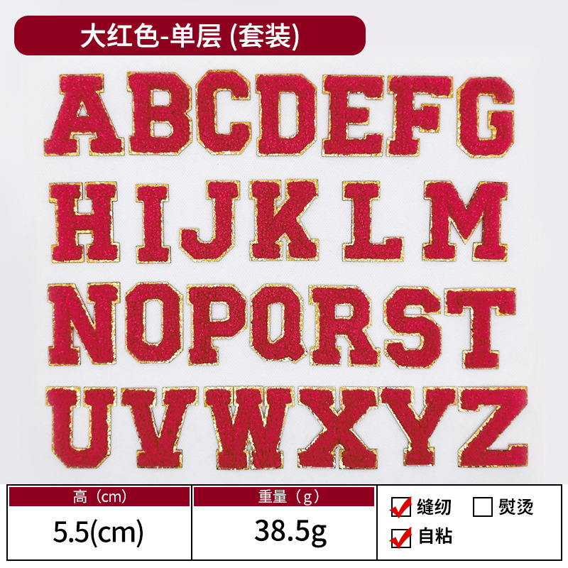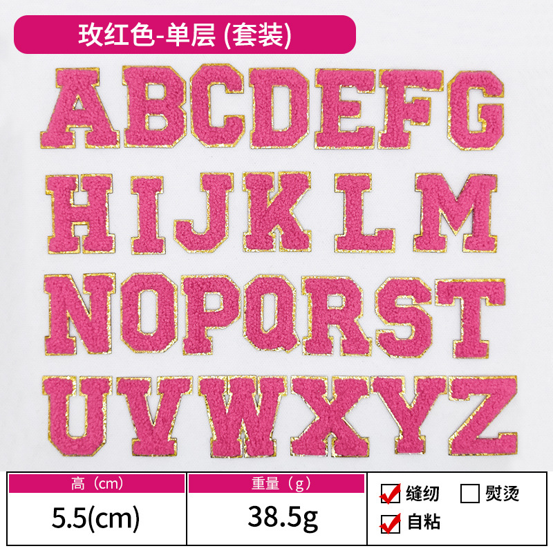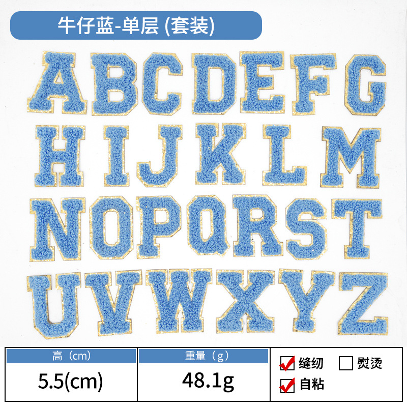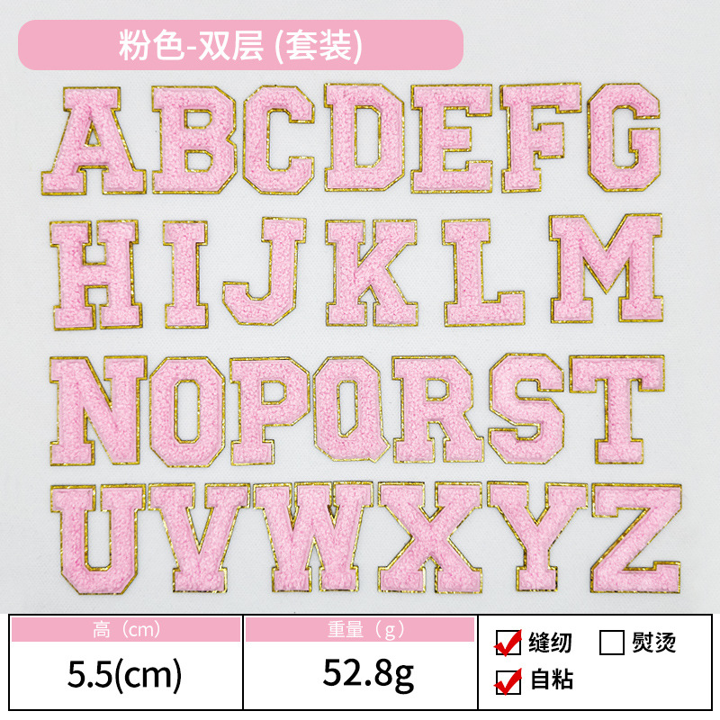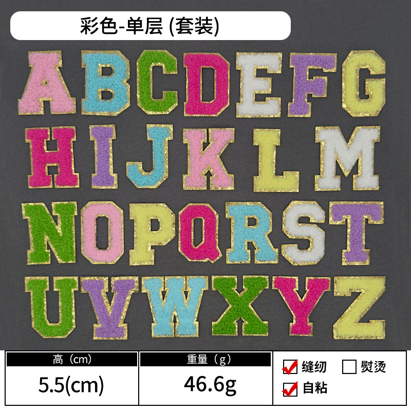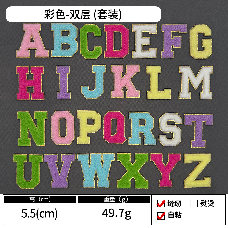 定制自粘补丁贴文字母毛巾绣布贴多色布标服装辅料刺绣贴可跨境
