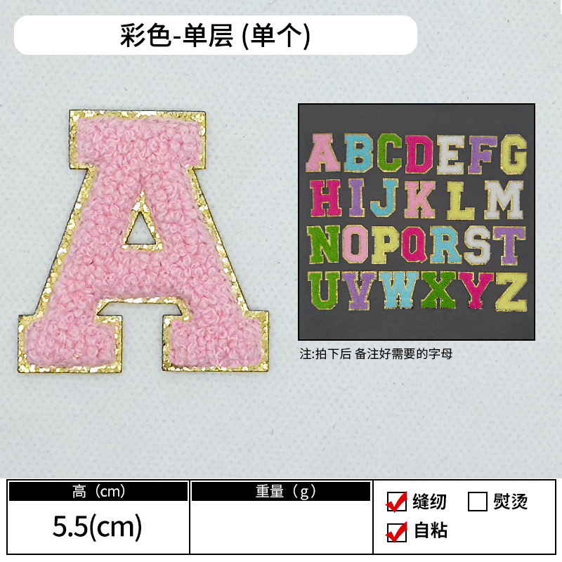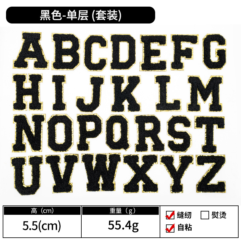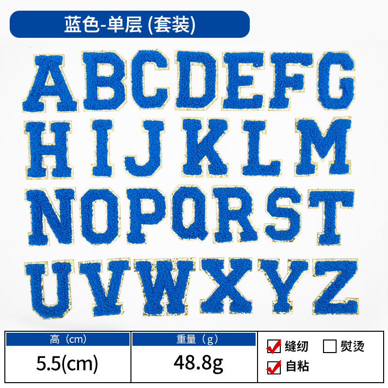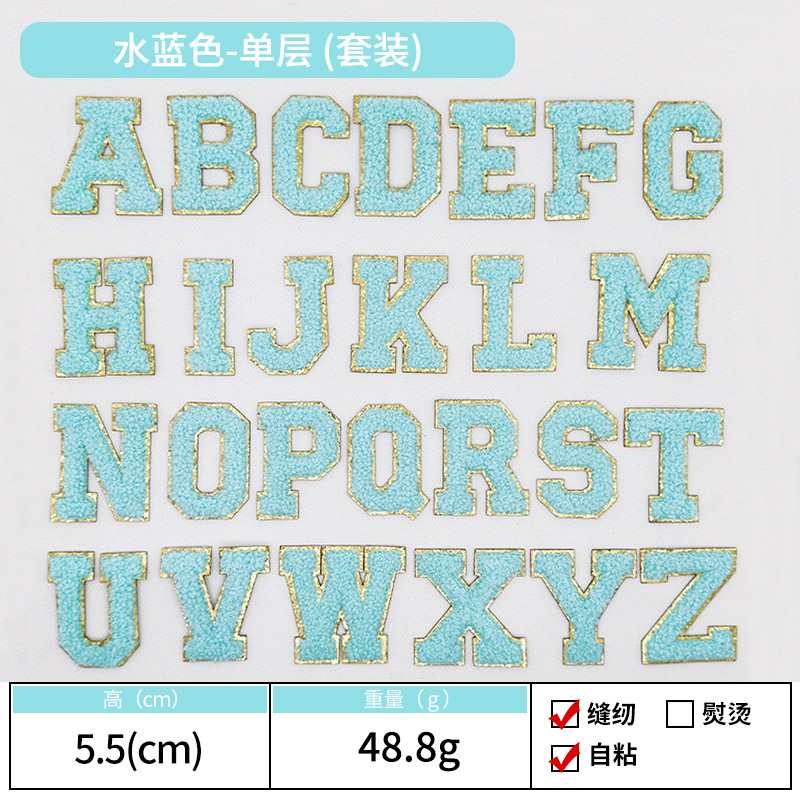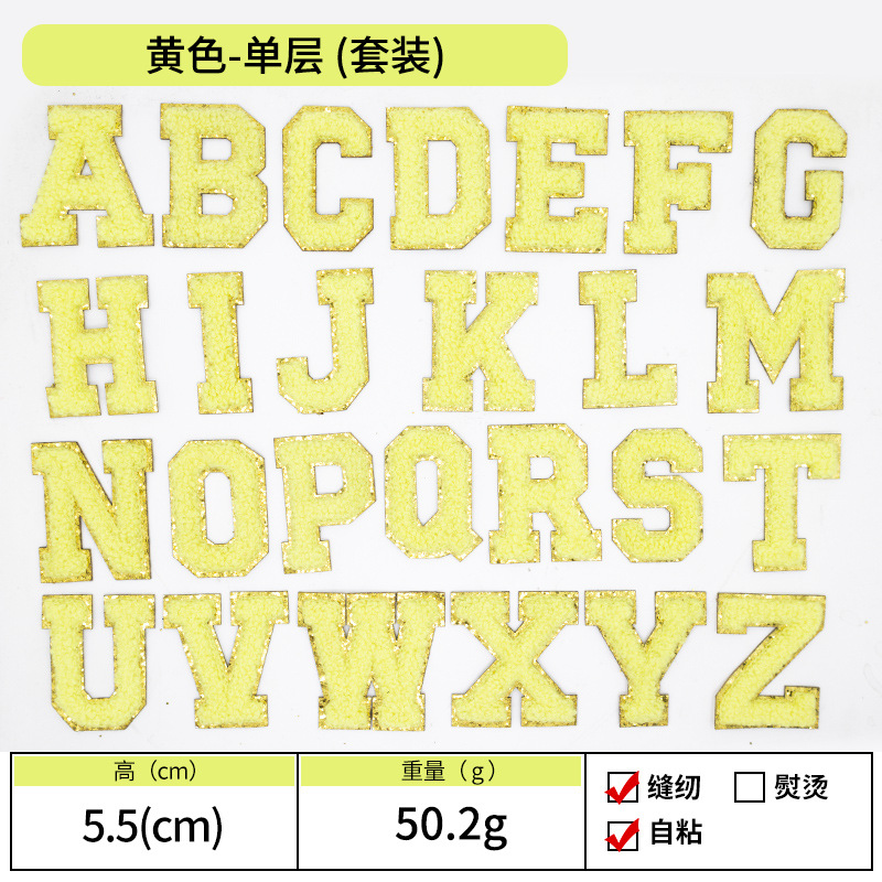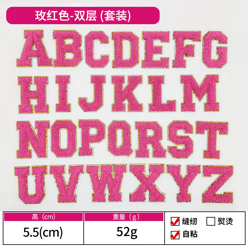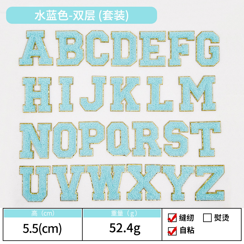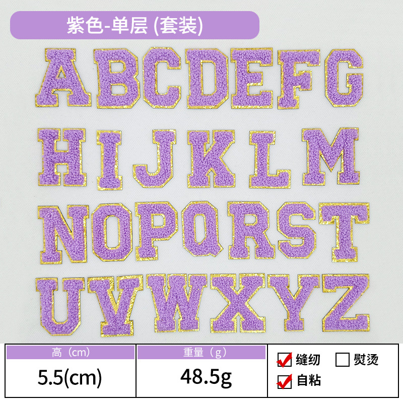 定制自粘补丁贴文字母毛巾绣布贴多色布标服装辅料刺绣贴可跨境