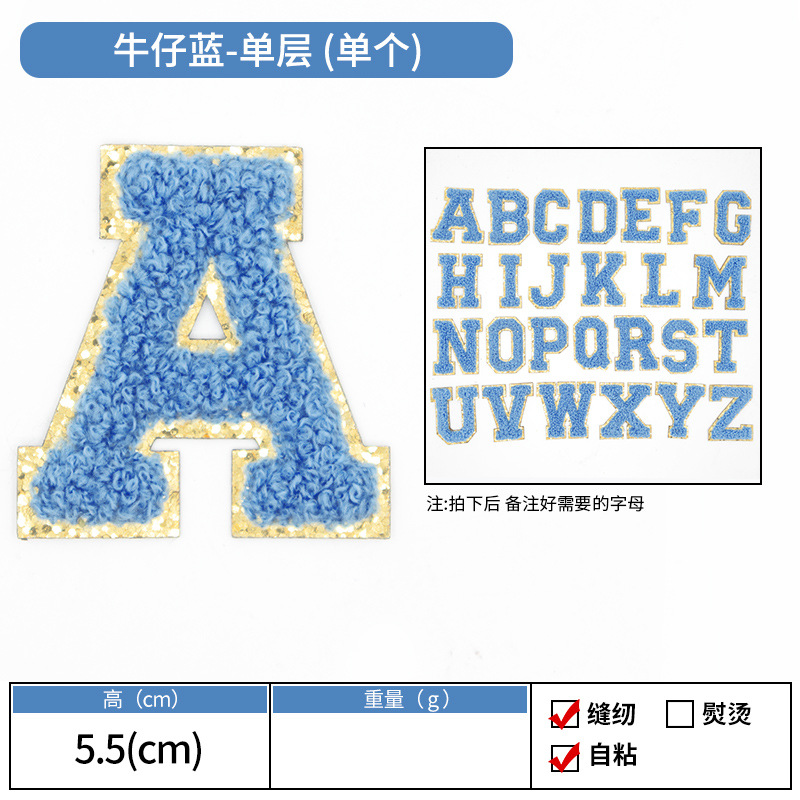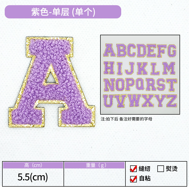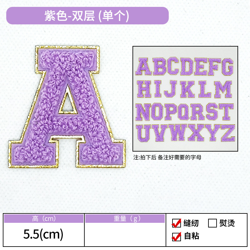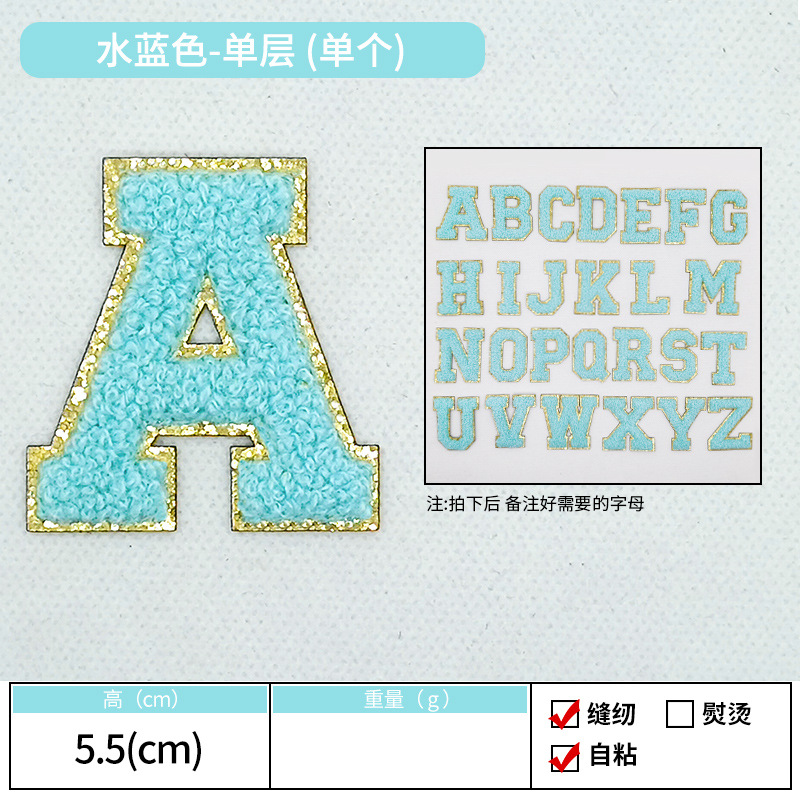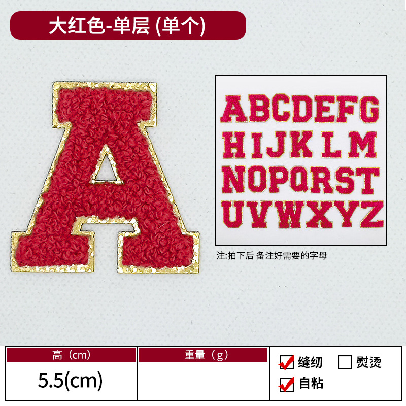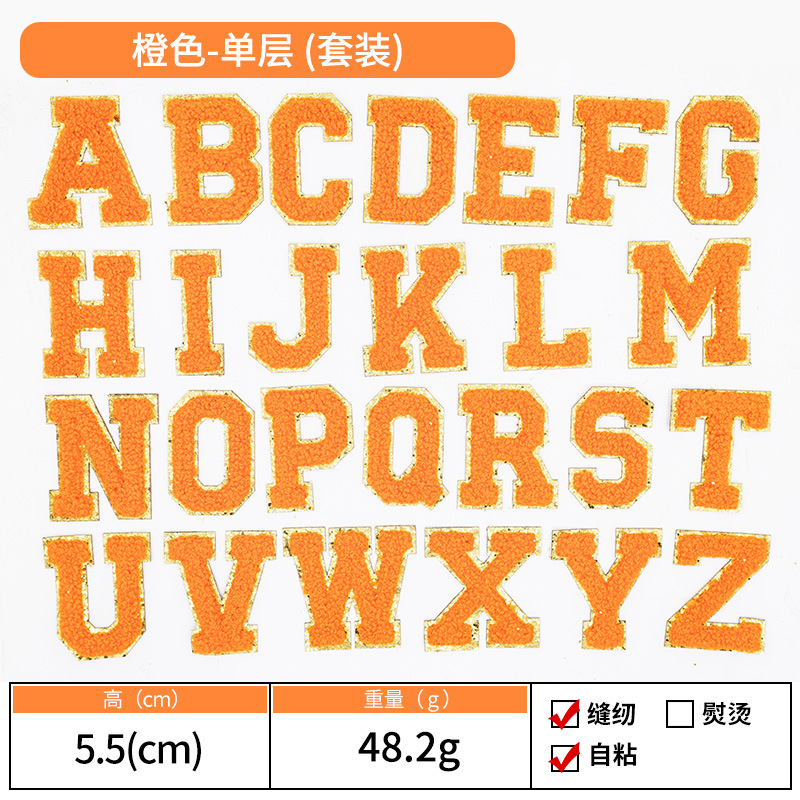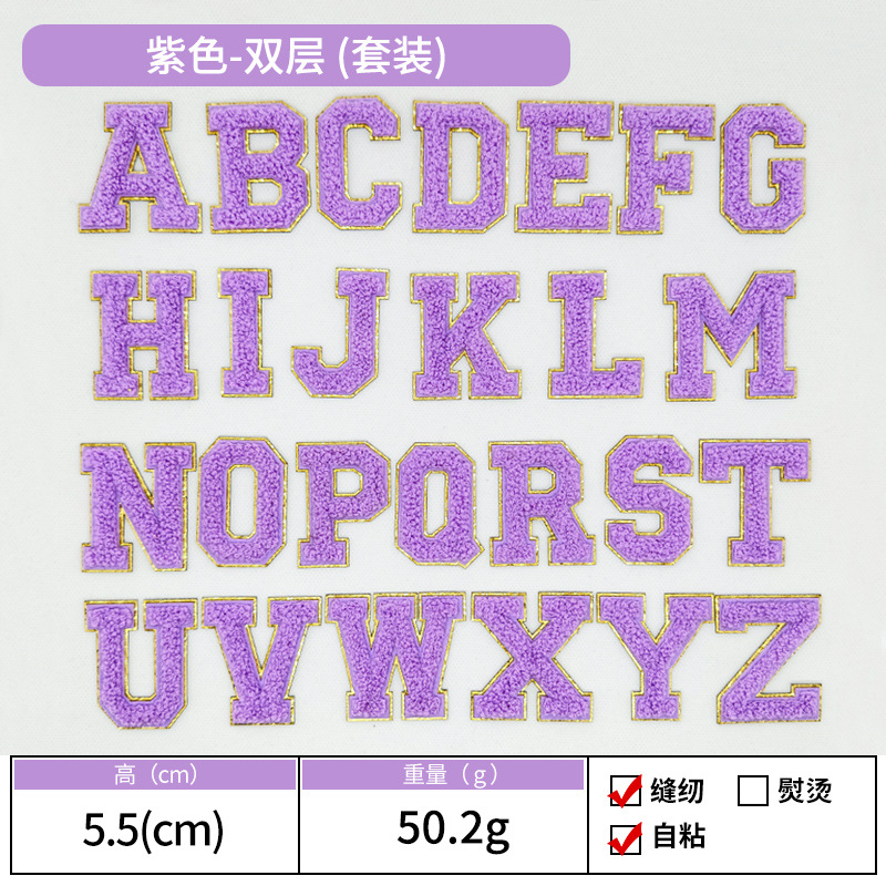 定制自粘补丁贴文字母毛巾绣布贴多色布标服装辅料刺绣贴可跨境