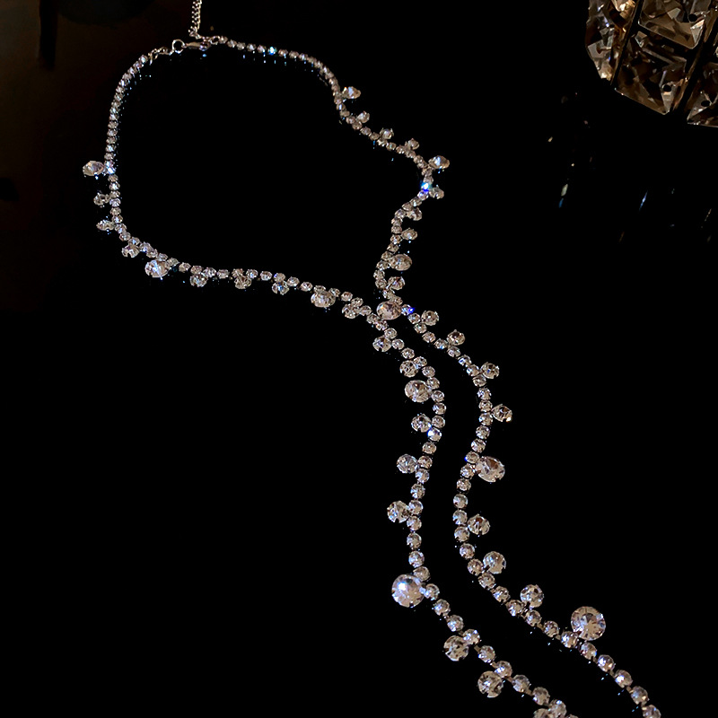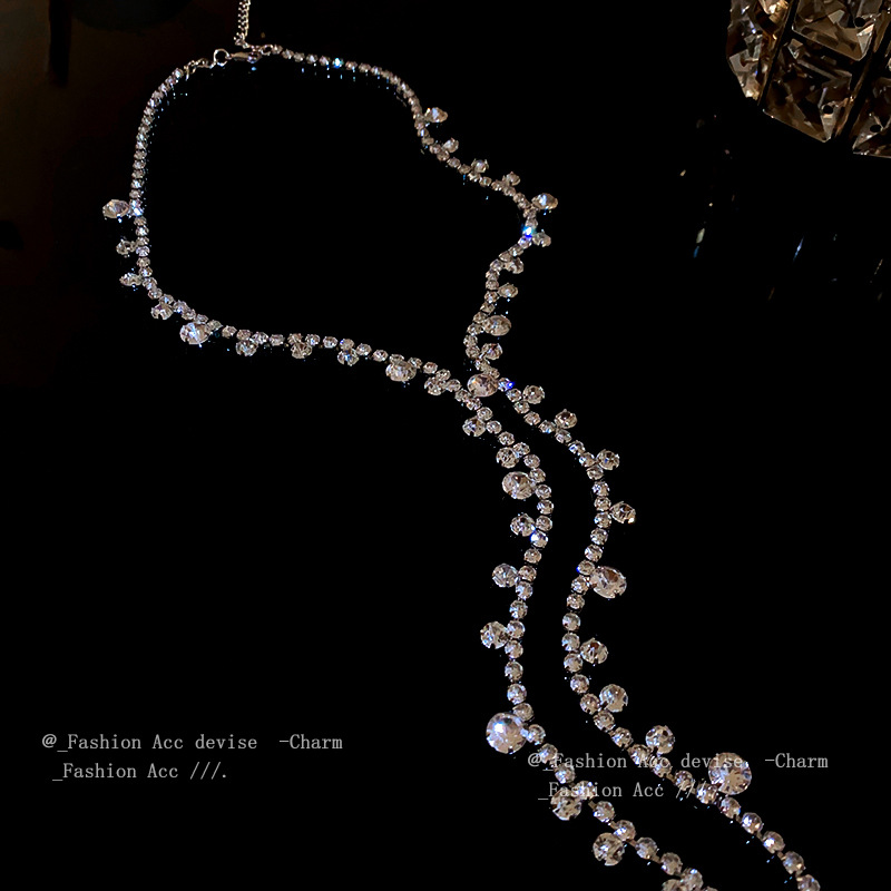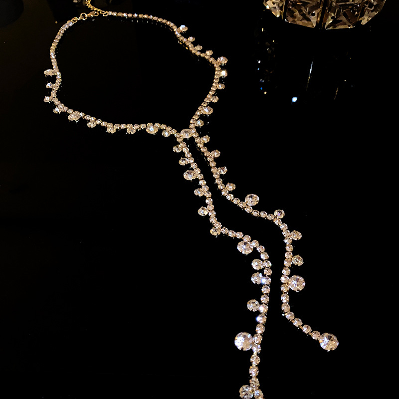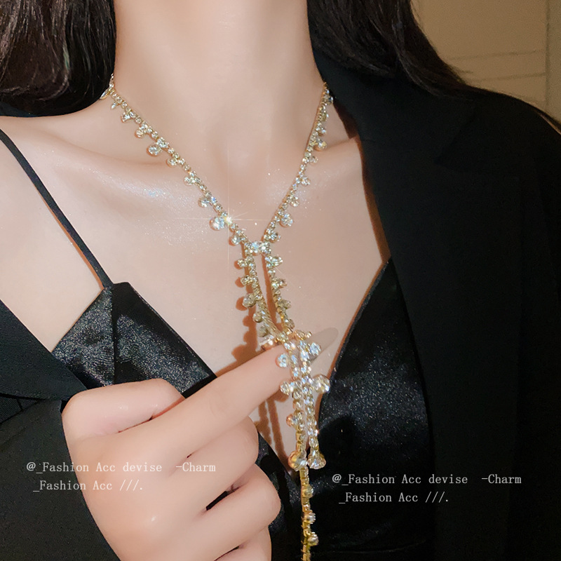 镶钻圆形几何流苏项链欧美个性设计感锁骨链小众时尚百搭饰品批发