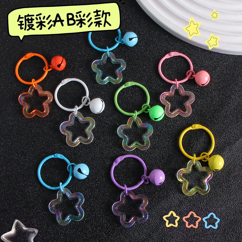 夜光闪粉镂空星星亚克力钥匙圈挂件ins少女心钥匙扣镀彩文化挂饰