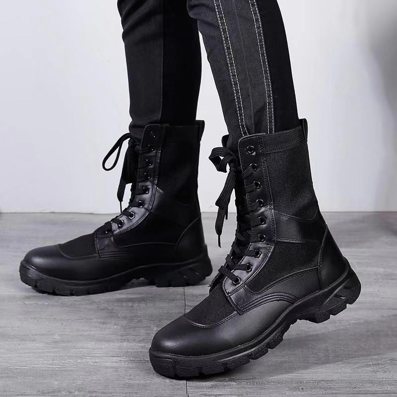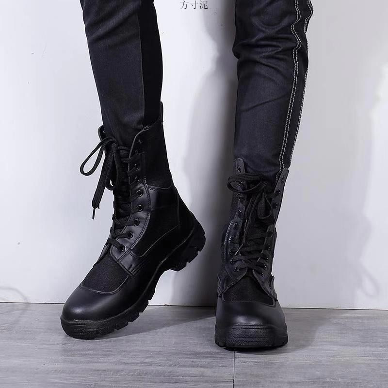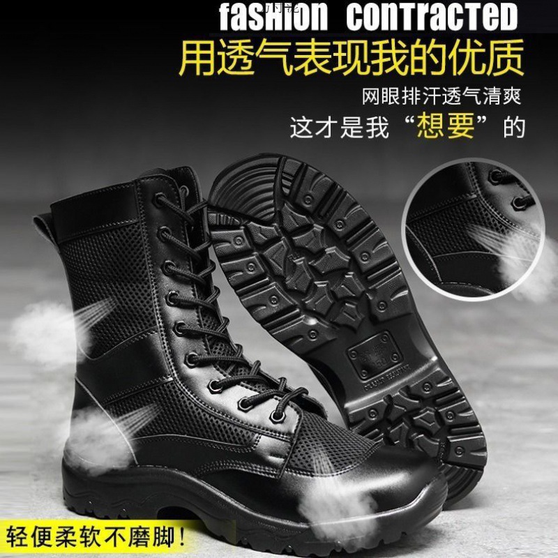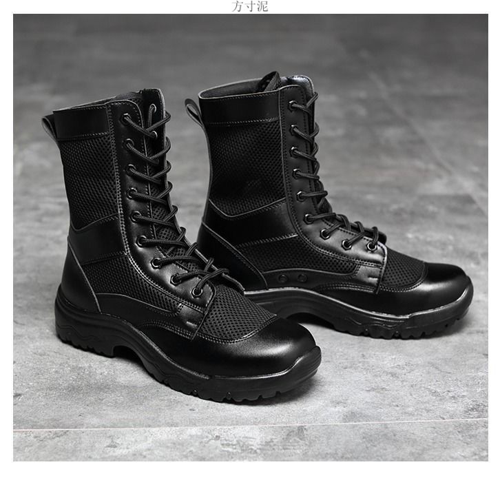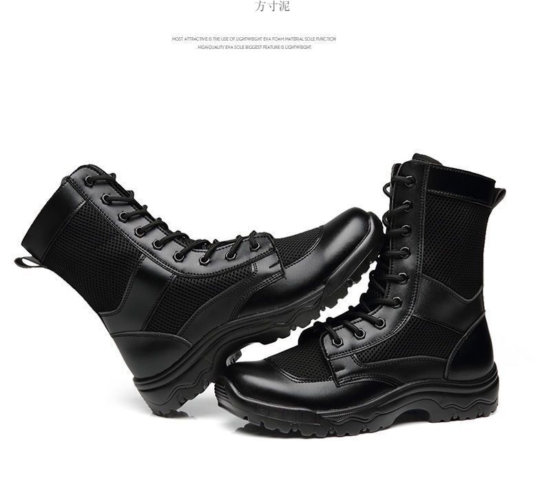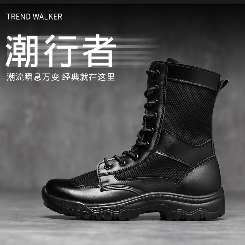 新款夏季男靴高帮执勤超轻网眼工装靴男女安检鞋训练登山靴保安靴