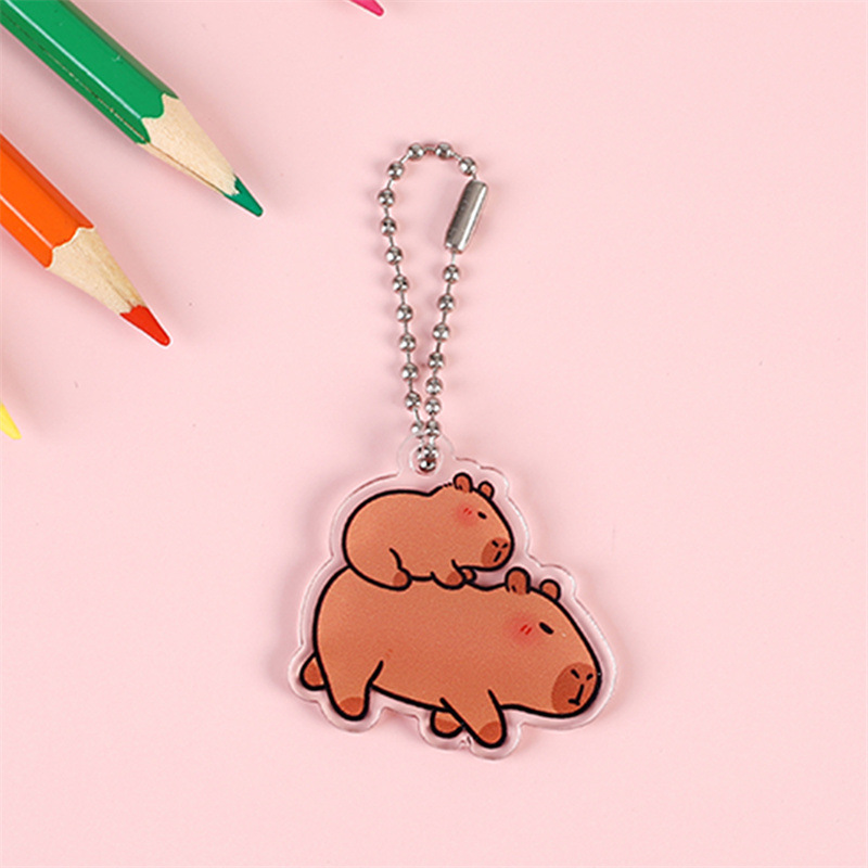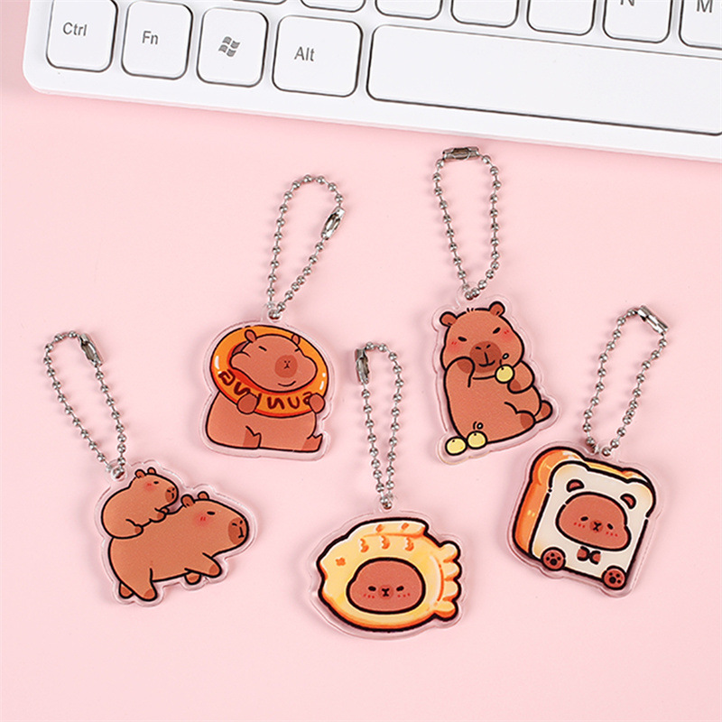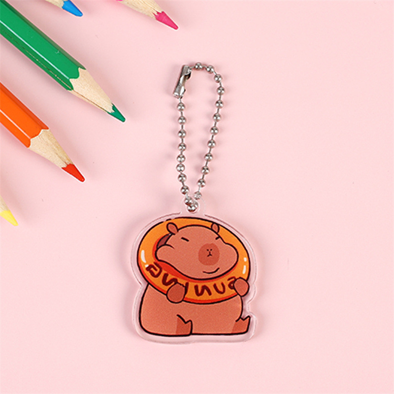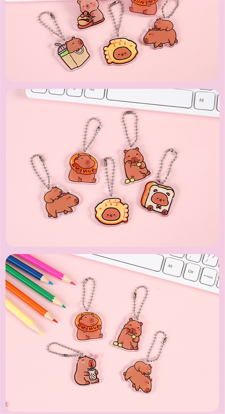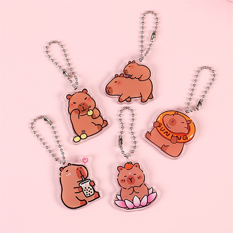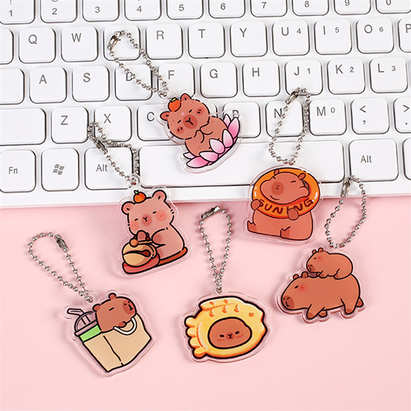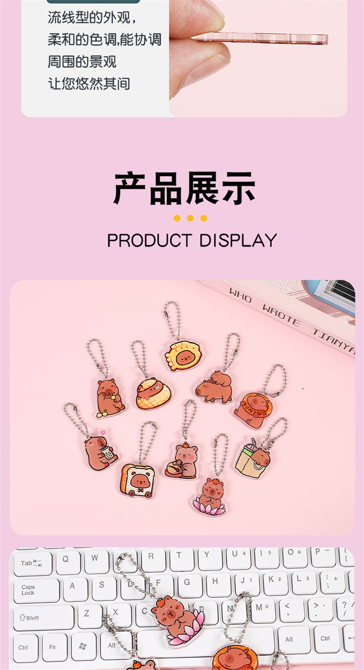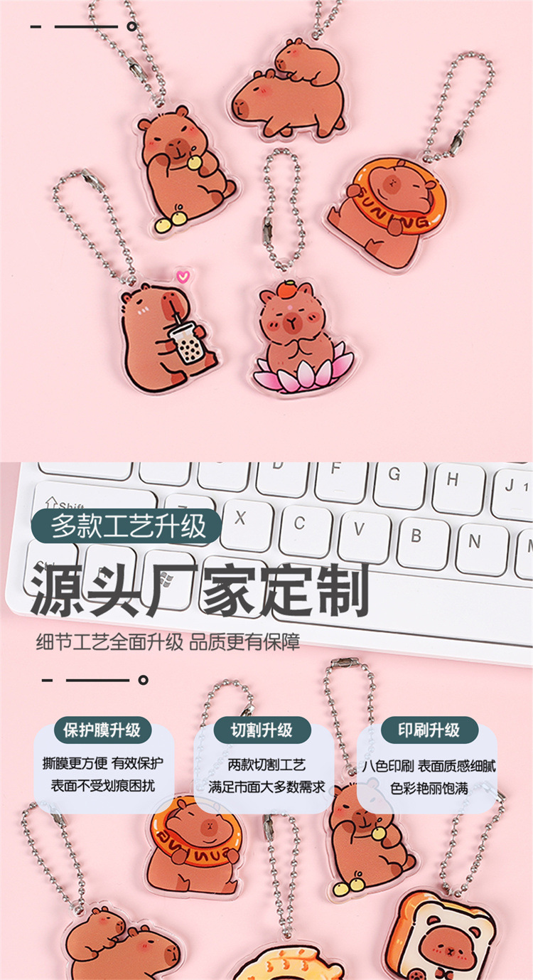 可爱卡皮巴拉钥匙扣卡通河豚钥匙链水豚鼠书包装饰挂件亚克力配件